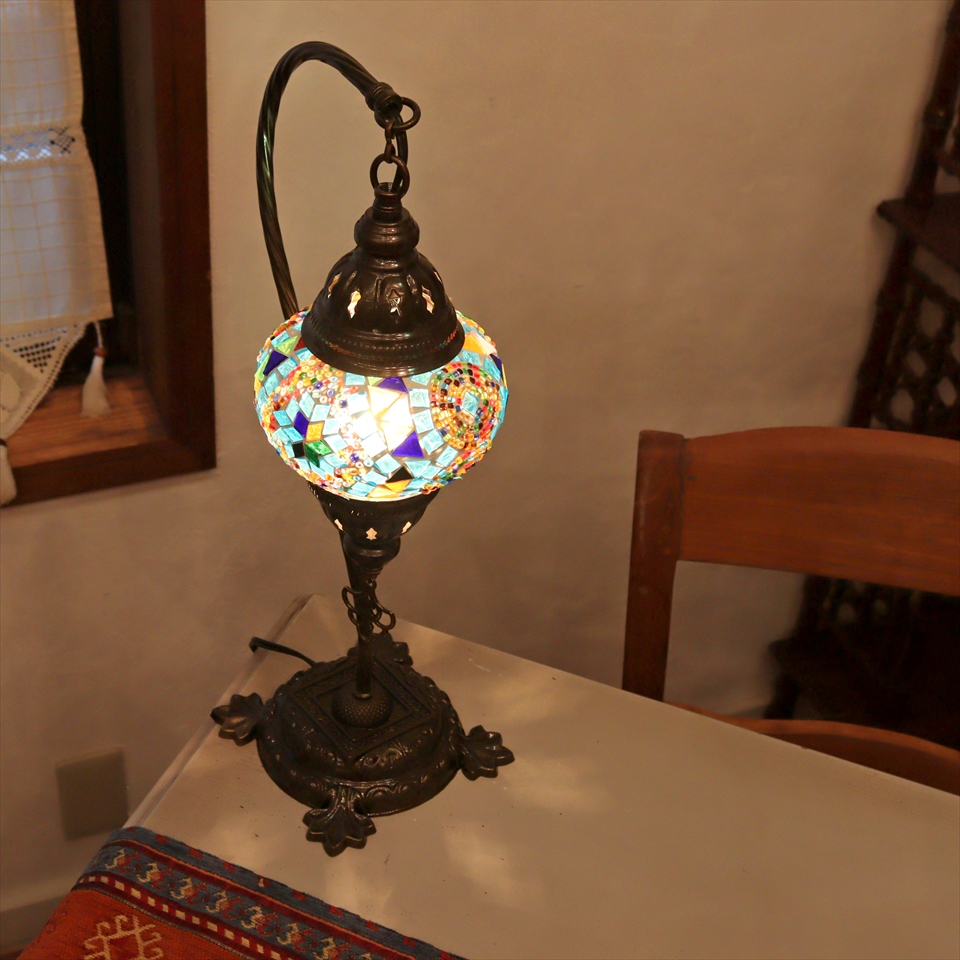 トルコで1つ1つ手作りされた、モザイクのガラス球が使われたテーブルランプ。