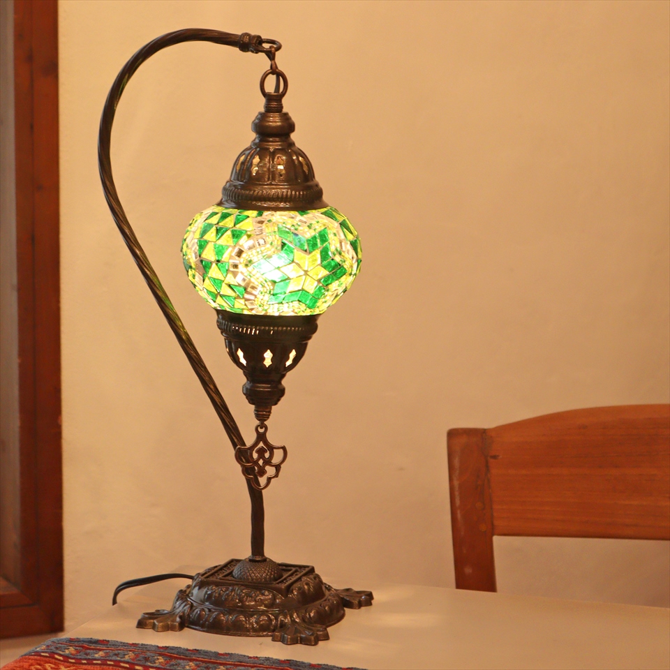 - トルコランプ モザイクテーブルランプ ハンギング 全高42cm 横幅23cm グリーン