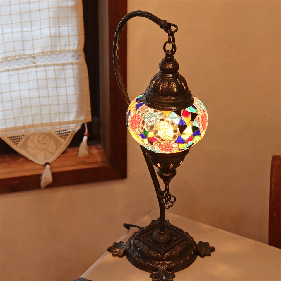 - トルコランプ モザイクテーブルランプ ハンギング 全高42cm 横幅23cm ミックスカラー