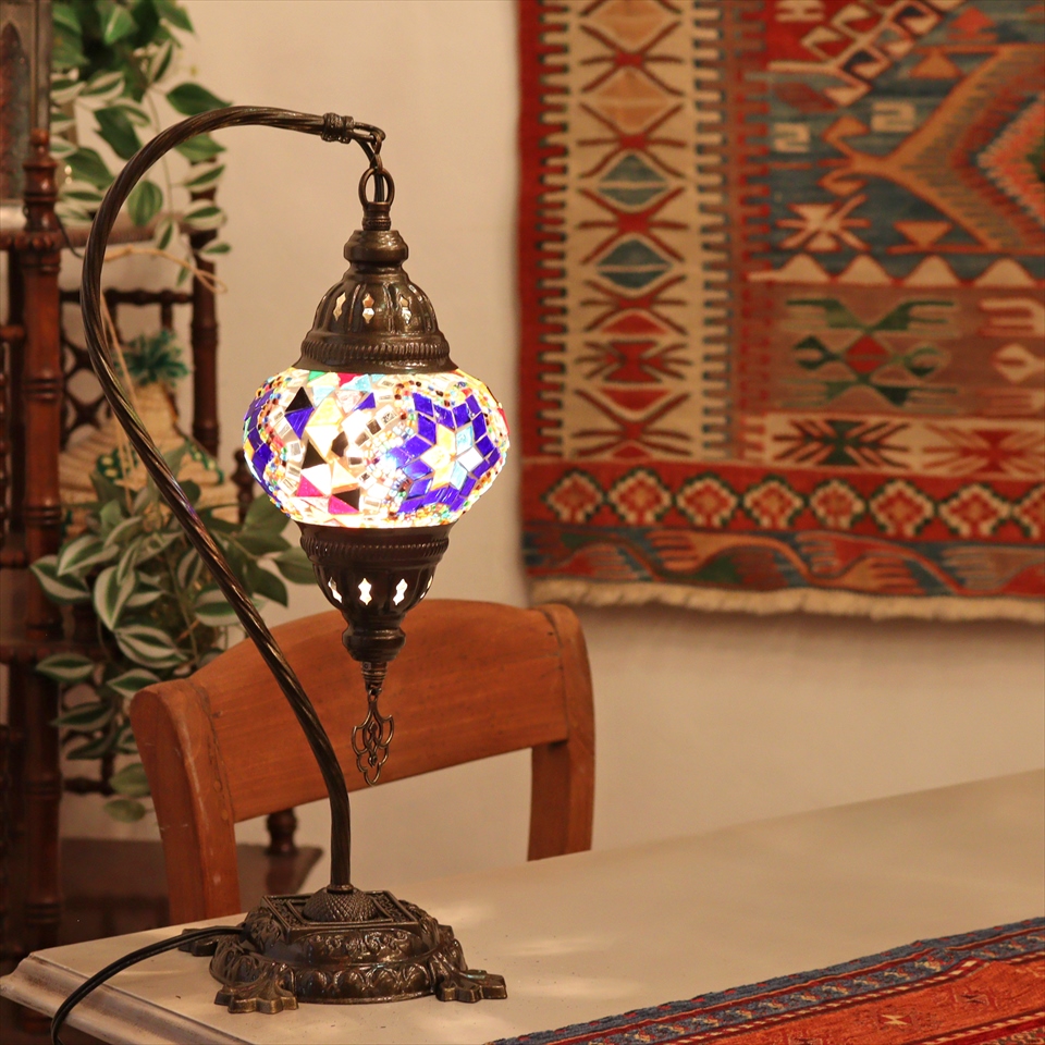 - トルコランプ モザイクテーブルランプ ハンギング 全高42cm 横幅23cm ミックスカラー