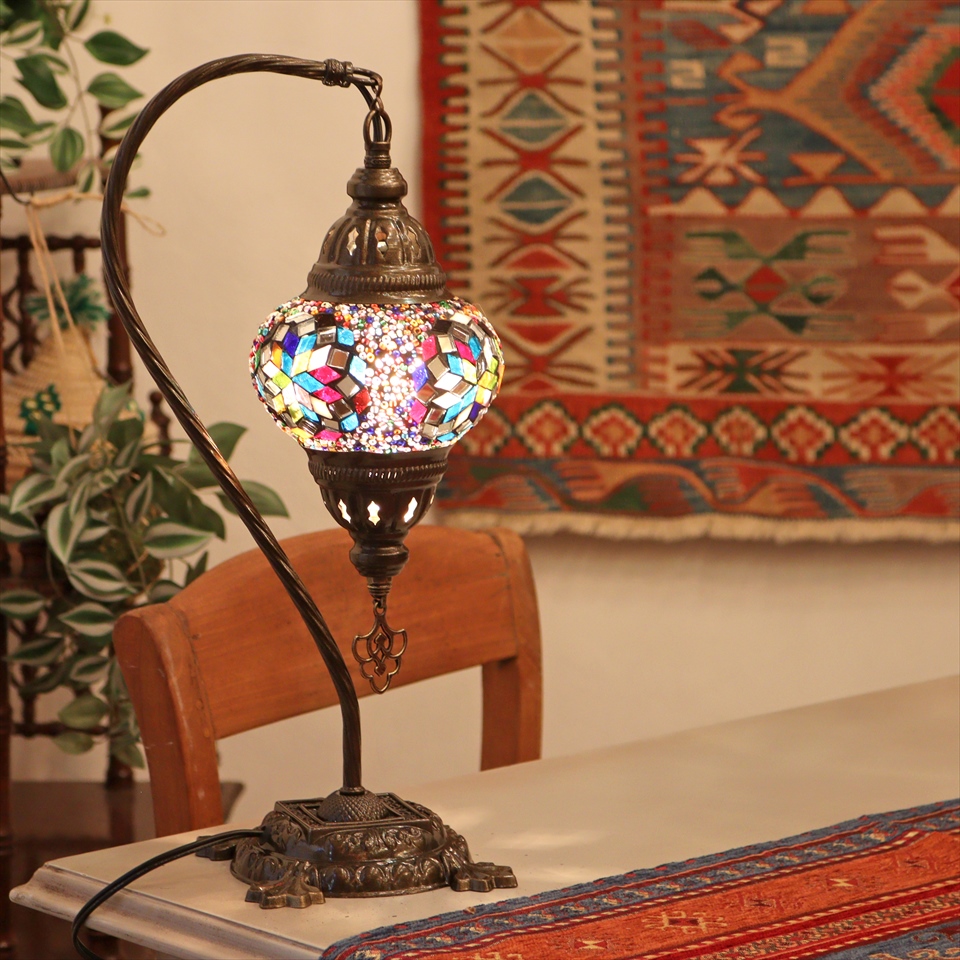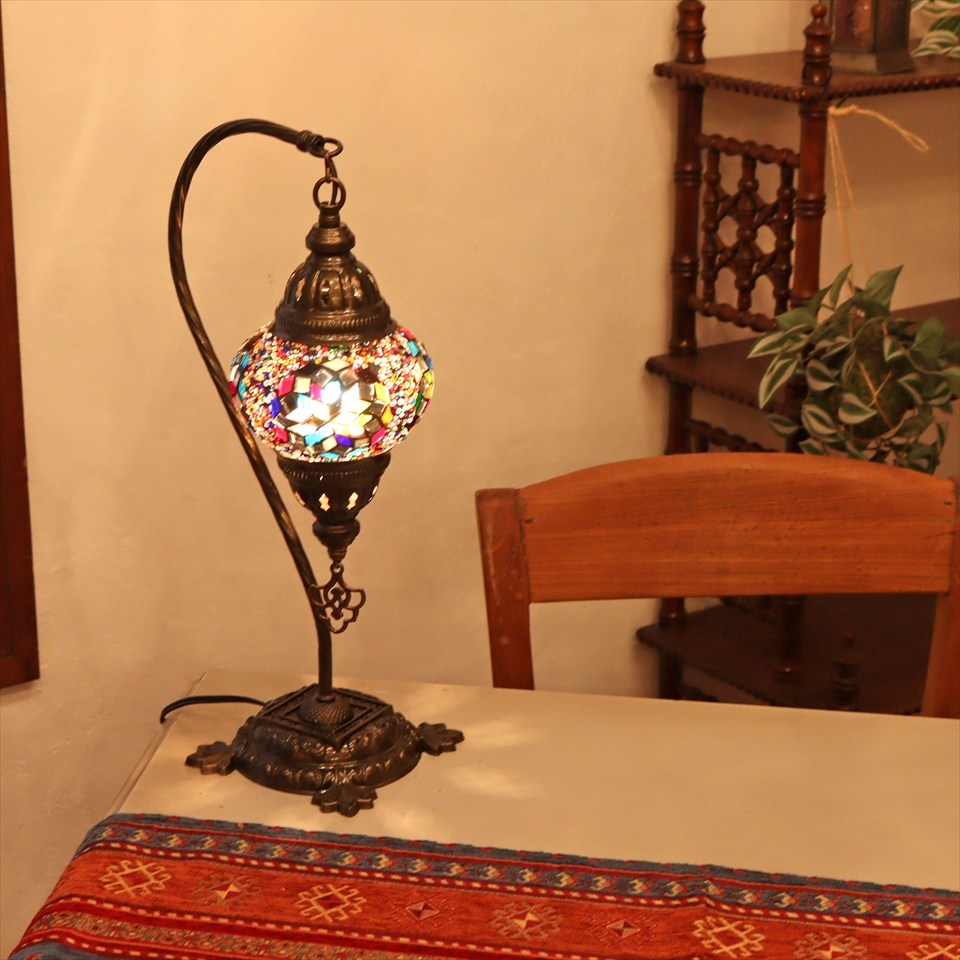 - トルコランプ モザイクテーブルランプ ハンギング 全高42cm 横幅23cm ミックスカラー
