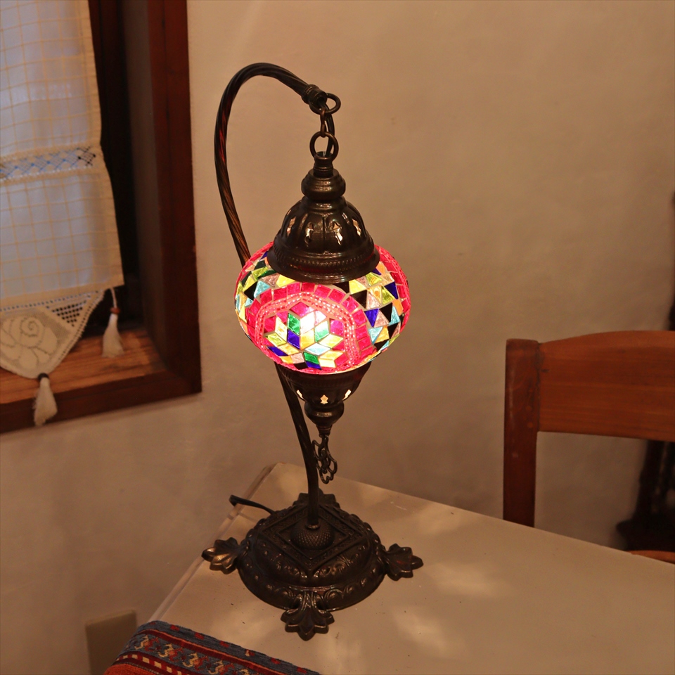 トルコで1つ1つ手作りされた、モザイクのガラス球が使われたテーブルランプ。