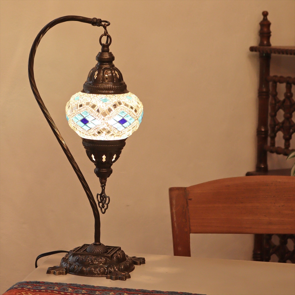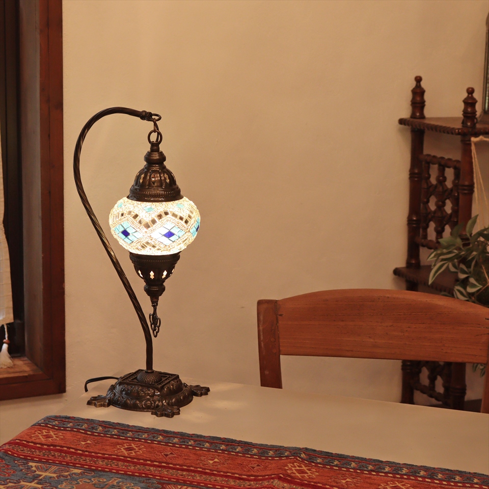 - トルコランプ モザイクテーブルランプ ハンギング 全高42cm 横幅23cm ホワイト