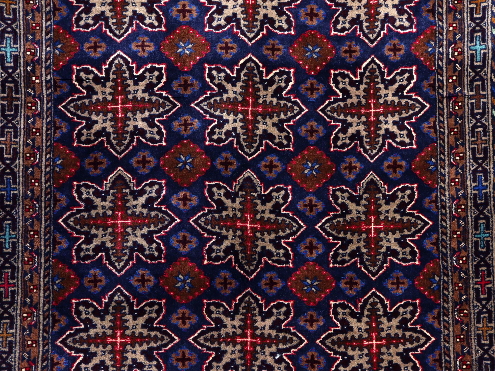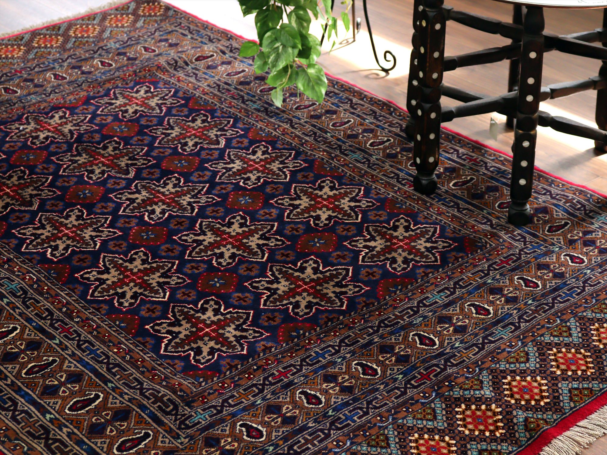 - イランの手織り絨毯 マシュハド175×125cm 連なる幾何学模様
