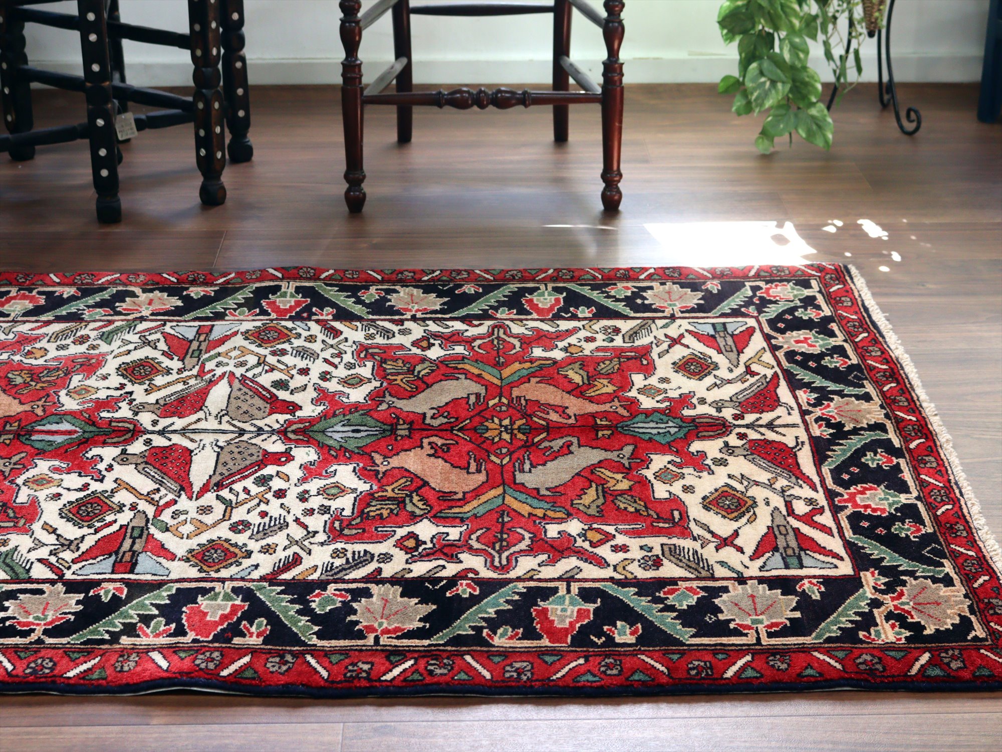 - イランの手織り絨毯 バルーチ171×99cm 動物と花 トライバルラグ