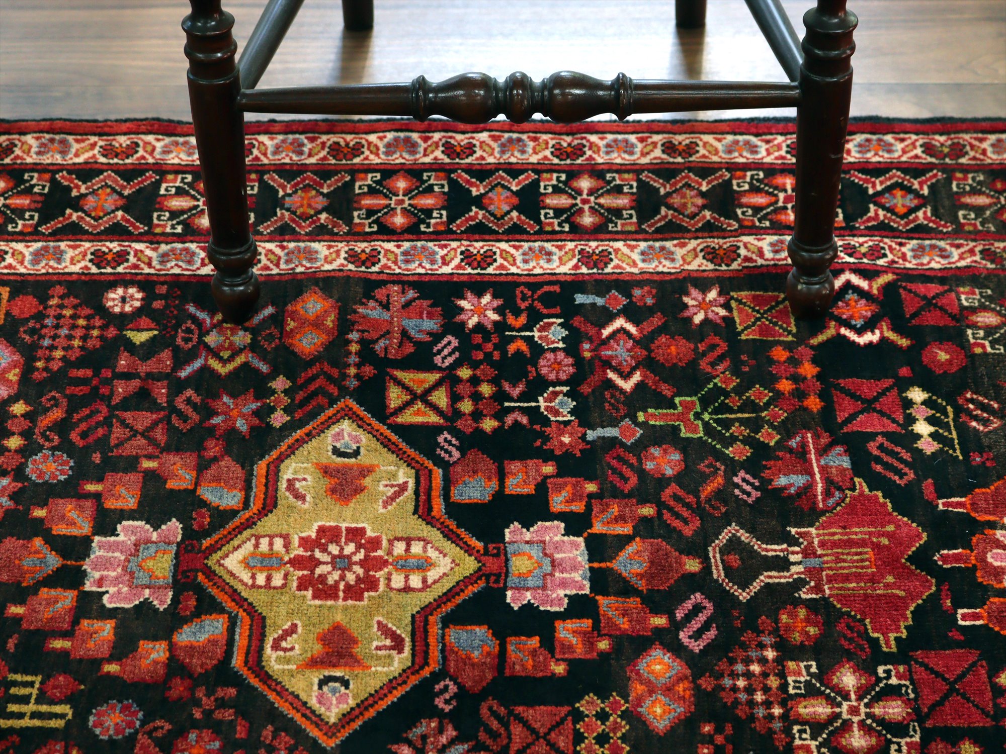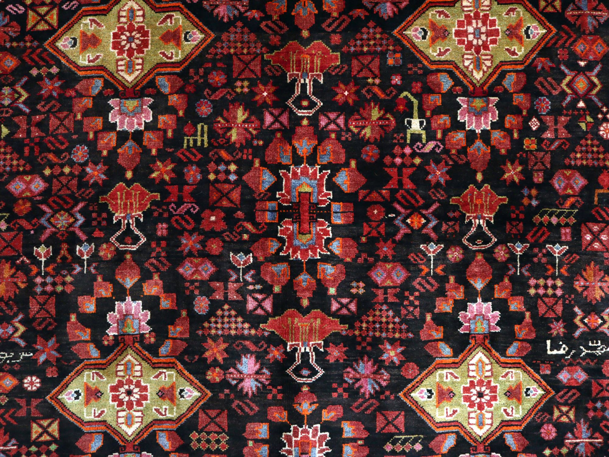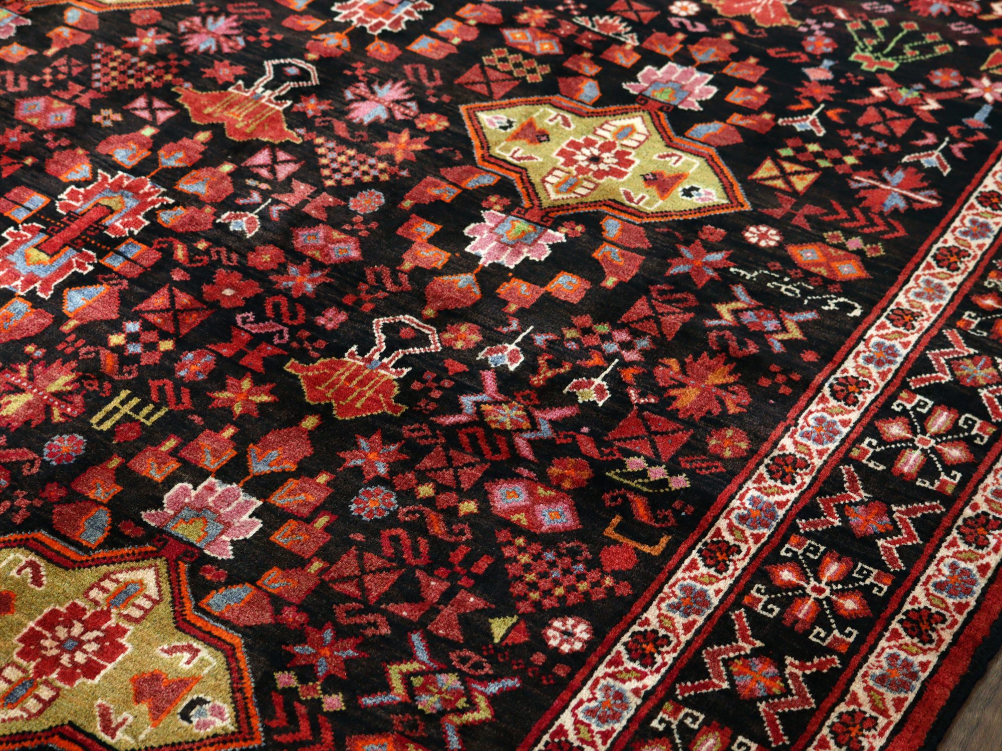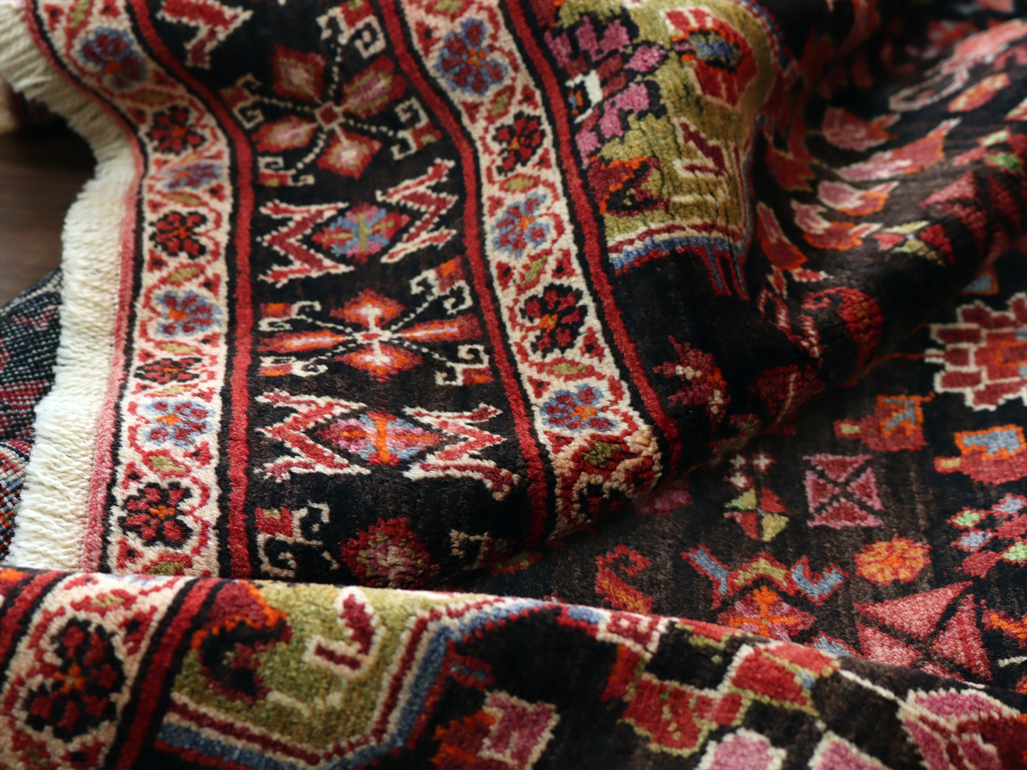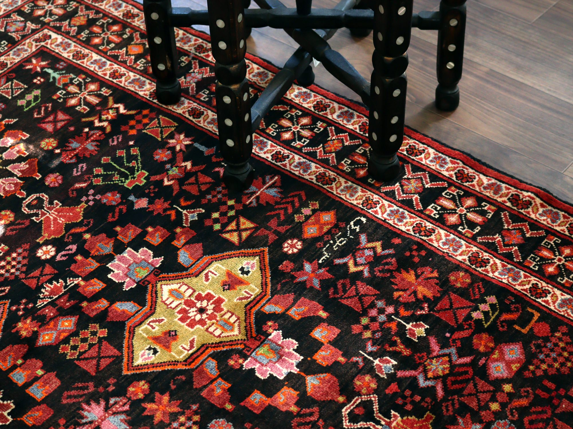 - イランの手織り絨毯 バルーチ219×145cm 小花と幾何学模様 トライバルラグ