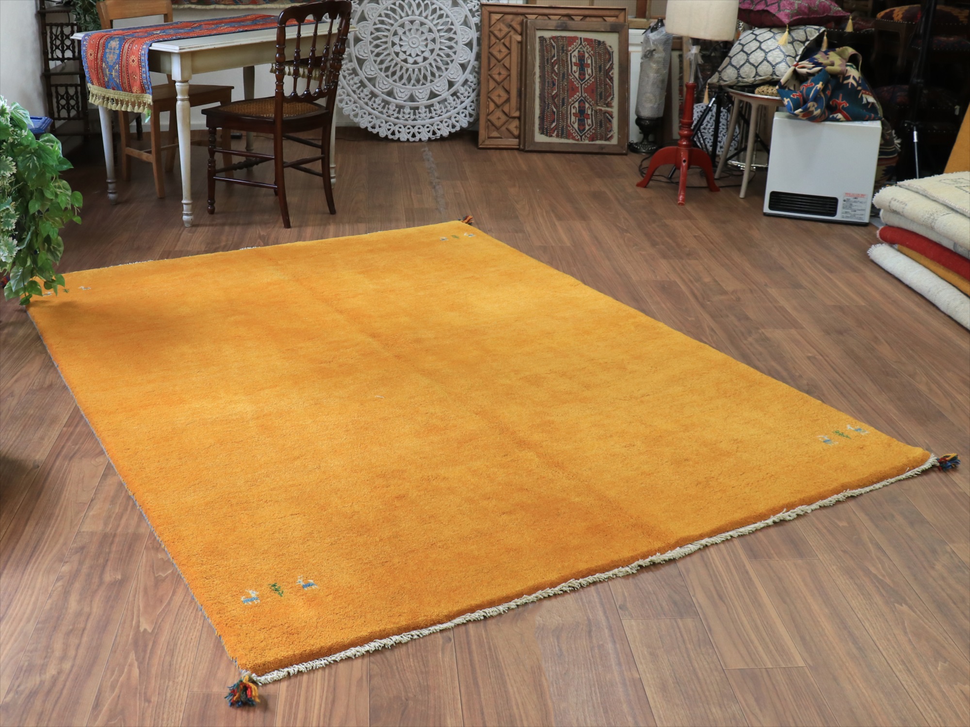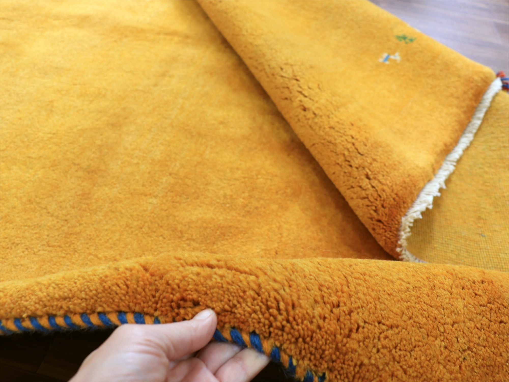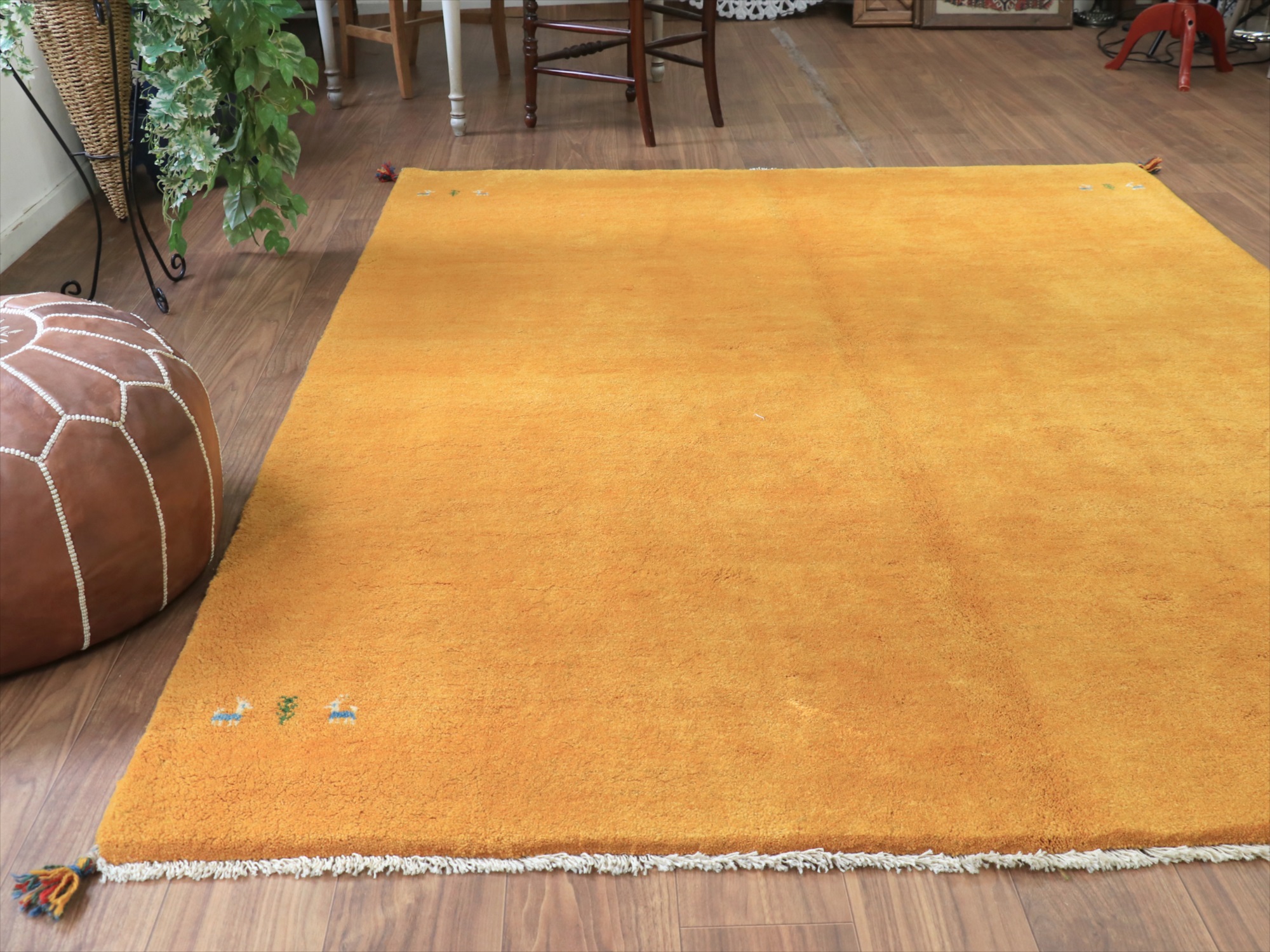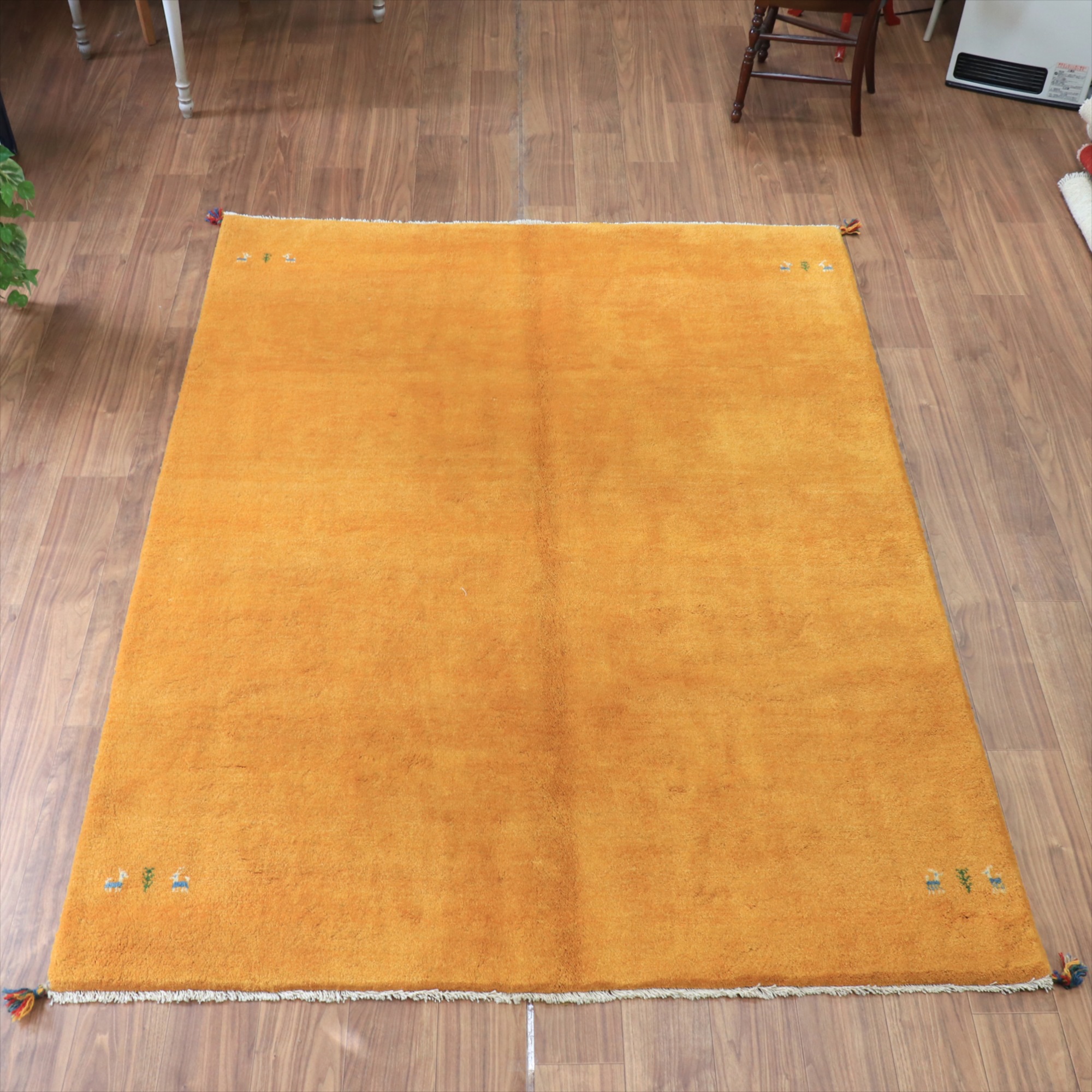 ギャッベ イラン産手織り オレンジ 228x175cm 無地 シンプル 動物モチーフ