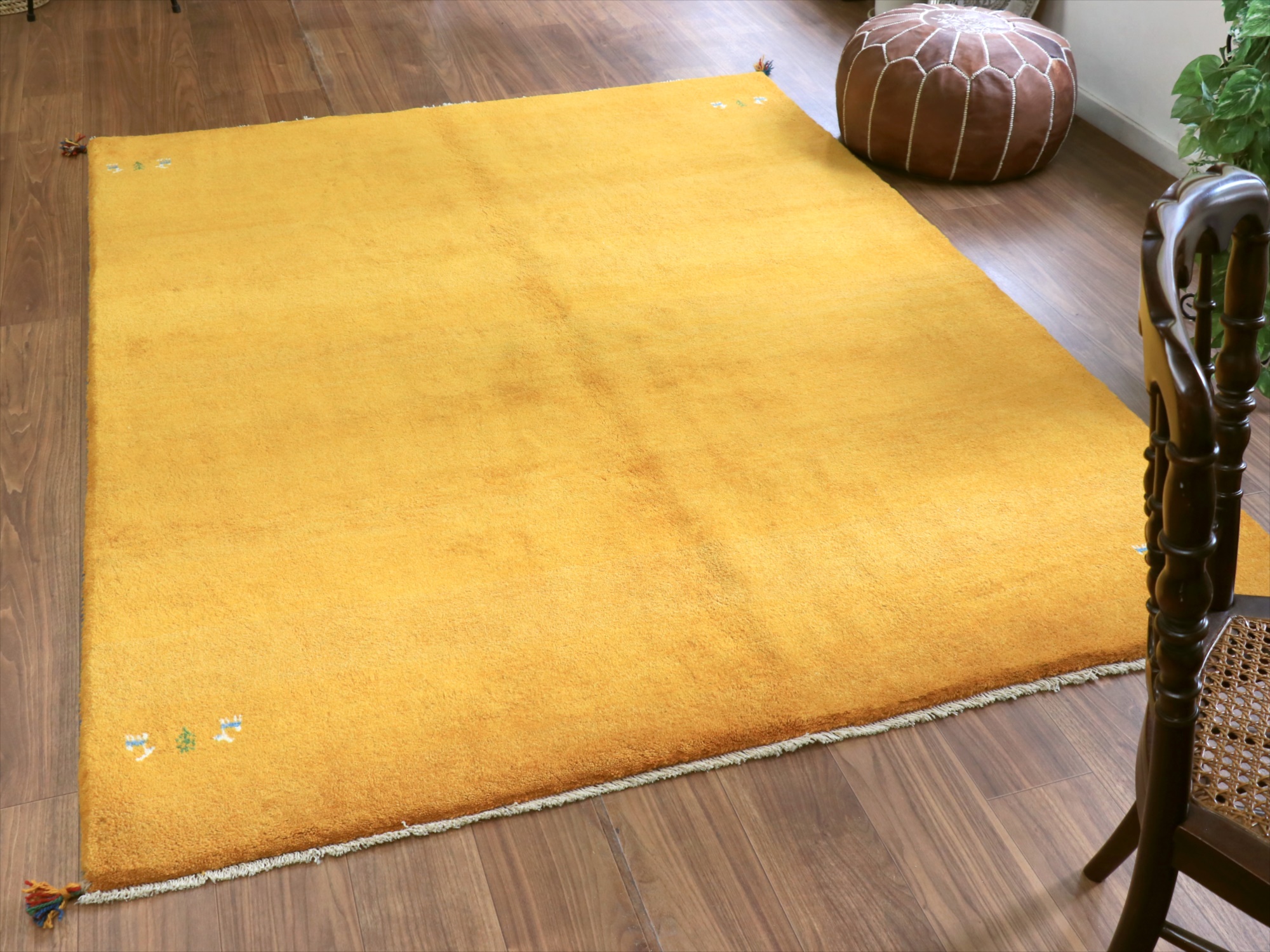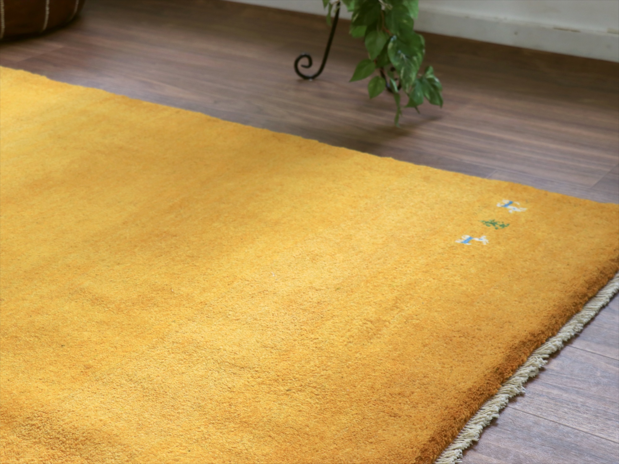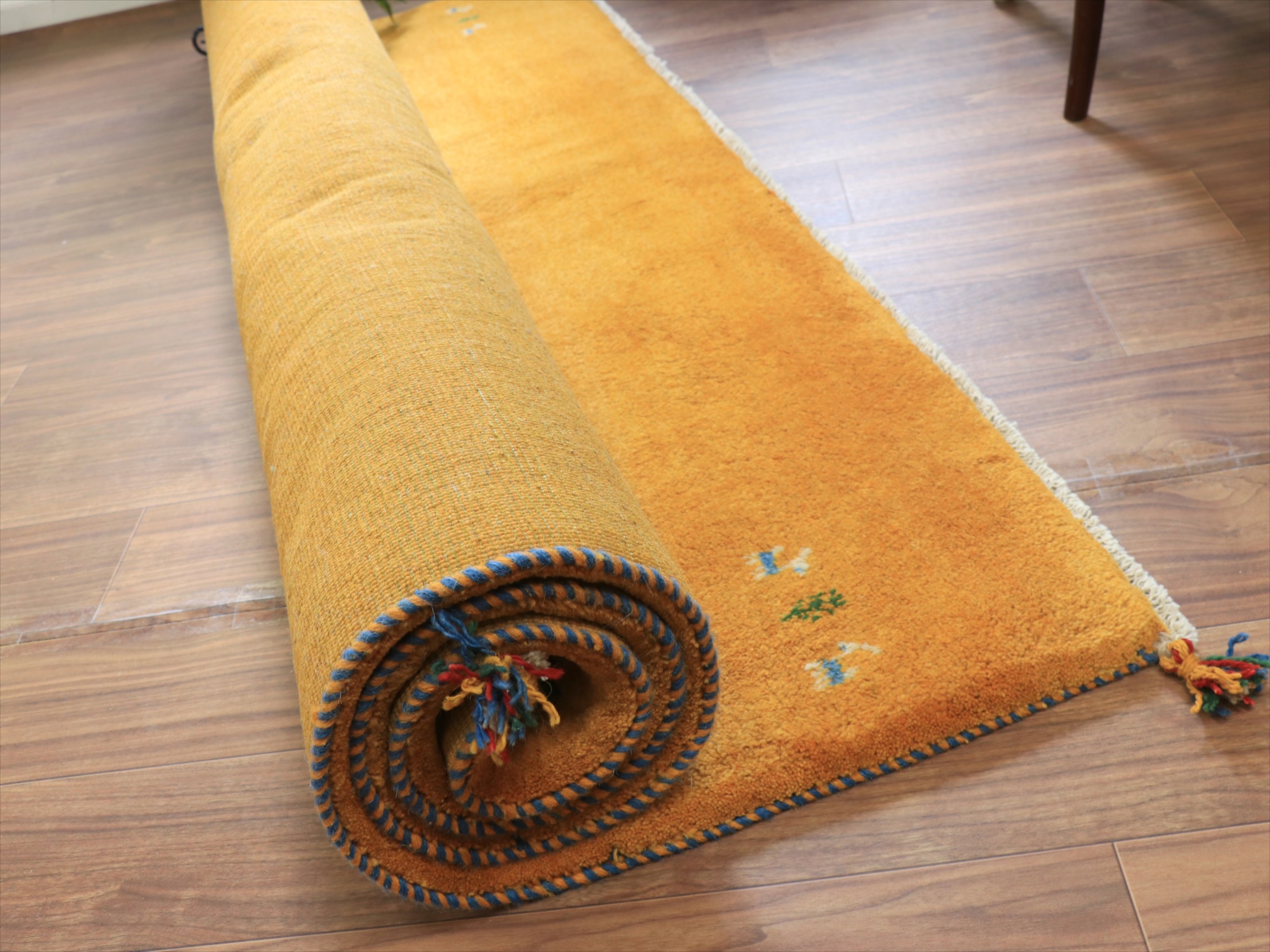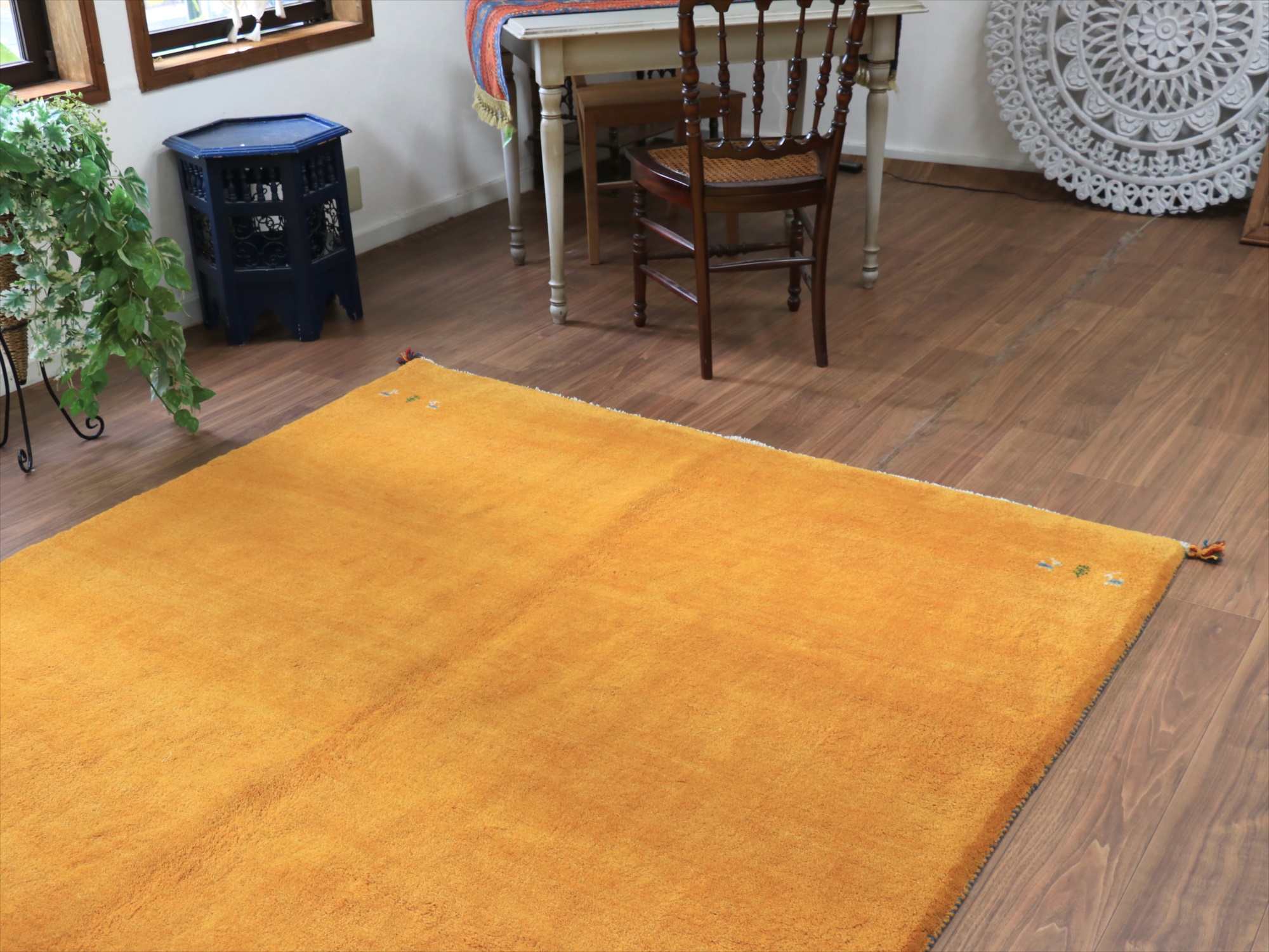ギャッベ イラン産手織り オレンジ 228x175cm 無地 シンプル 動物モチーフ