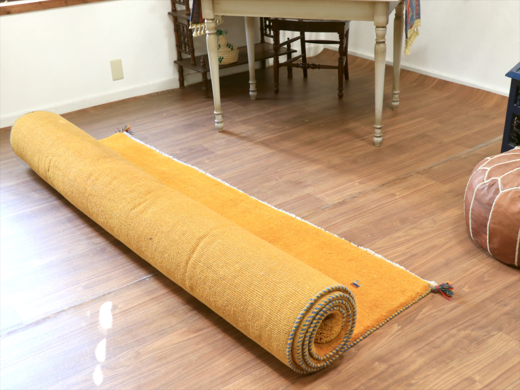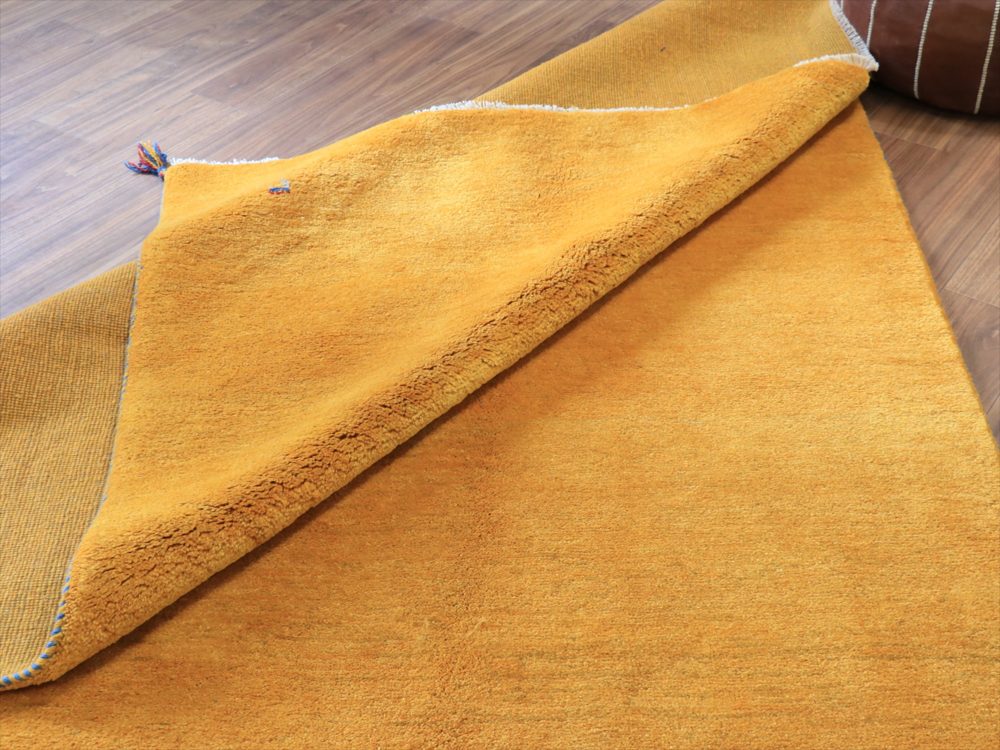 - ギャッベ イエロー イラン手織りラグ 290x198cm 無地 イラン産 カシュカイ族の手織りラグ