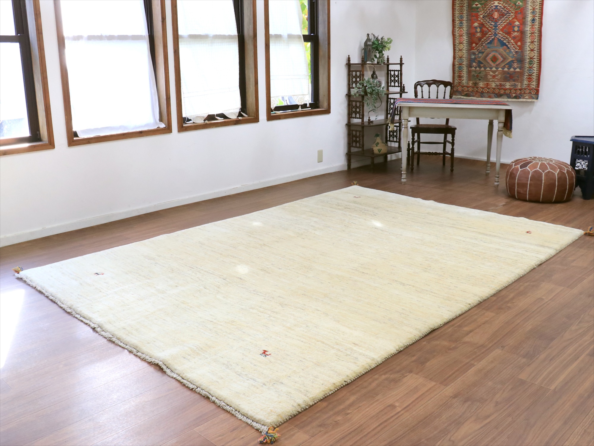 ギャッベ イラン産手織りラグ 292x200cm シンプル 無地 ナチュラルアイボリー ベージュ
