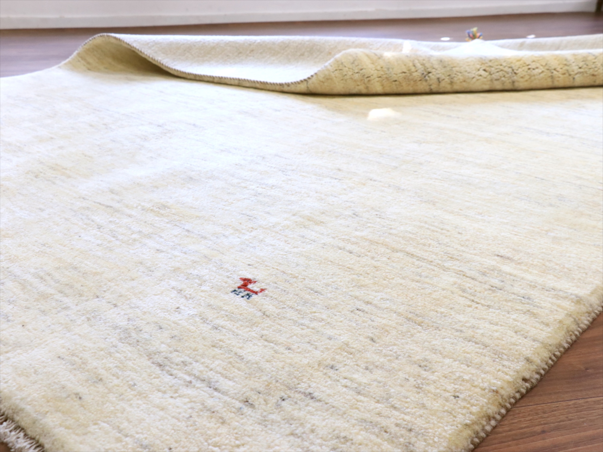 6. ギャッベ イラン産手織りラグ 292x200cm シンプル 無地 ナチュラルアイボリー ベージュ
