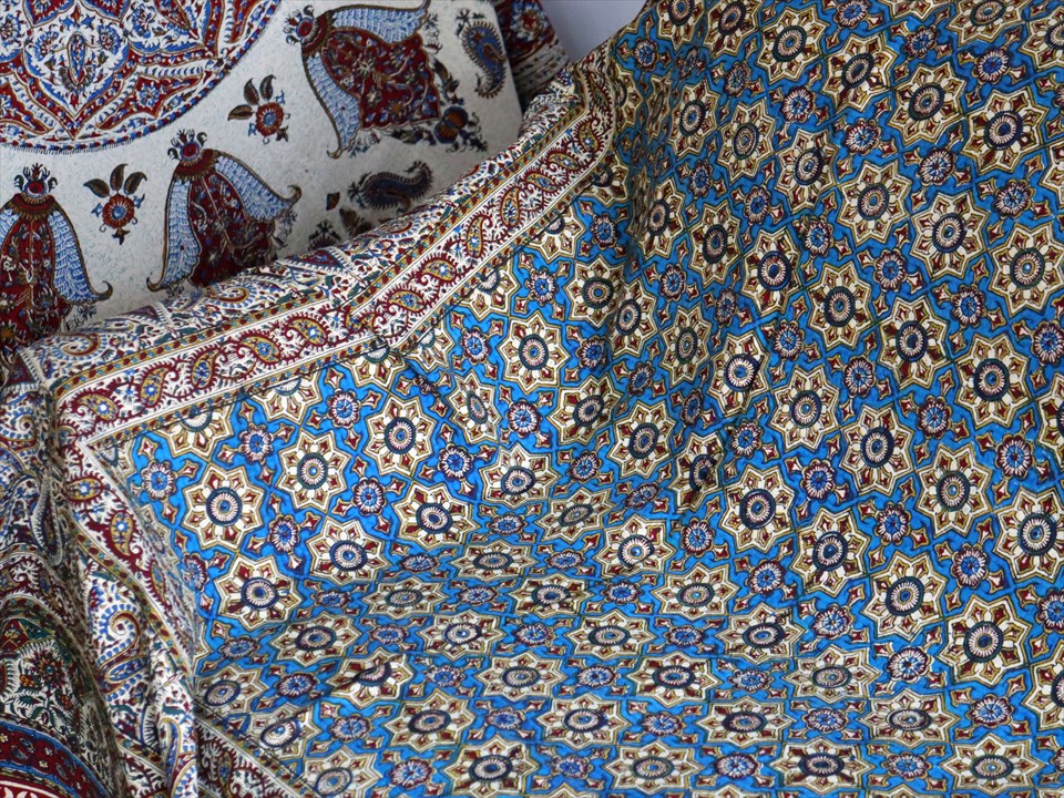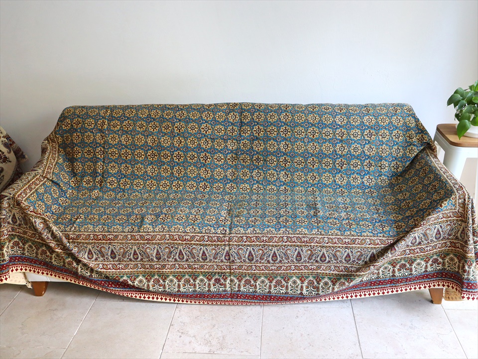 【15%OFF】ペルシャ更紗 イラン手染め布 274x204cm アンティークデザイン ソファーカバー ベッドカバー