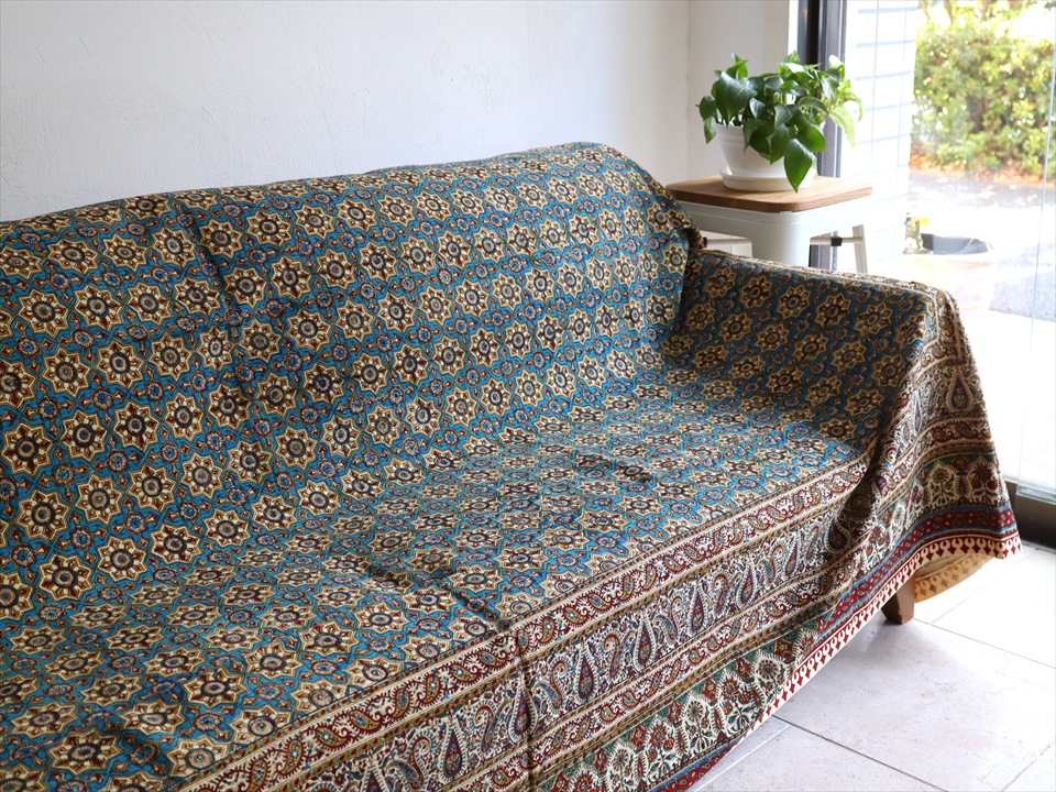 Key:コットン 染色 ブロックプリント 木版 伝統工芸 フリークロス マルチカバー ベッドスプレッド ベッドカバー ソファカバー カーテン タペストリー 背景 ファブリック インテリアファブリック インテリア ペルシャ イラン シルクロード アジアン エスニック ペイズリー 280cmサイズ