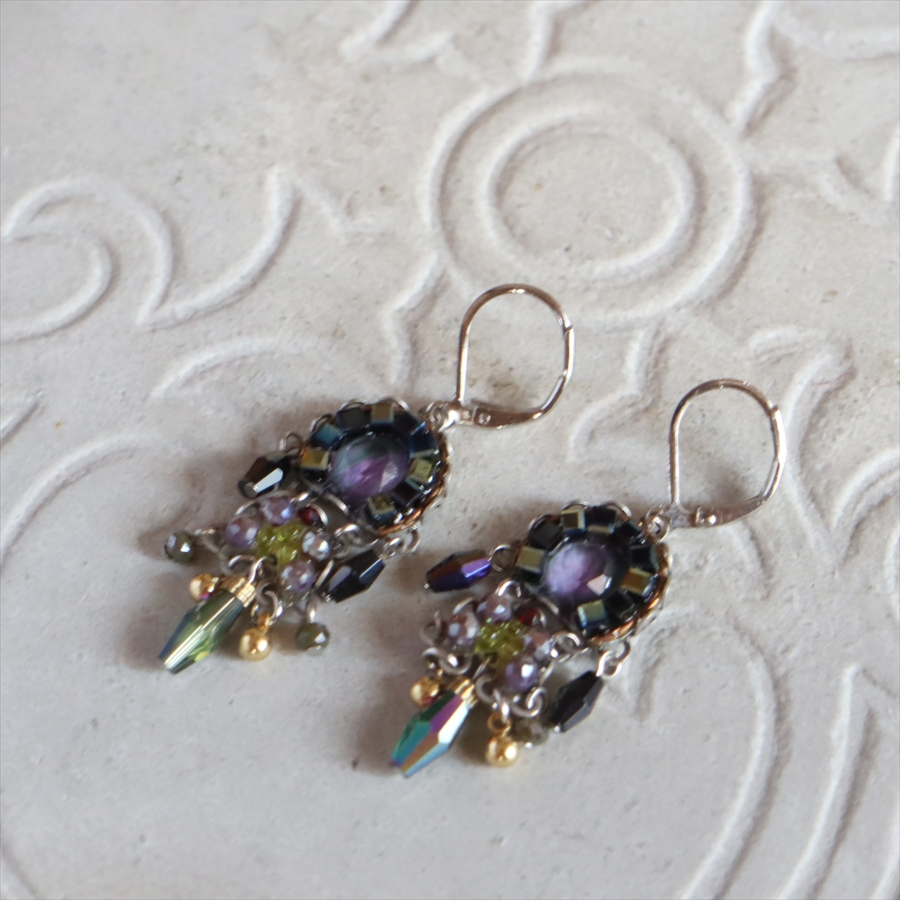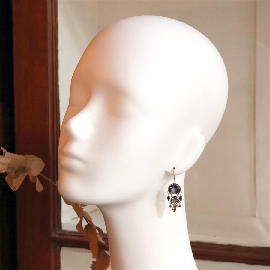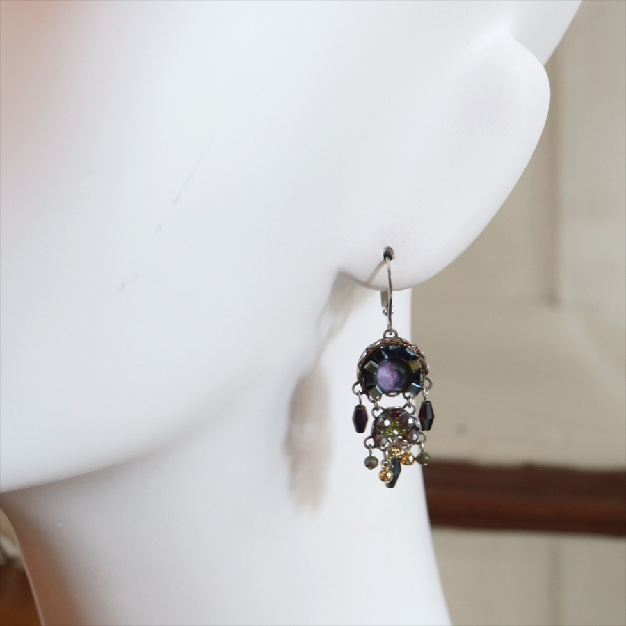 深みあるインディゴとパープルのミステリアスな雰囲気のSilent Shadowsという名のシリーズ。耳元で煌めくビーズが揺れるエレガントなピアスです。