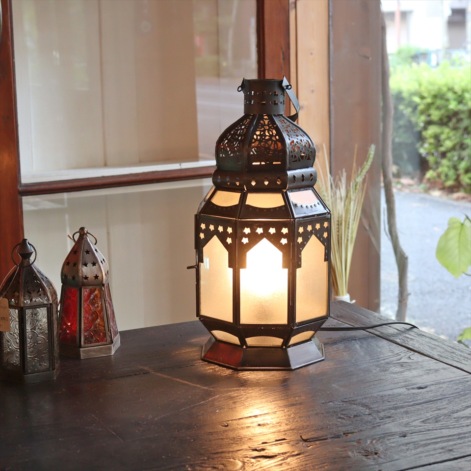 Key:モロッコランプ モロッコランタン テーブルライト デスクライト フロアライト アラブ風 ガラスシェード 照明 照明器具 店舗照明 インテリア モロッコ エジプト アイアン ランプ オリエンタル アラブ 中東 ガラスランプ Egyptian Morroco Lamp Arabic Light エスニック