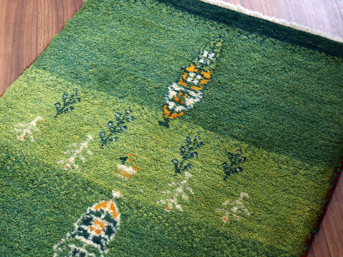 Key:ギャッベ, ギャベ, グリーン 緑 天然染料 草木染 ラグ, 絨毯, イラン, シラーズ, ペルシャ, バザールギャッベ, ポンポン, 手織り, 一点もの, 玄関マット, Gabbeh, Tribal rug, Shiraz, Fars, Iran, Persia, Wool, ふかふか, ガラタバザール