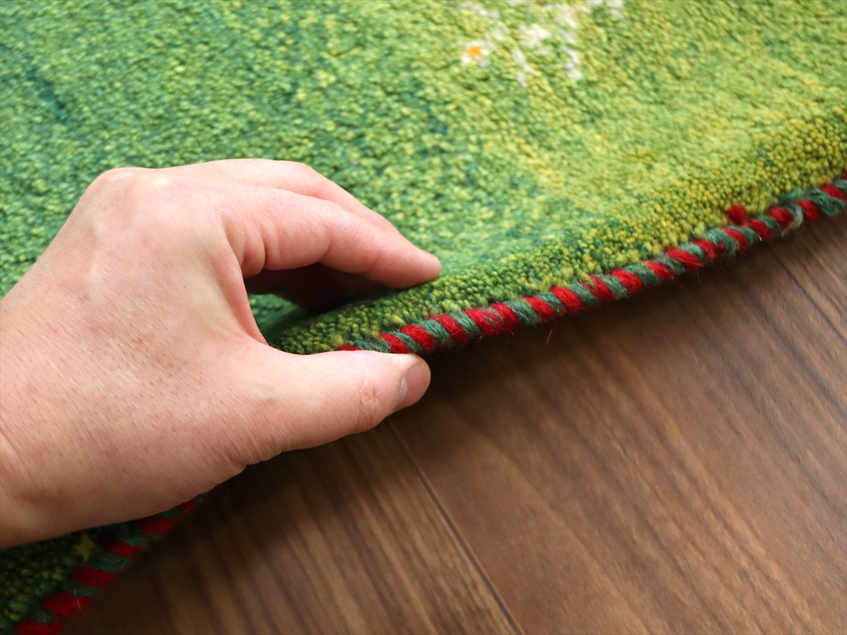 ギャッベ イラン産手織り 82×64cm 玄関マット グリーン 糸杉と生命の樹