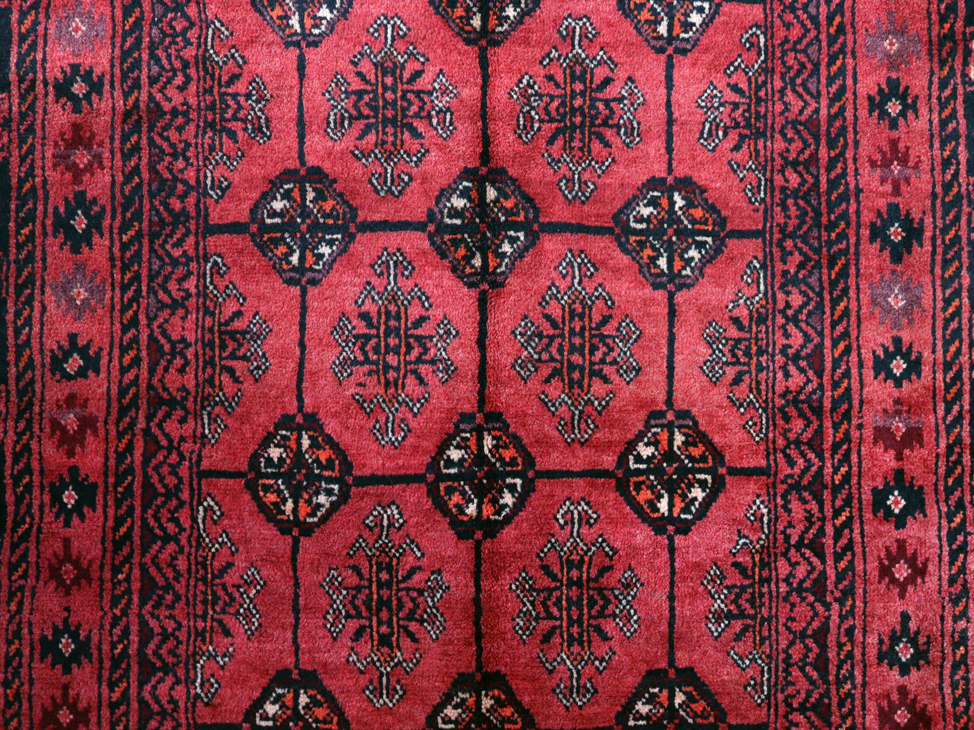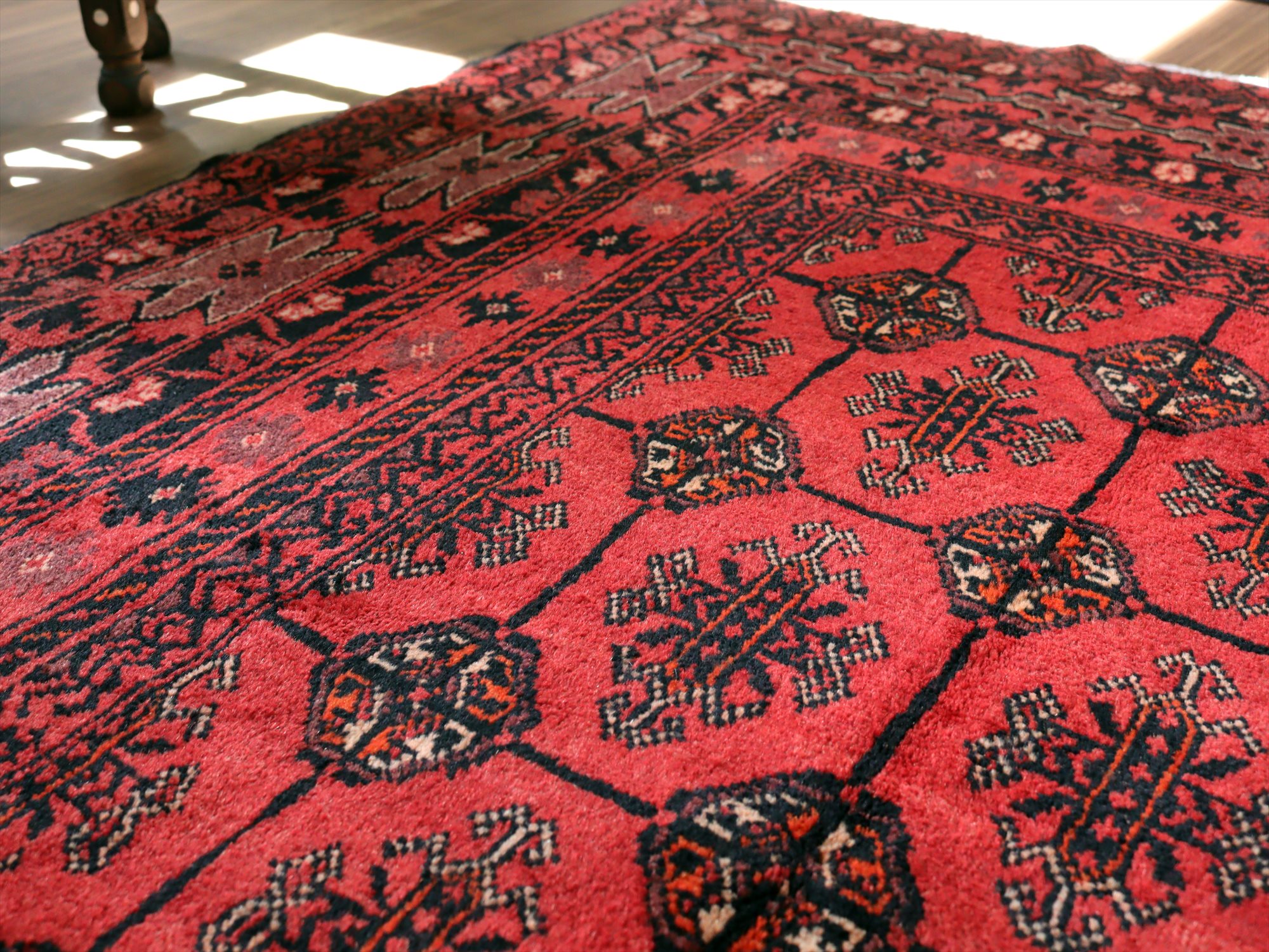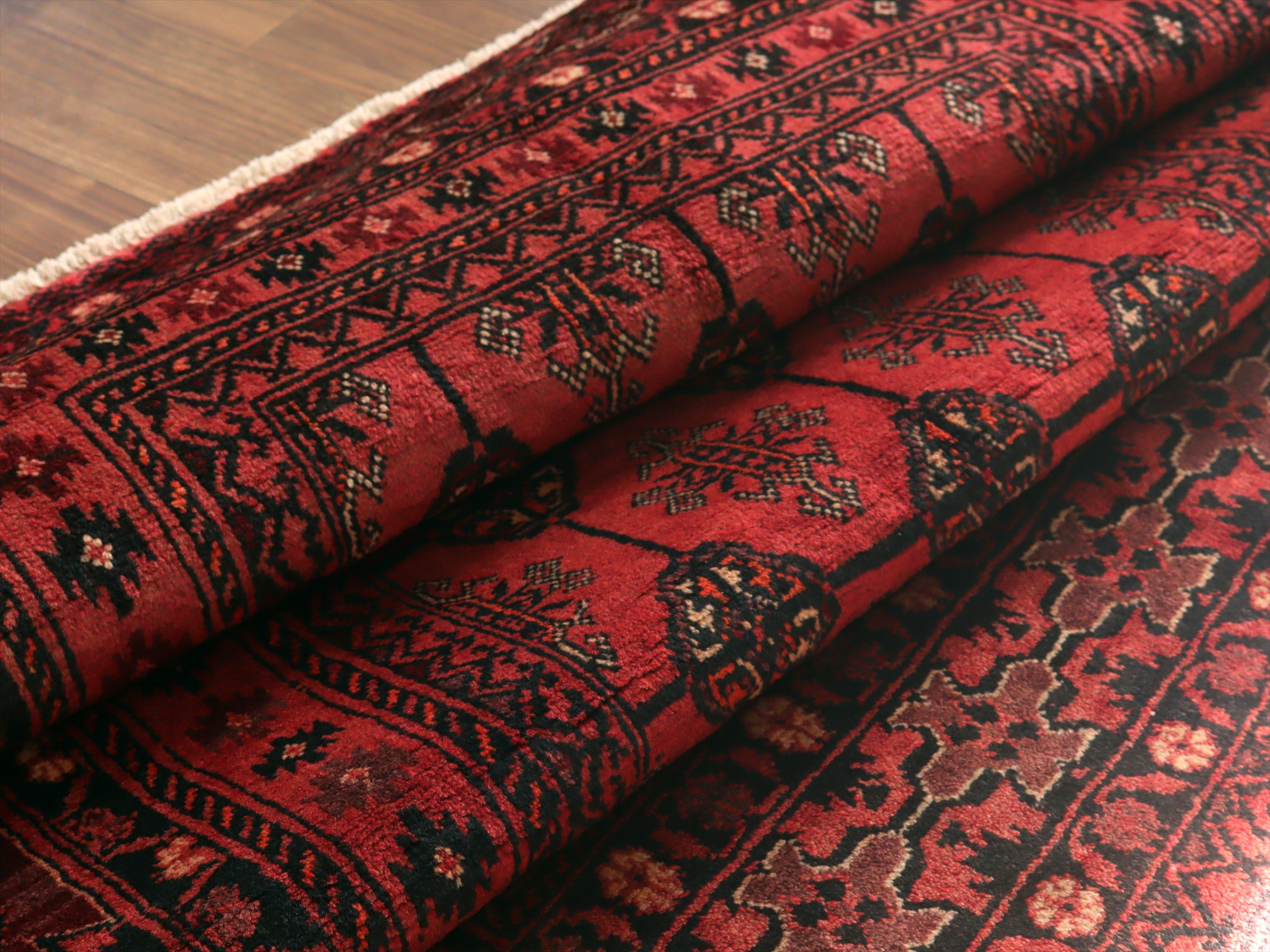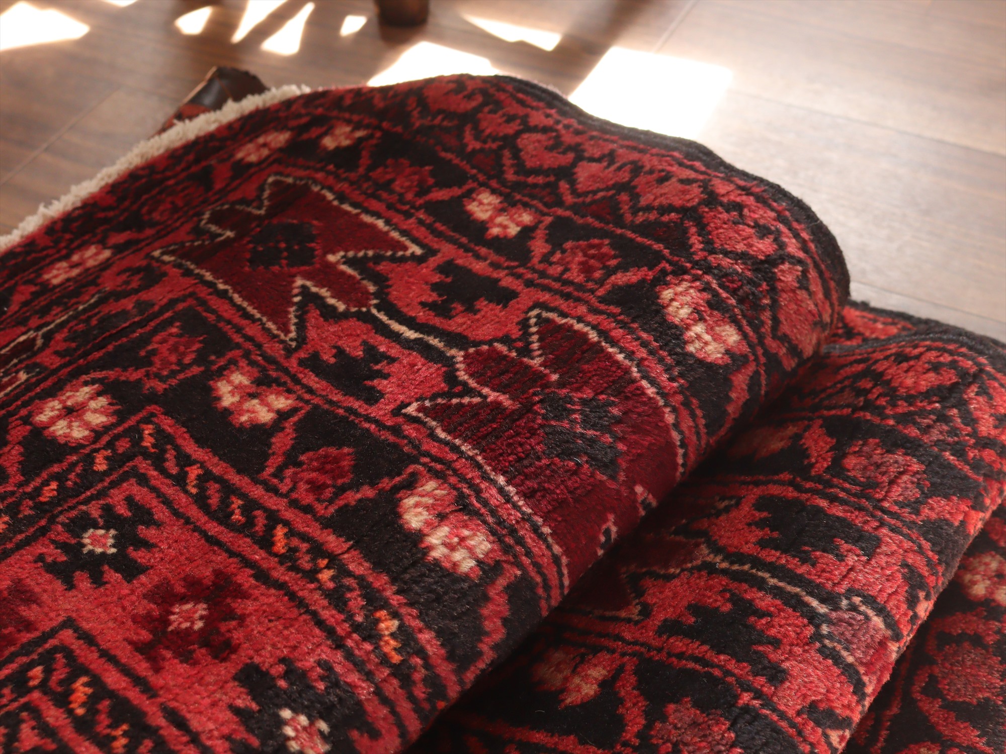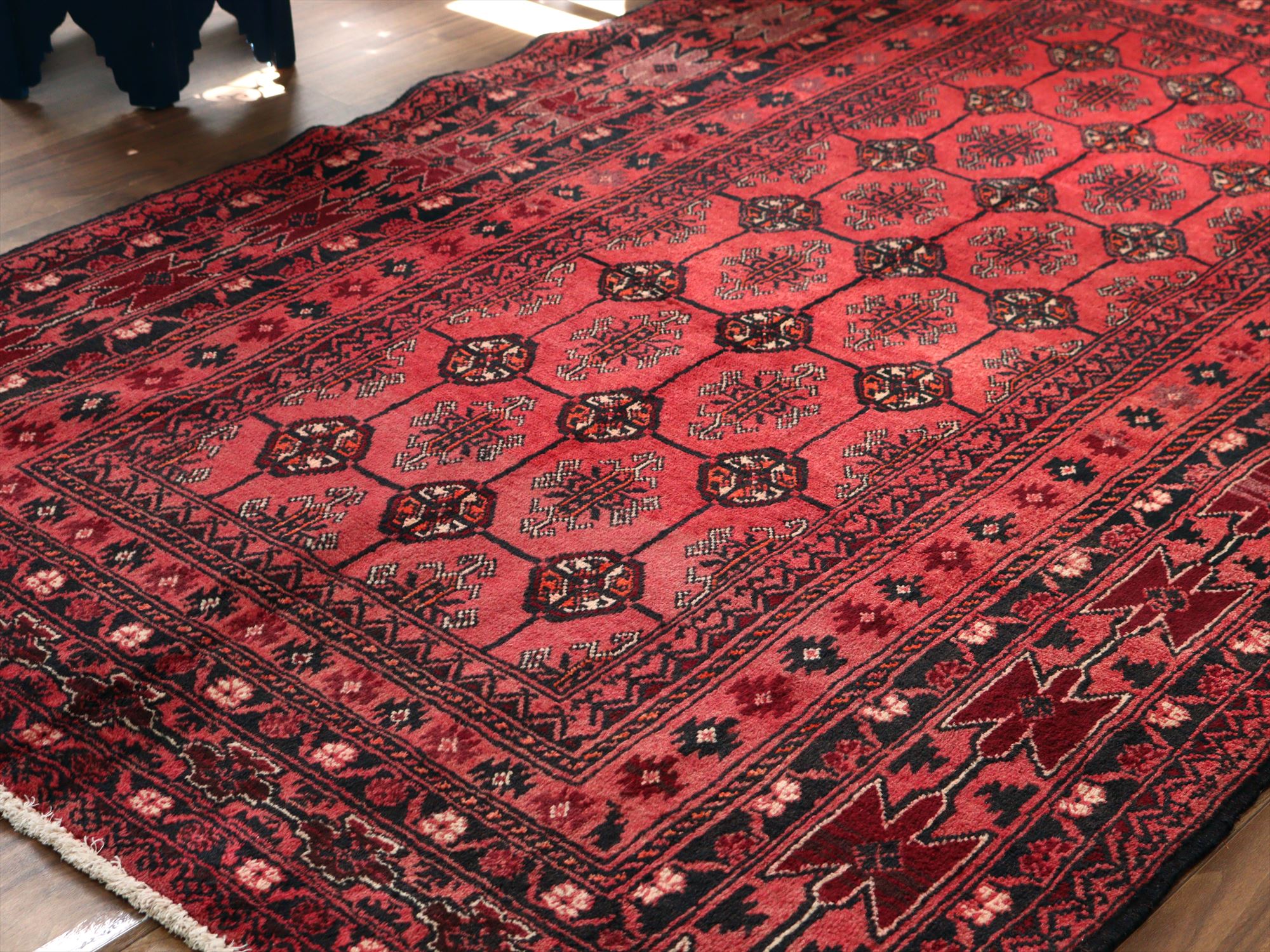 イラン東部からアフガン・パキスタンなどに住むバルーチ族のカーペット。赤地にギュルのモチーフが入ったバルーチの典型的なデザインです。