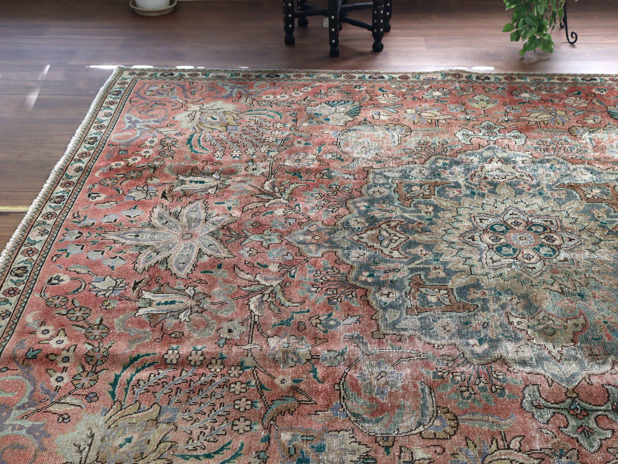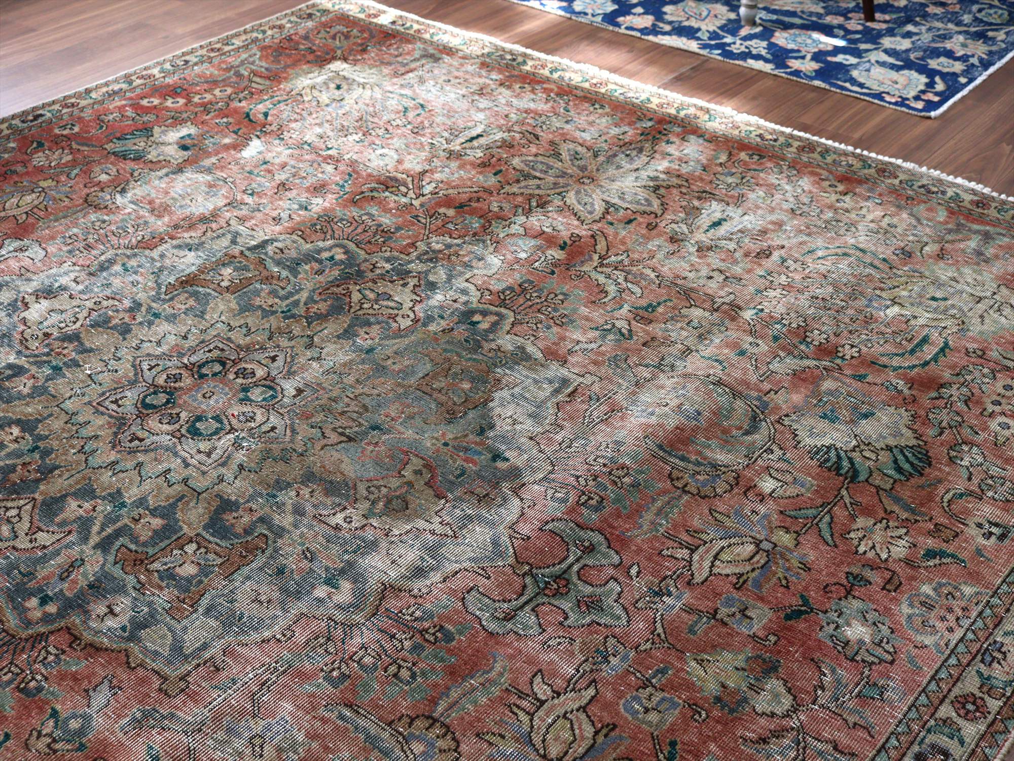 - オーバーダイド ヴィンテージラグ レッド273×228cm タブリーズ イランの手織り絨毯