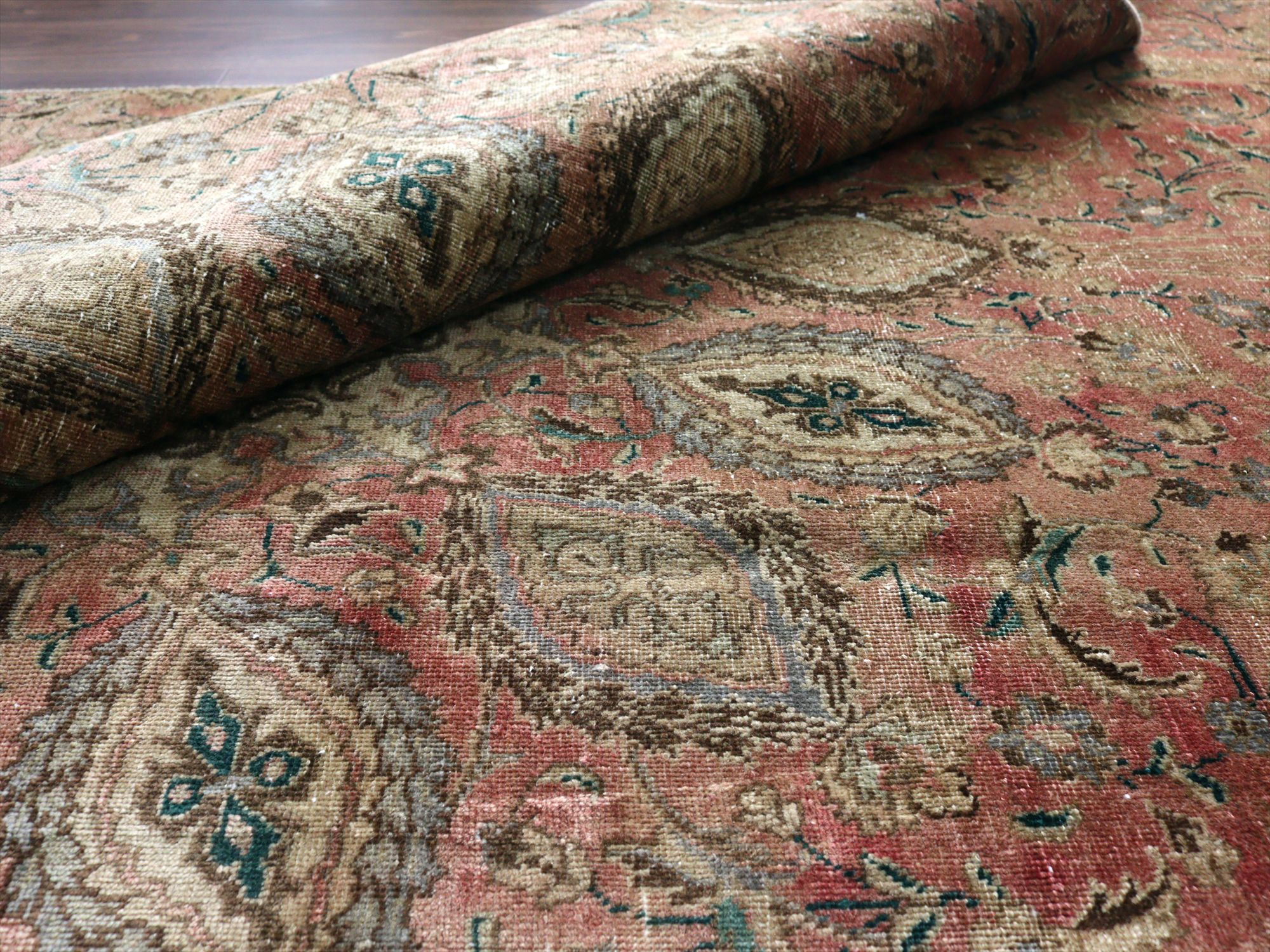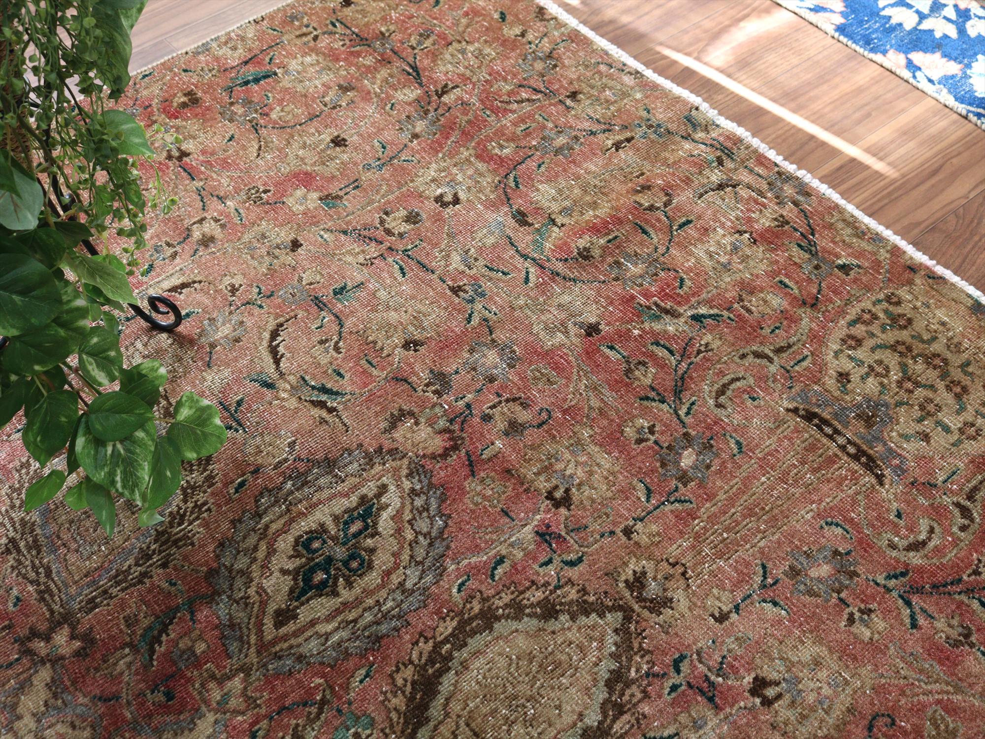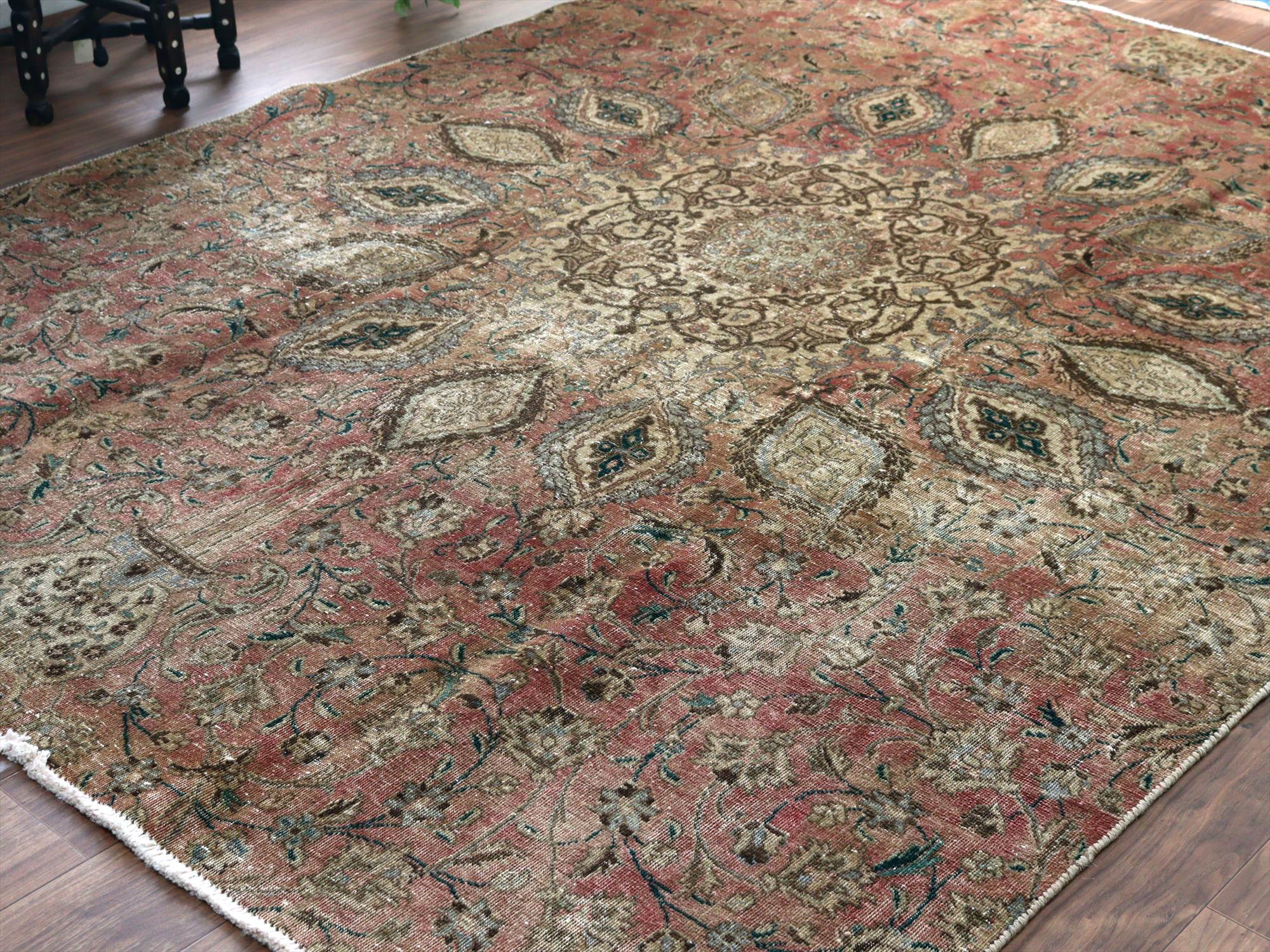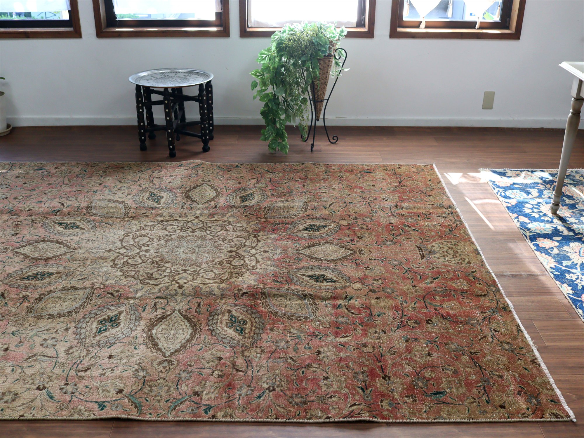 - オーバーダイド ヴィンテージラグ レッド262×198cm タブリーズ イランの手織り絨毯