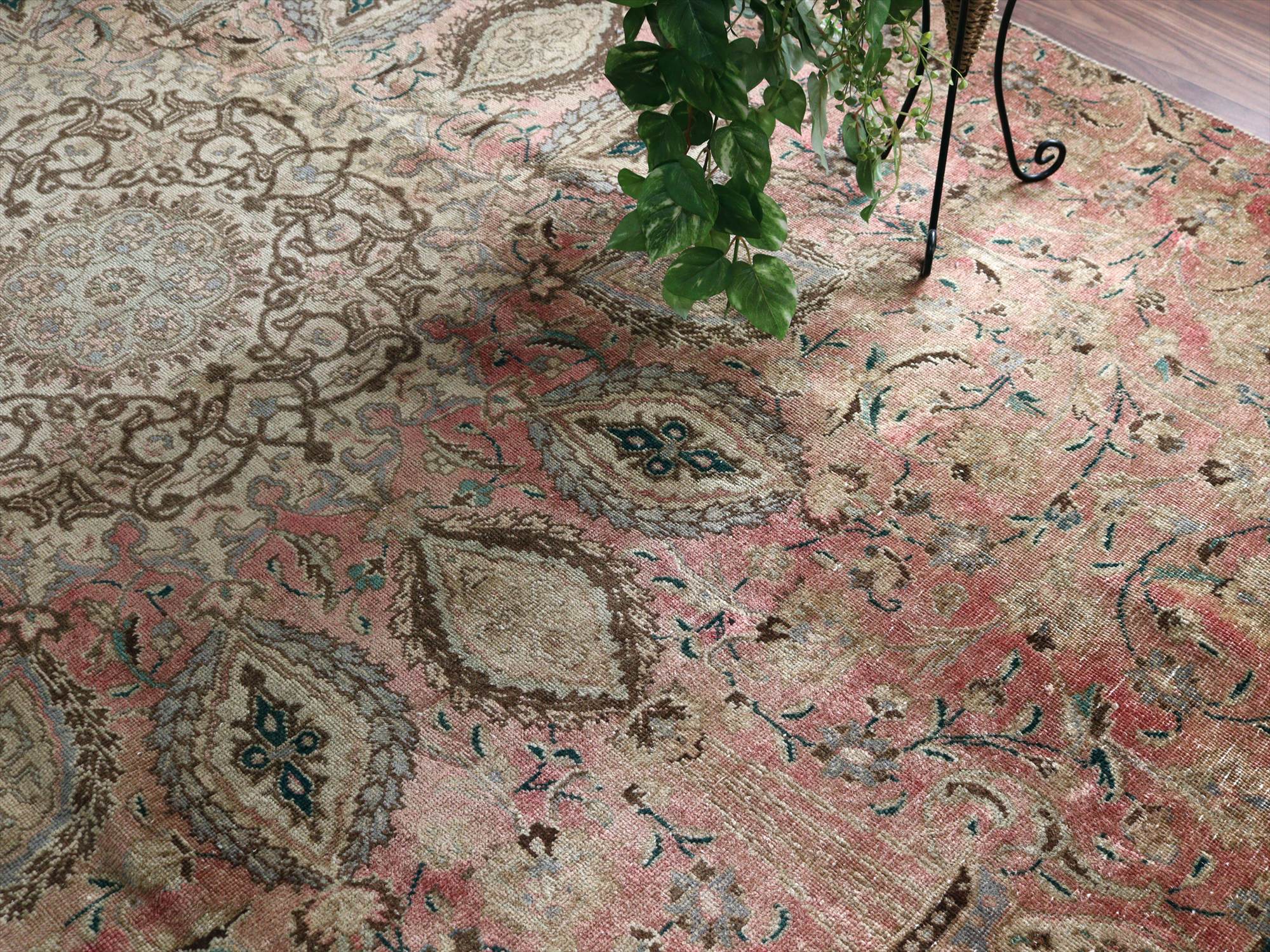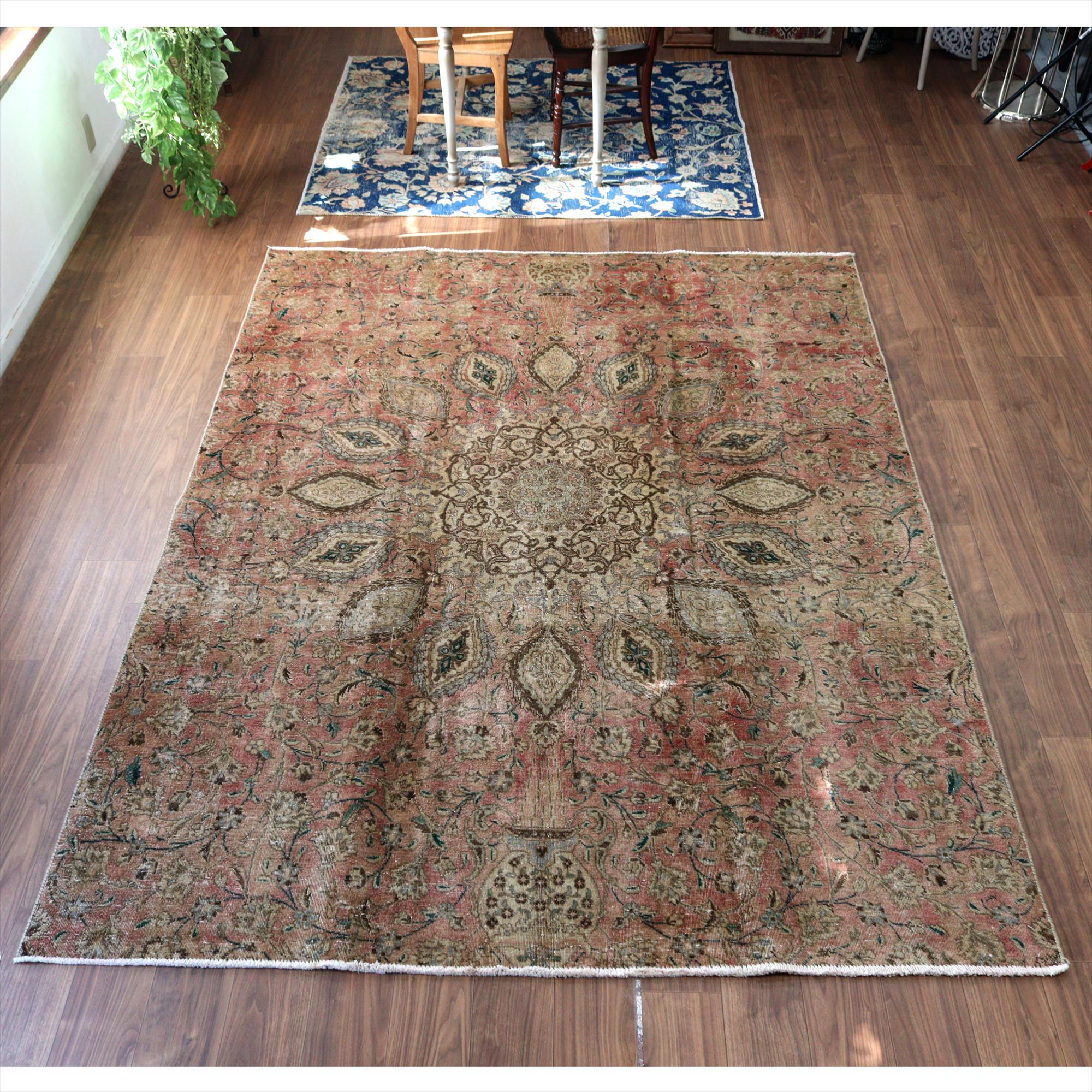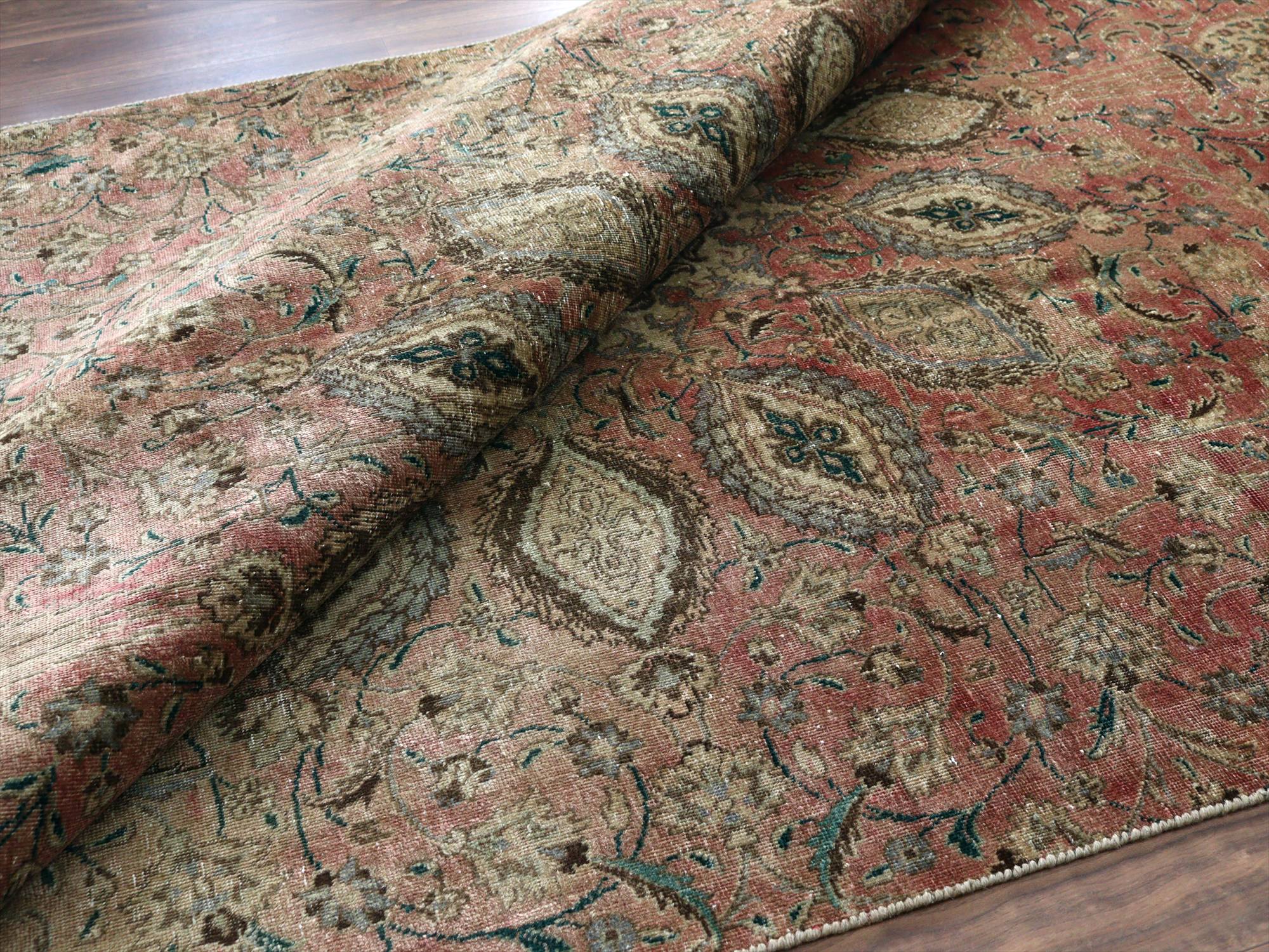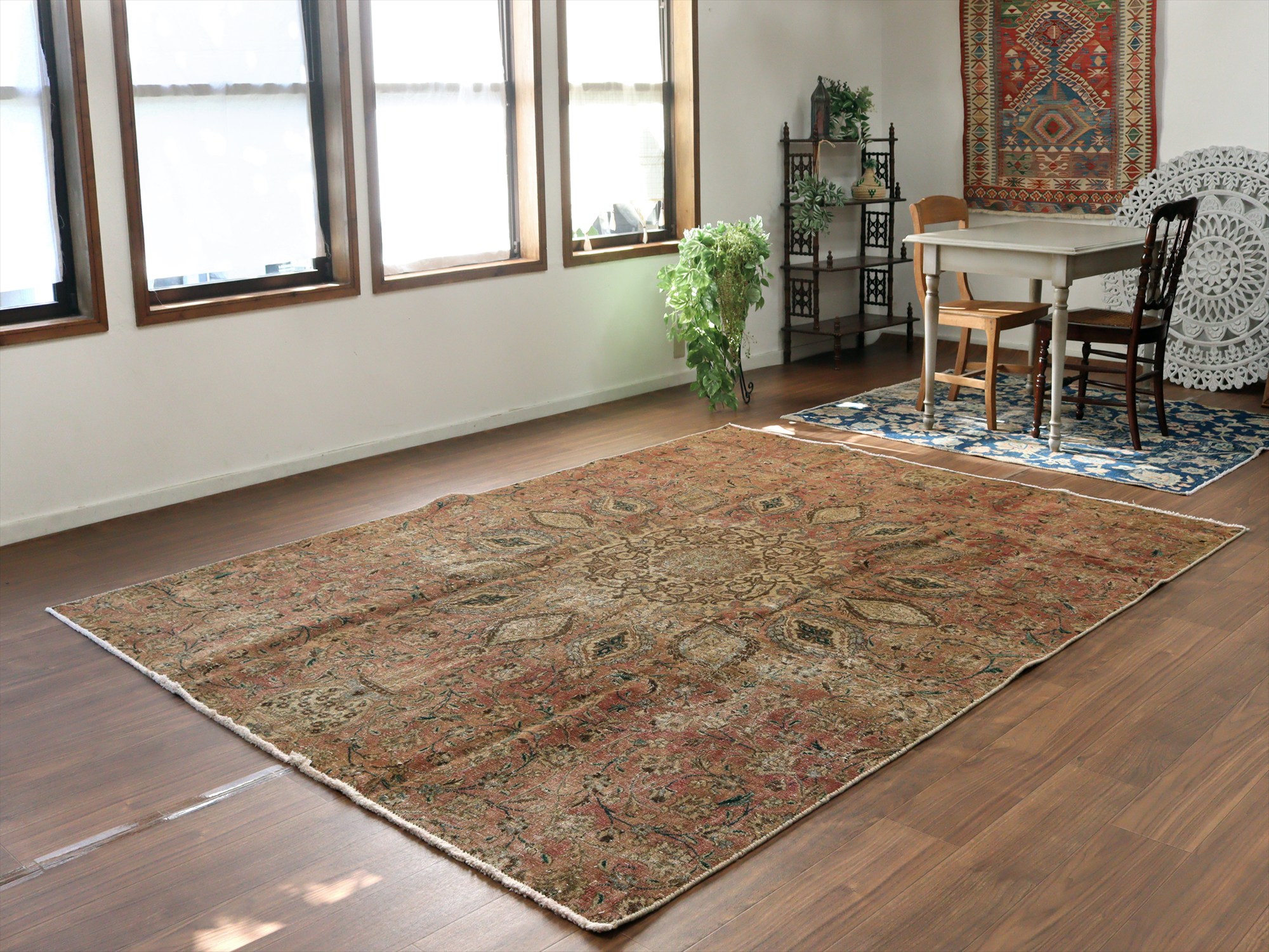 - オーバーダイド ヴィンテージラグ レッド262×198cm タブリーズ イランの手織り絨毯