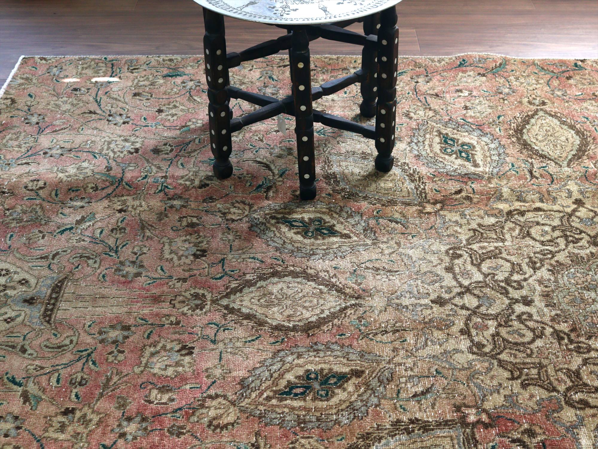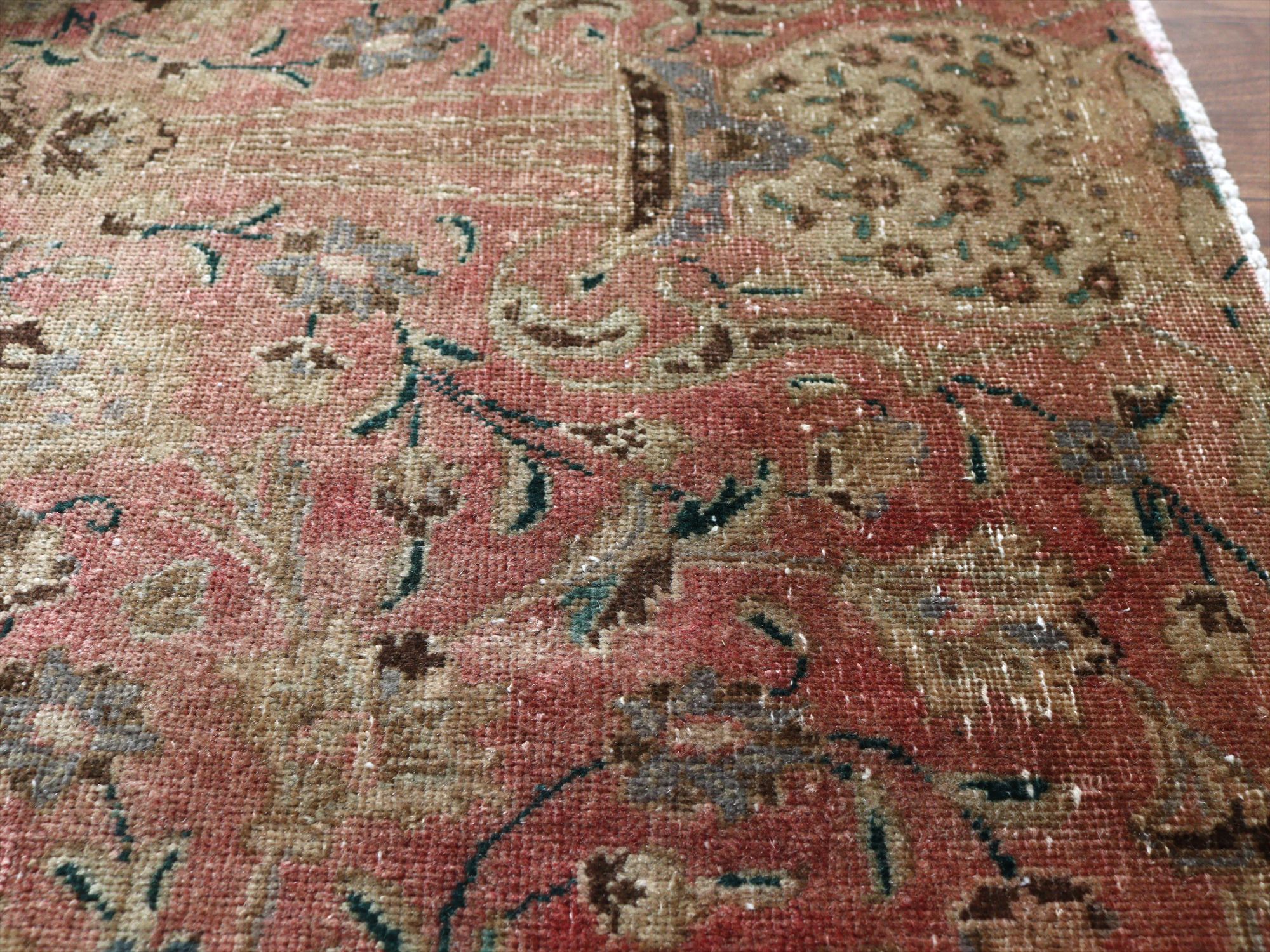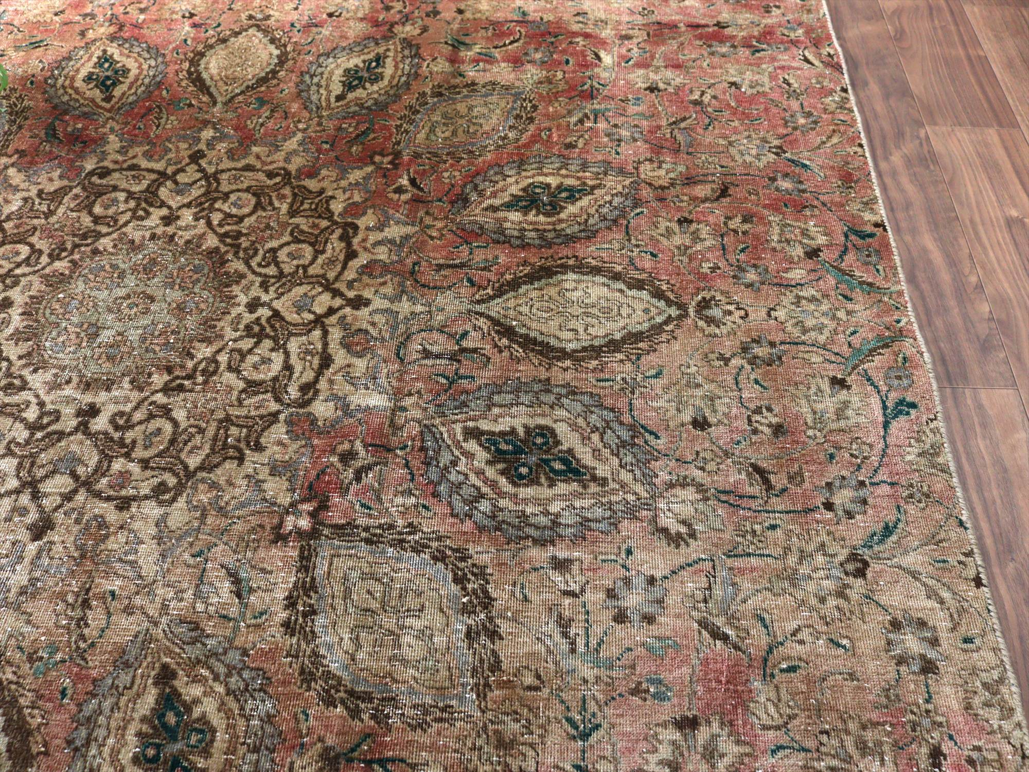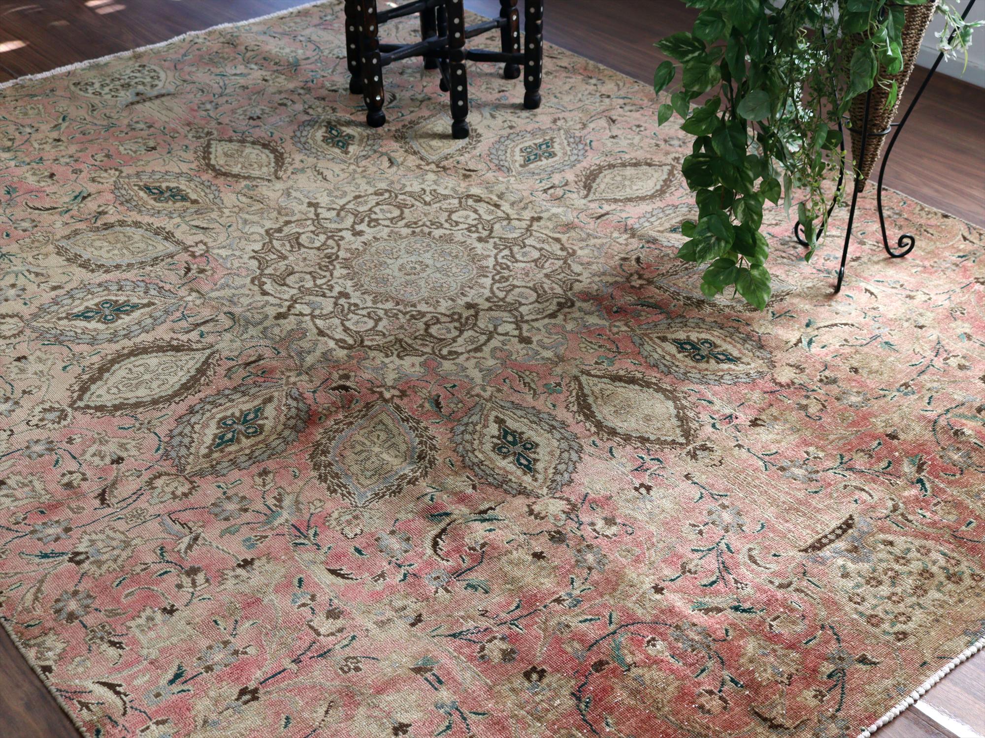 - オーバーダイド ヴィンテージラグ レッド262×198cm タブリーズ イランの手織り絨毯