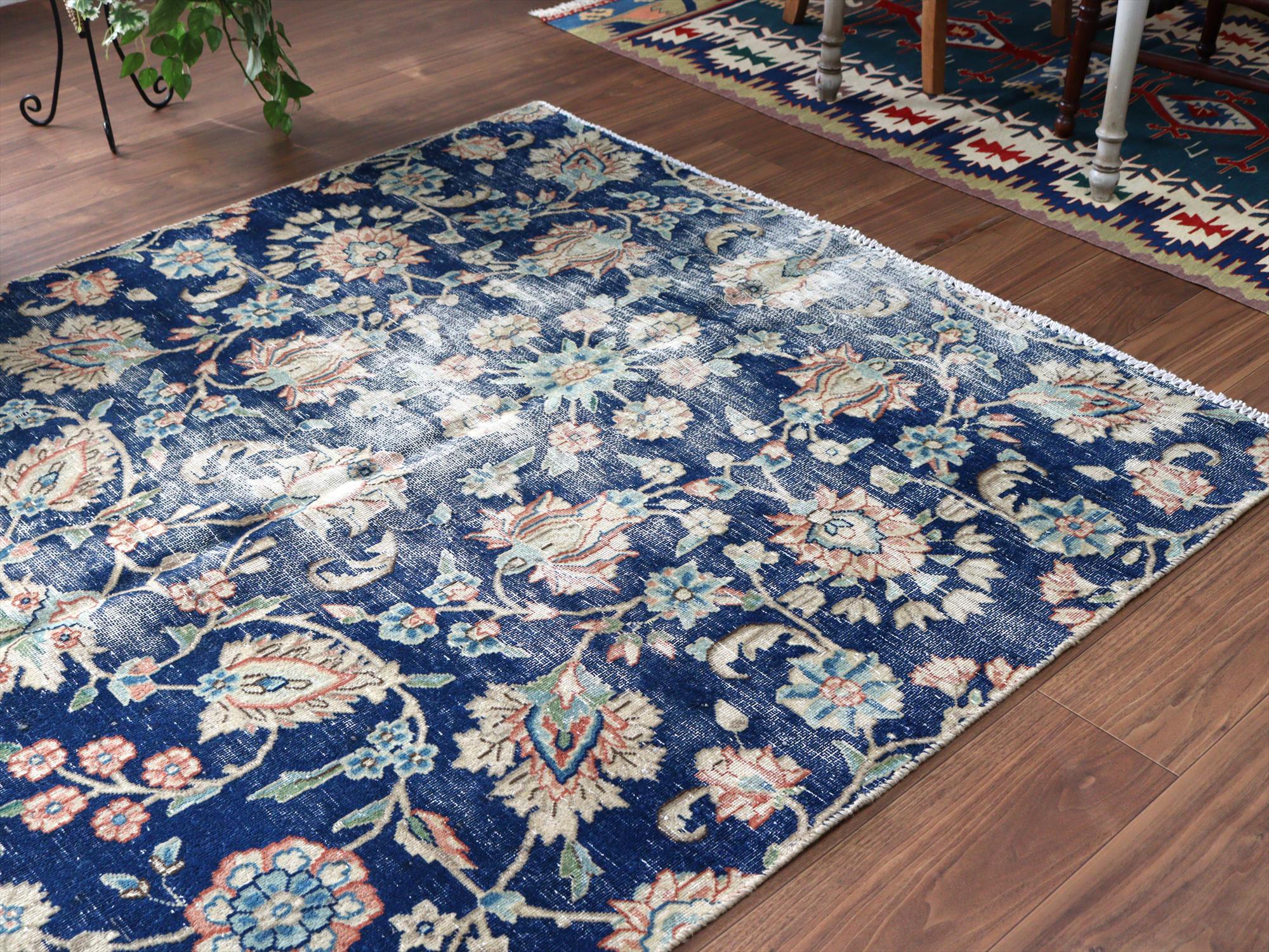 - オーバーダイド アップサイクル163×136cm ヴィンテージラグ イランの手織り絨毯