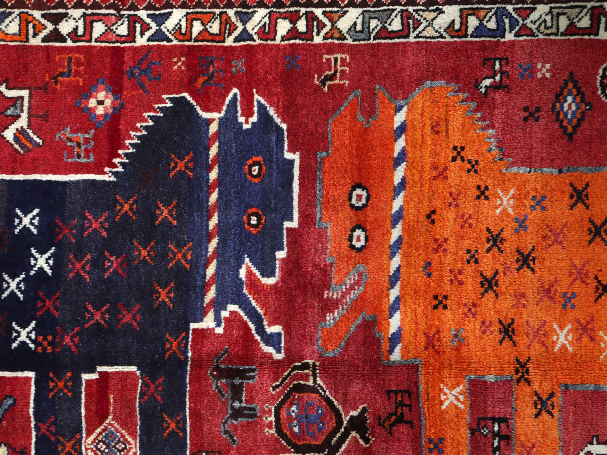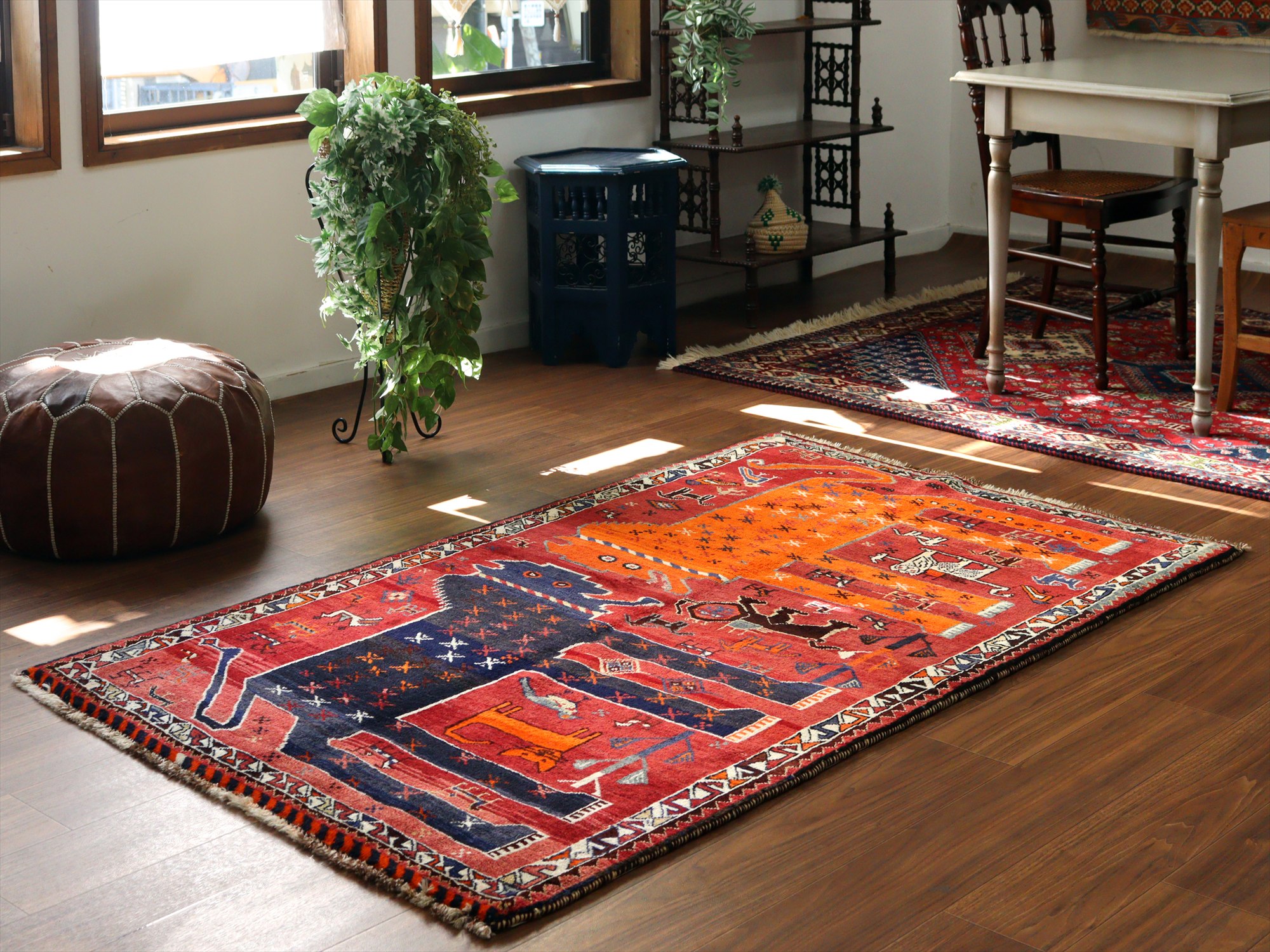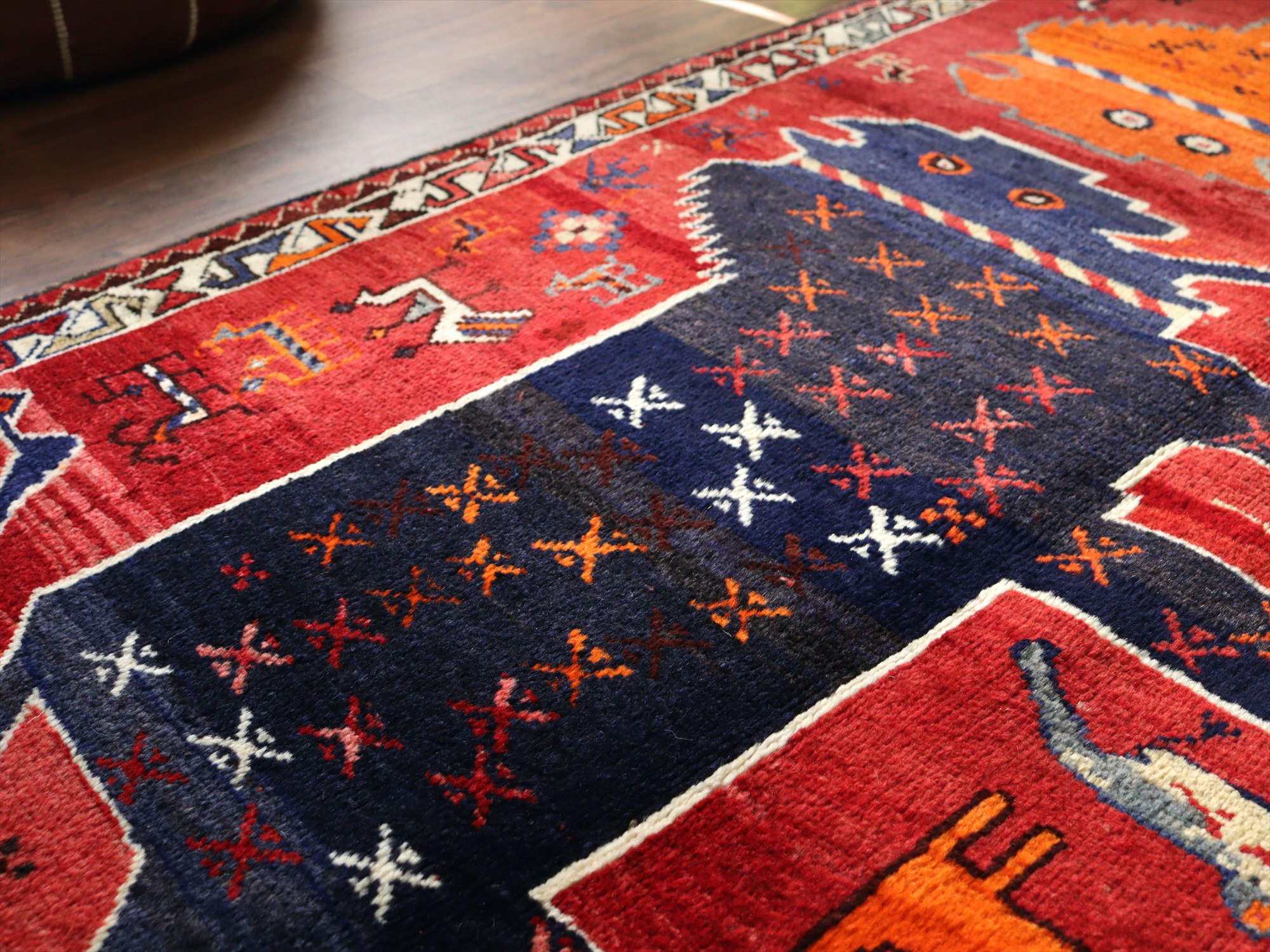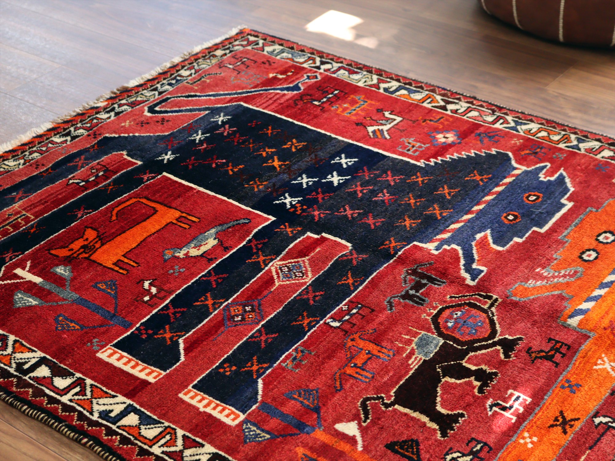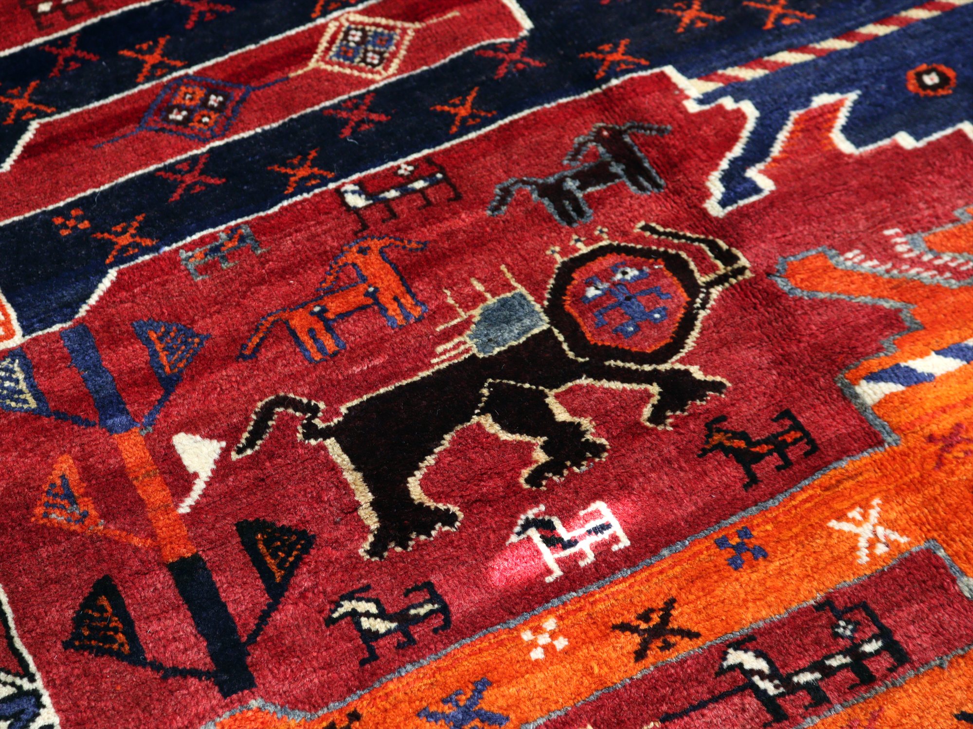 Key:old gabbeh, lion gabbeh, lion rug, vintage rug, Tribal rug, オールドギャベ, ライオンギャッベ, ライオンラグ, ラグ, ギャッベ, ギャベ, 部族絨毯, トライバルラグ, ヴィンテージ, コレクタブル, ウール製, イラン, ペルシャ, 手織り, じゅうたん, 絨毯