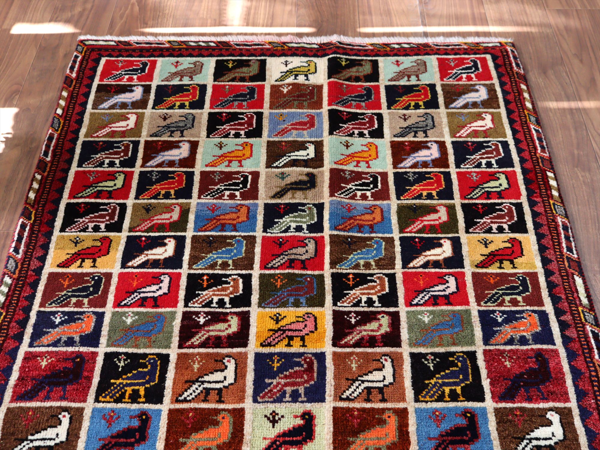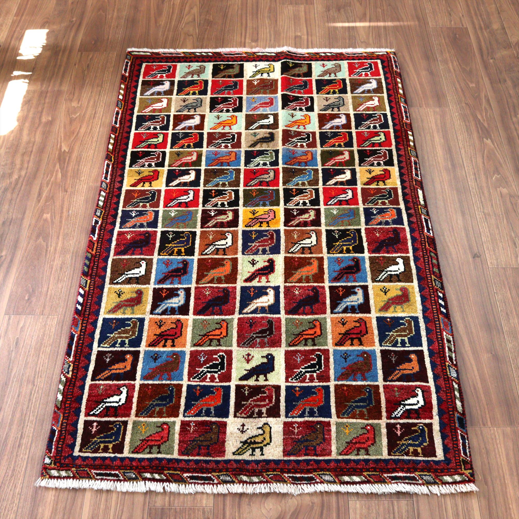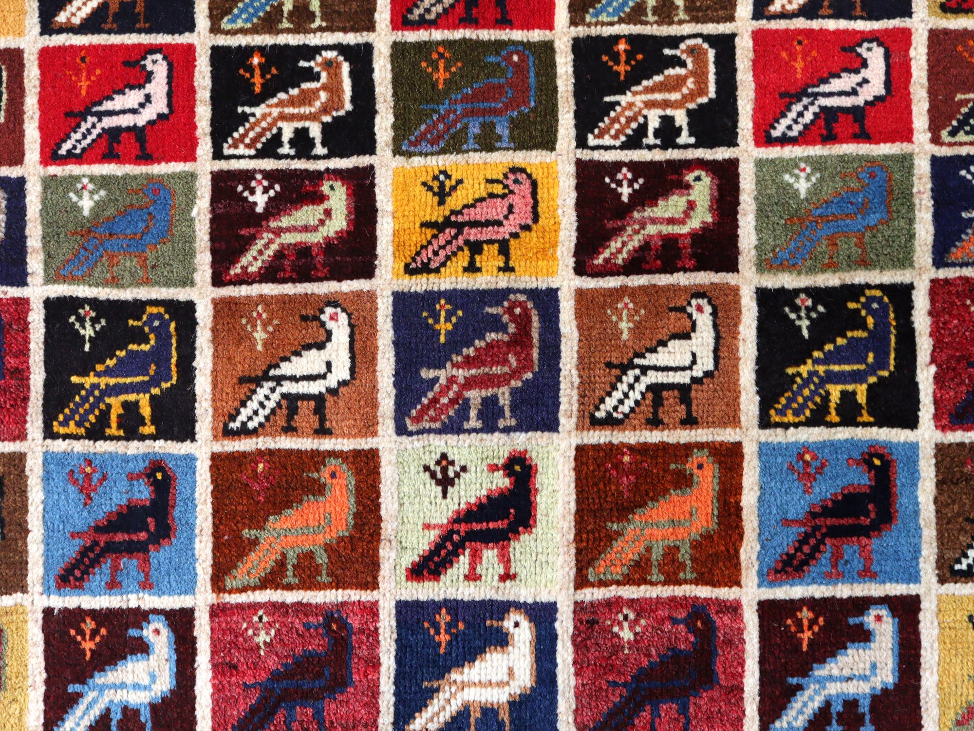 - 手織りギャッベ バード トレリスデザイン 170x105cm カラフルタイル 鳥