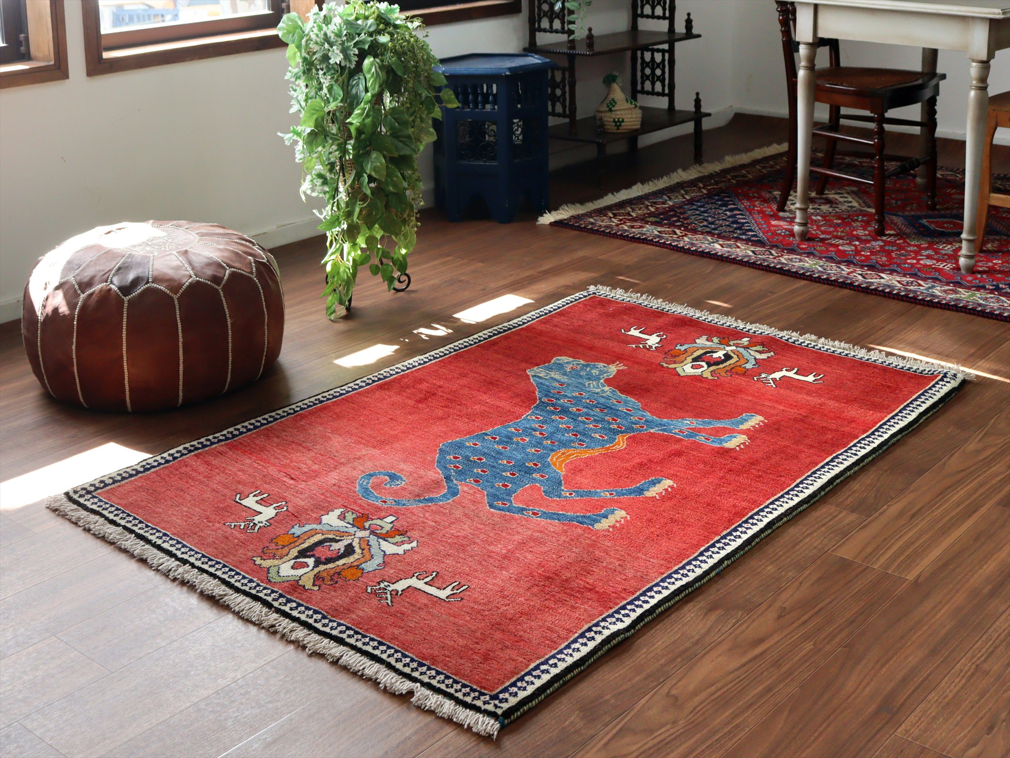 Key:old gabbeh, lion gabbeh, lion rug, vintage rug, Tribal rug, オールドギャベ, ライオンギャッベ, ライオンラグ, ラグ, ギャッベ, ギャベ, 部族絨毯, トライバルラグ, ヴィンテージ, コレクタブル, ウール製, イラン, ペルシャ, 手織り, じゅうたん, 絨毯
