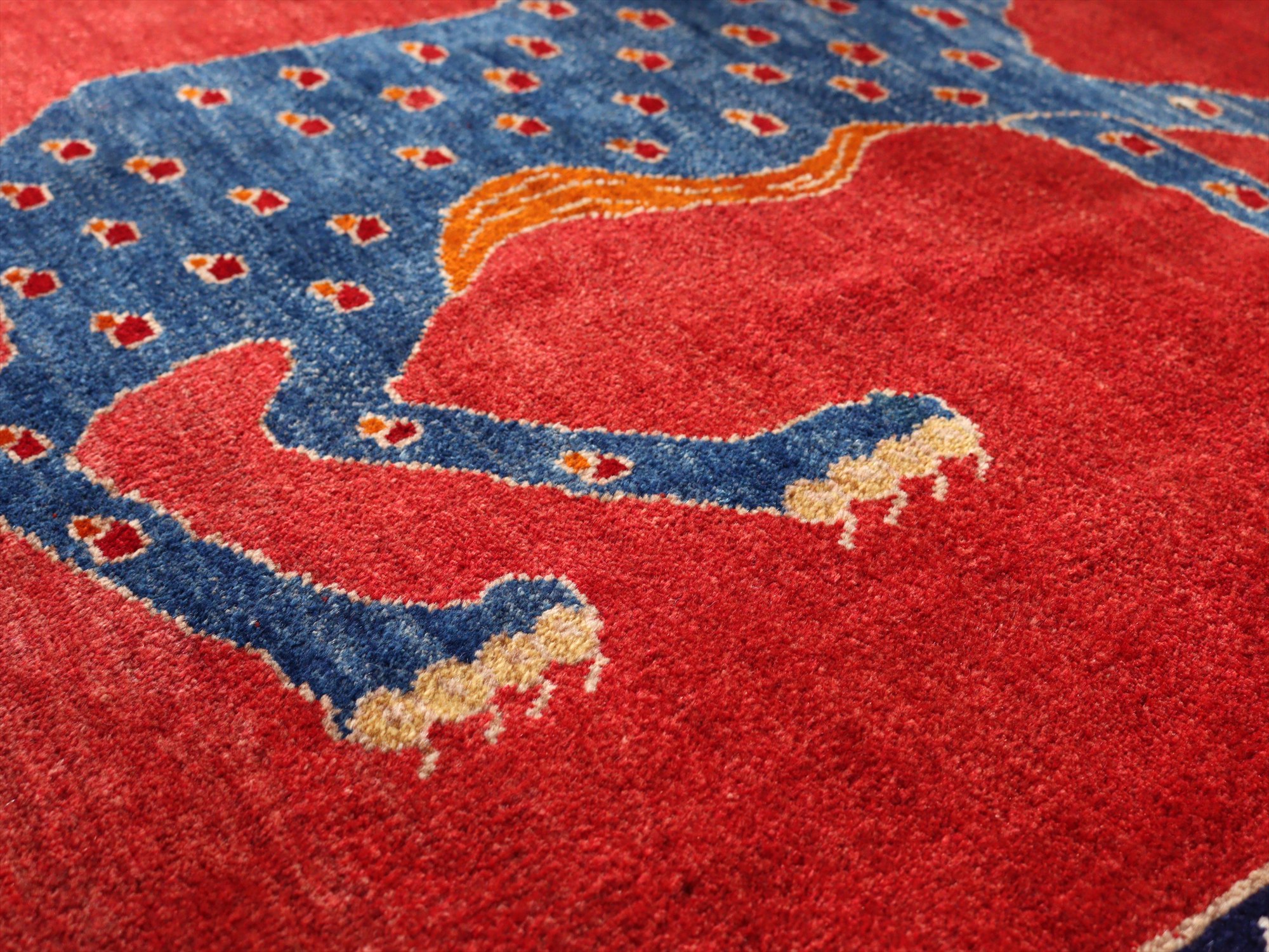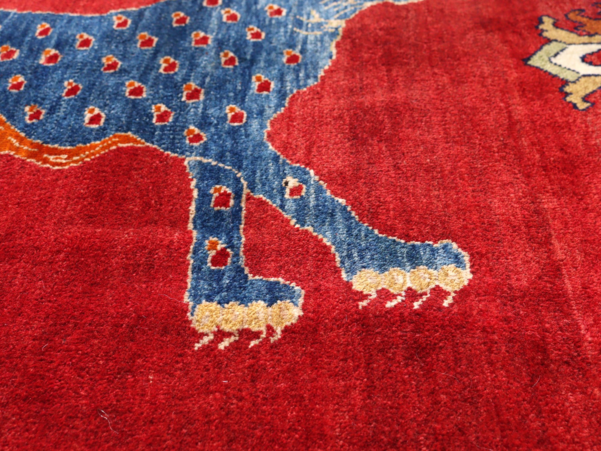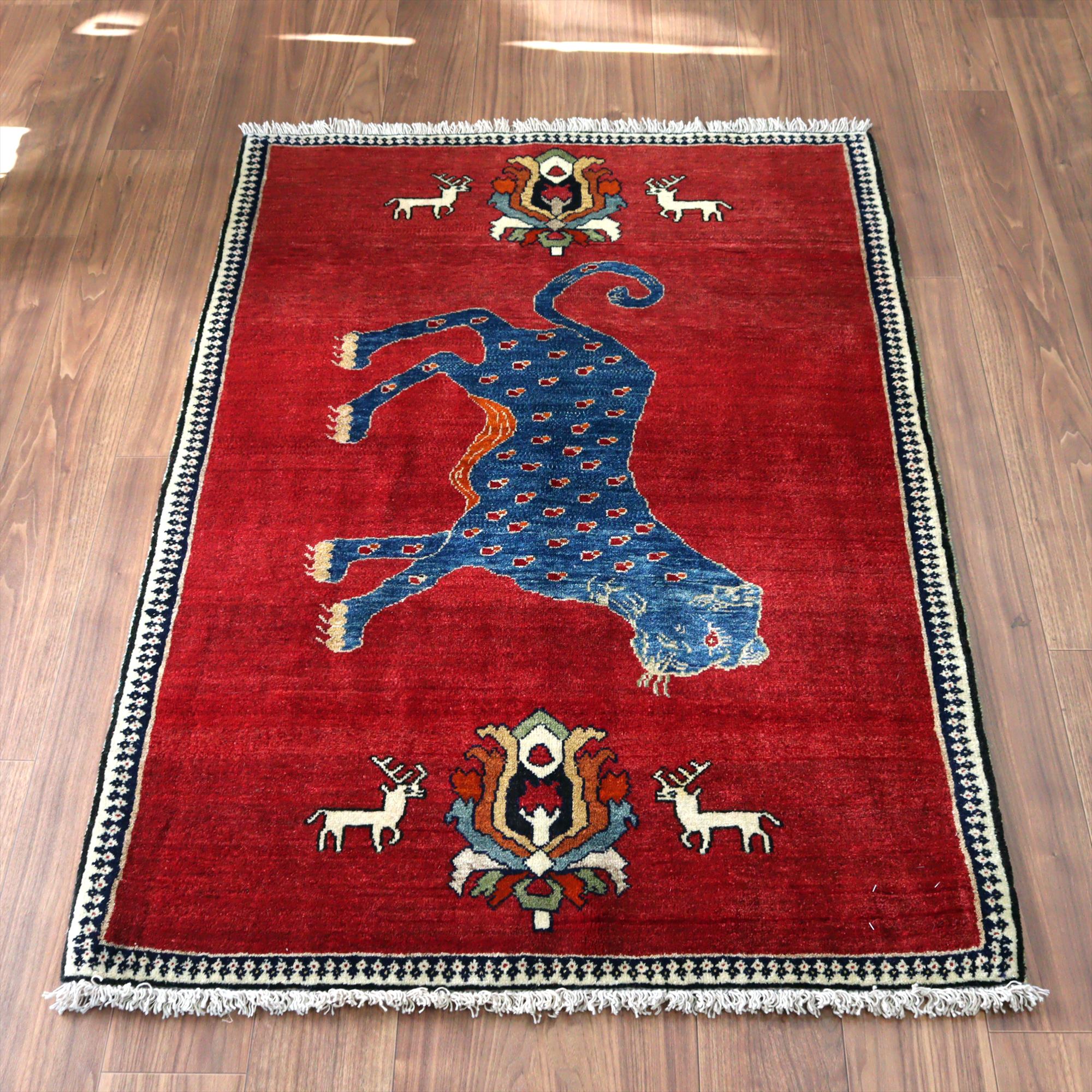 ライオンラグ 青いヒョウ オールドギャッベ 158x100cm レッド ブルー パルメット