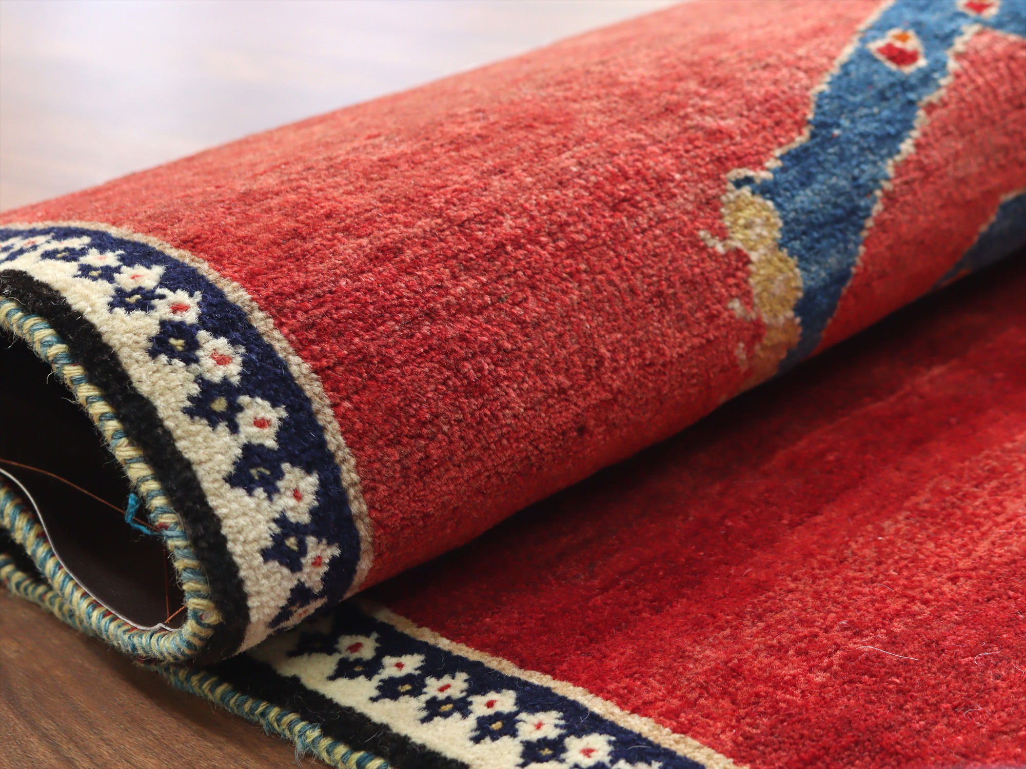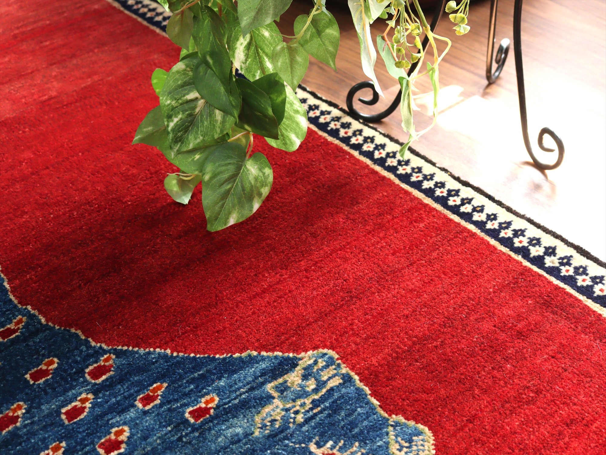 - ライオンラグ 青いヒョウ オールドギャッベ 158x100cm レッド ブルー パルメット