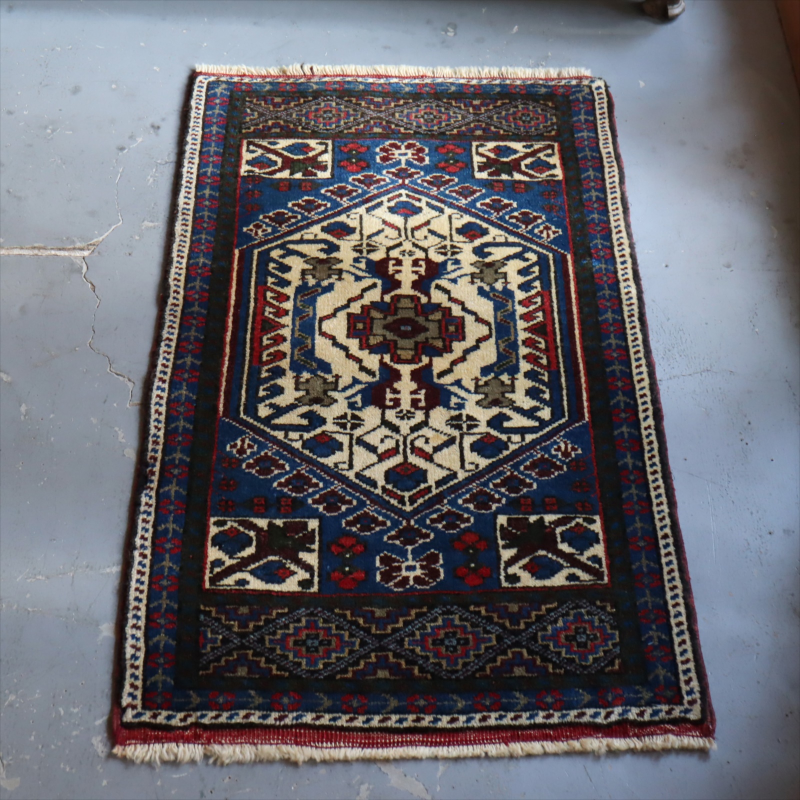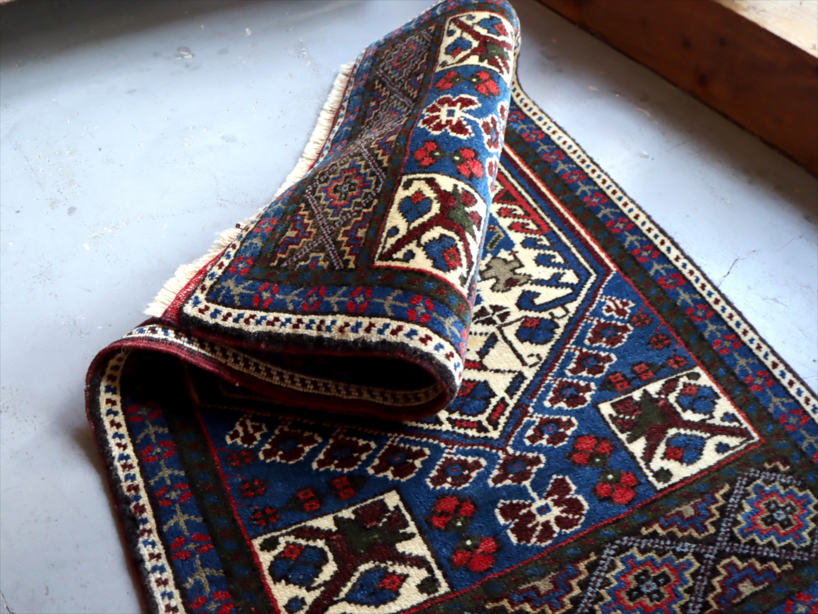 アナトリア地方で、ヤストゥク(枕の意味)と呼ばれる細長いクッションとして使うために織られた袋状のじゅうたん。現状では裏面はとってしまって、一枚のカーペットになっています。
