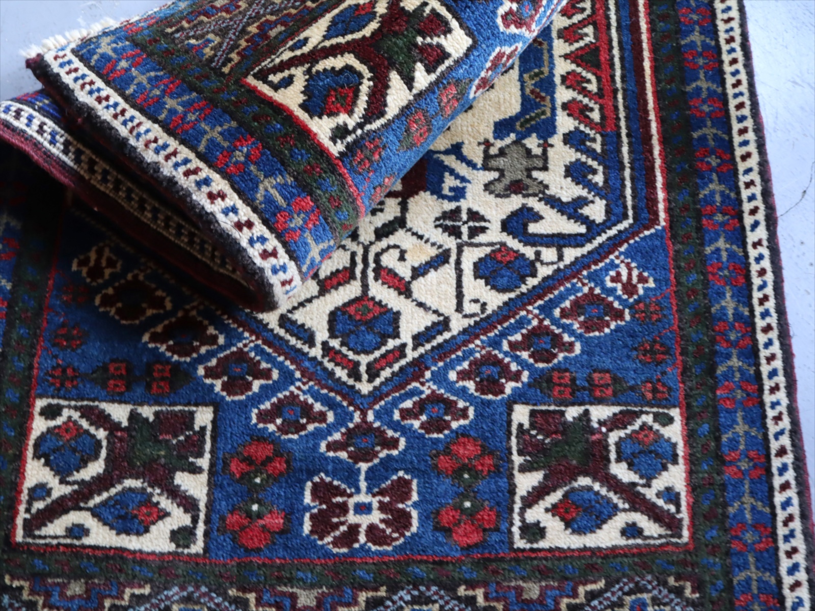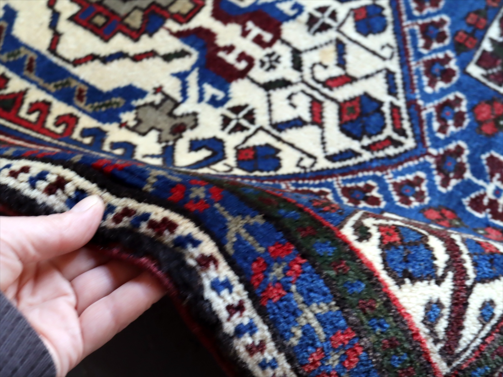 パイルは長めでふっくらとした織り。あまり目立ちませんが、ところどころ小さなパイルの抜け落ちがあります。