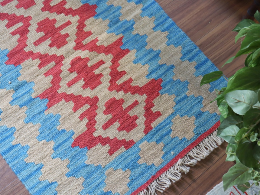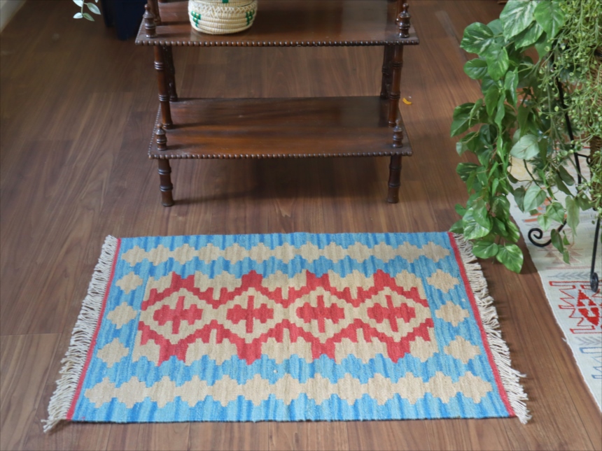 手織りキリム イラン シラーズ86×63cm カラフルな幾何学モチーフ