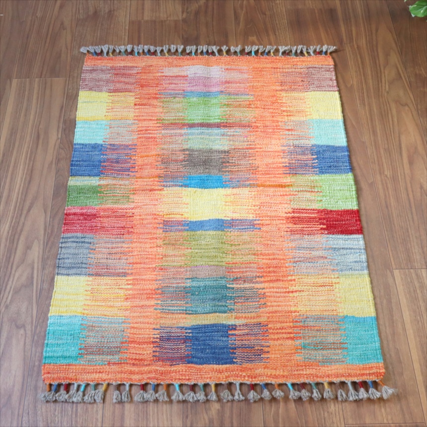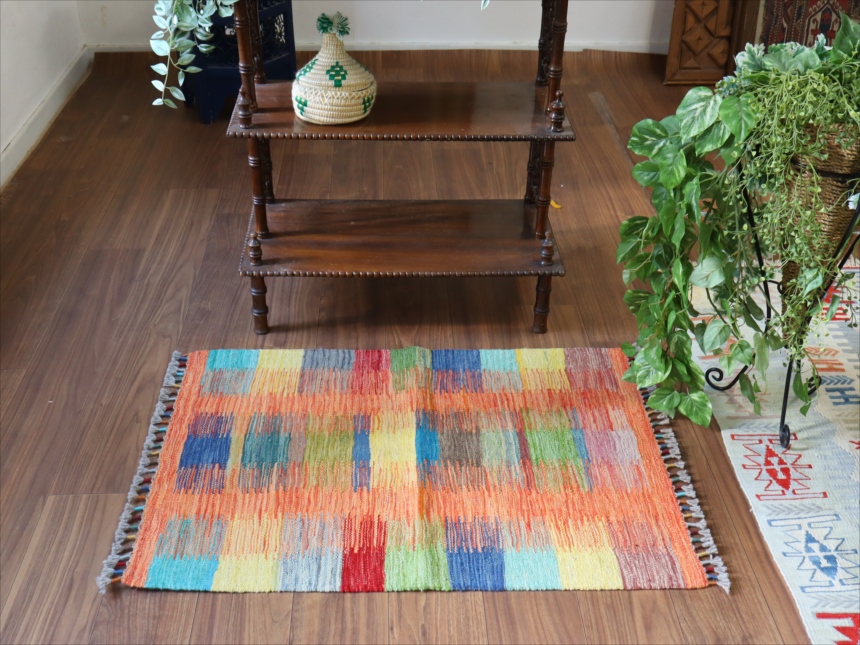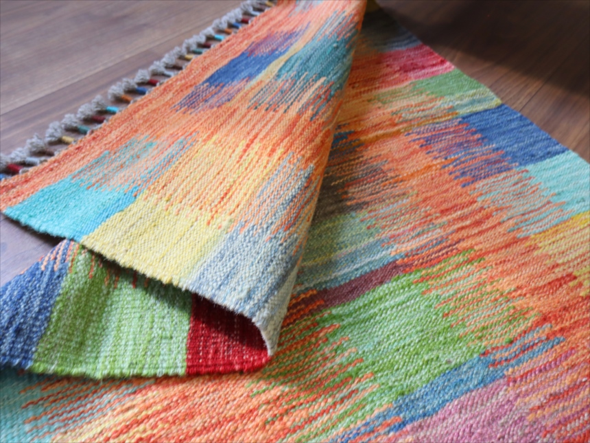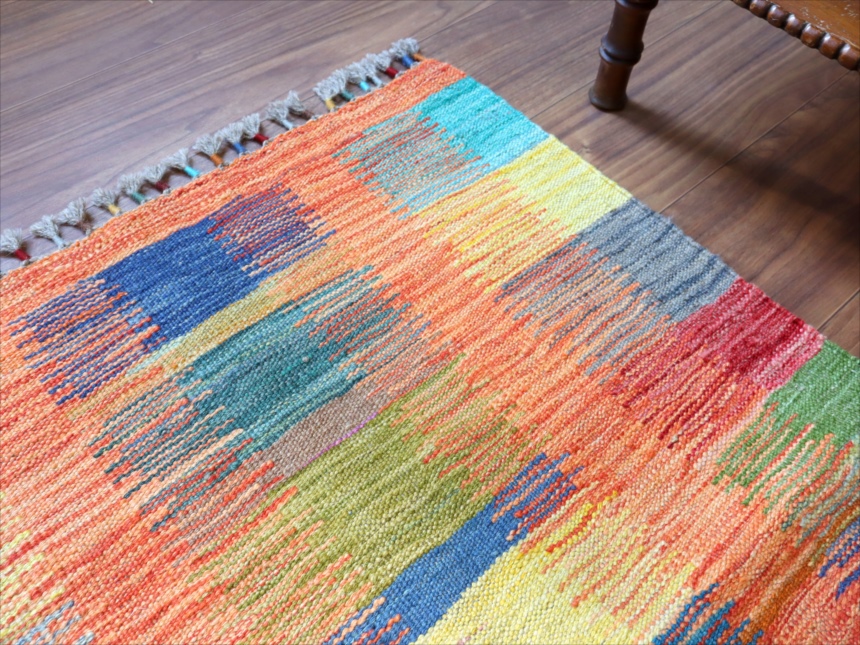 - アフガンキリム ポップなカラー 95×67cm グラデーション