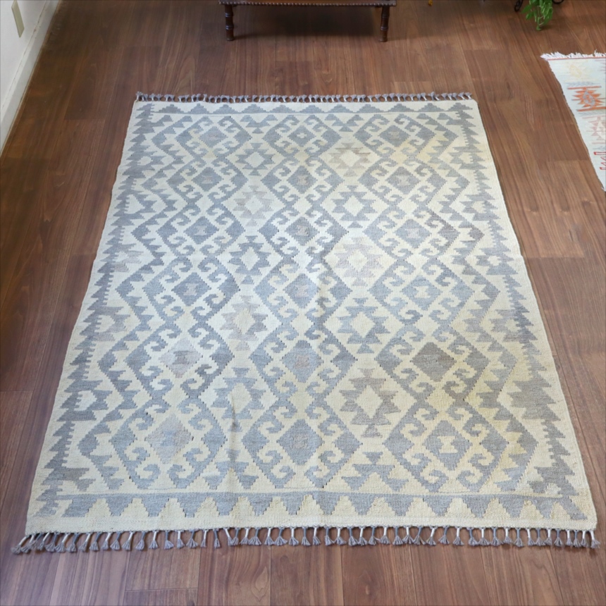 - モノトーン シンプルな手織りキリム175×127cm 幾何学モチーフ アフガンキリム
