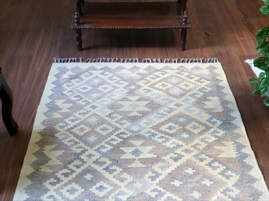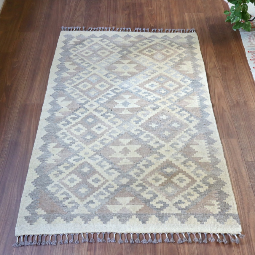 - モノトーン シンプルな手織りキリム153×98cm 幾何学モチーフ アフガンキリム