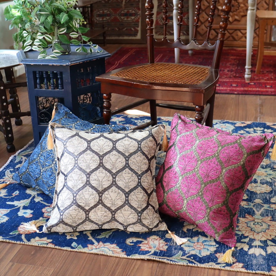 クッションカバー 45x45cm トルコデザイン シュニール素材 クレスト アイボリー