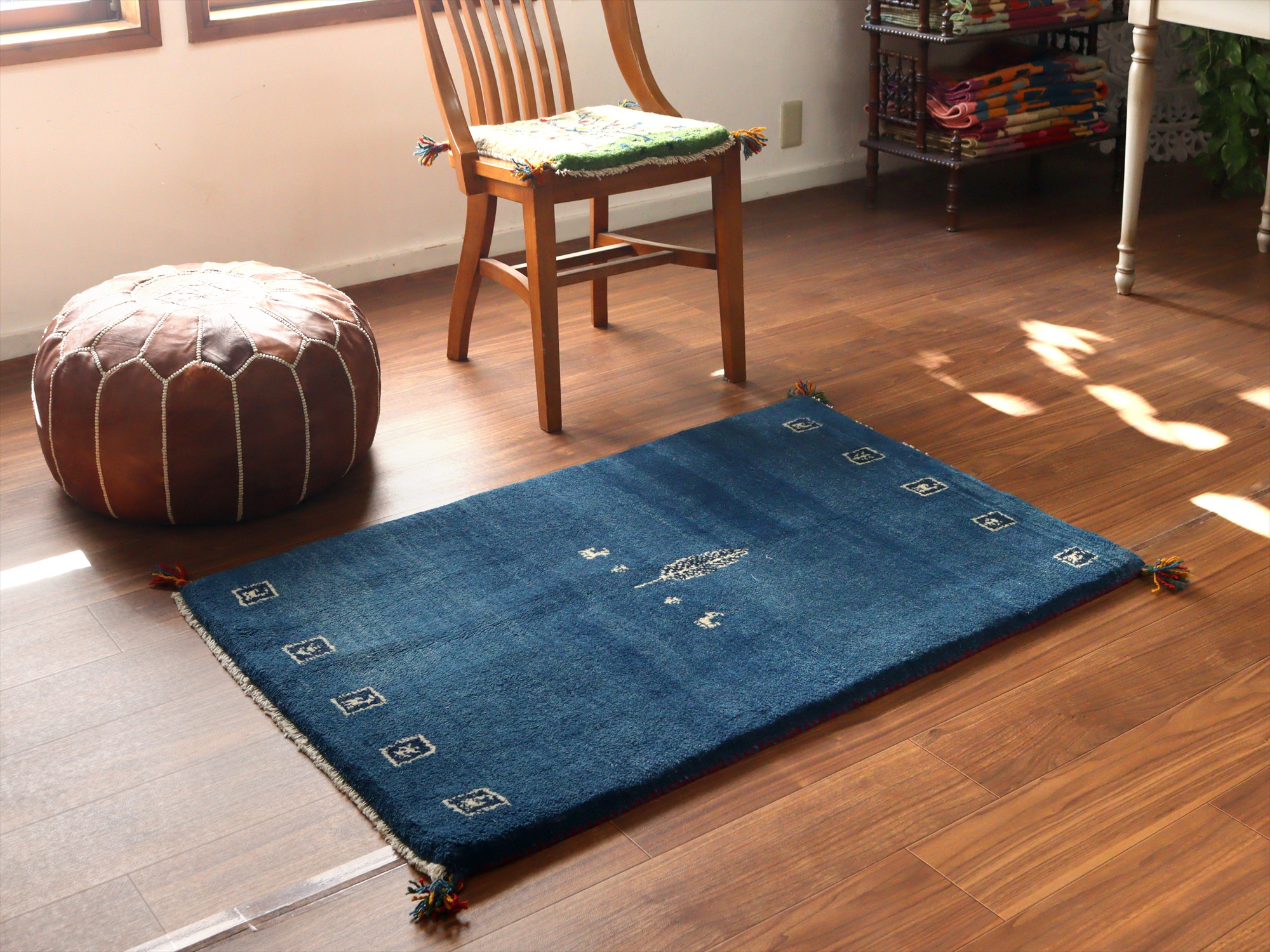 Key:ギャベ, ラグ, 手織り絨毯, 部族絨毯, 草木染, カシュカイ族, ウール製,センターラグ, ブルー, 青, 東京,中野区, ガラタバザール, Gabbeh, Tribal Rug, Hand knotted, wool, Natural dye, Shiraz, Fars, Quashkai