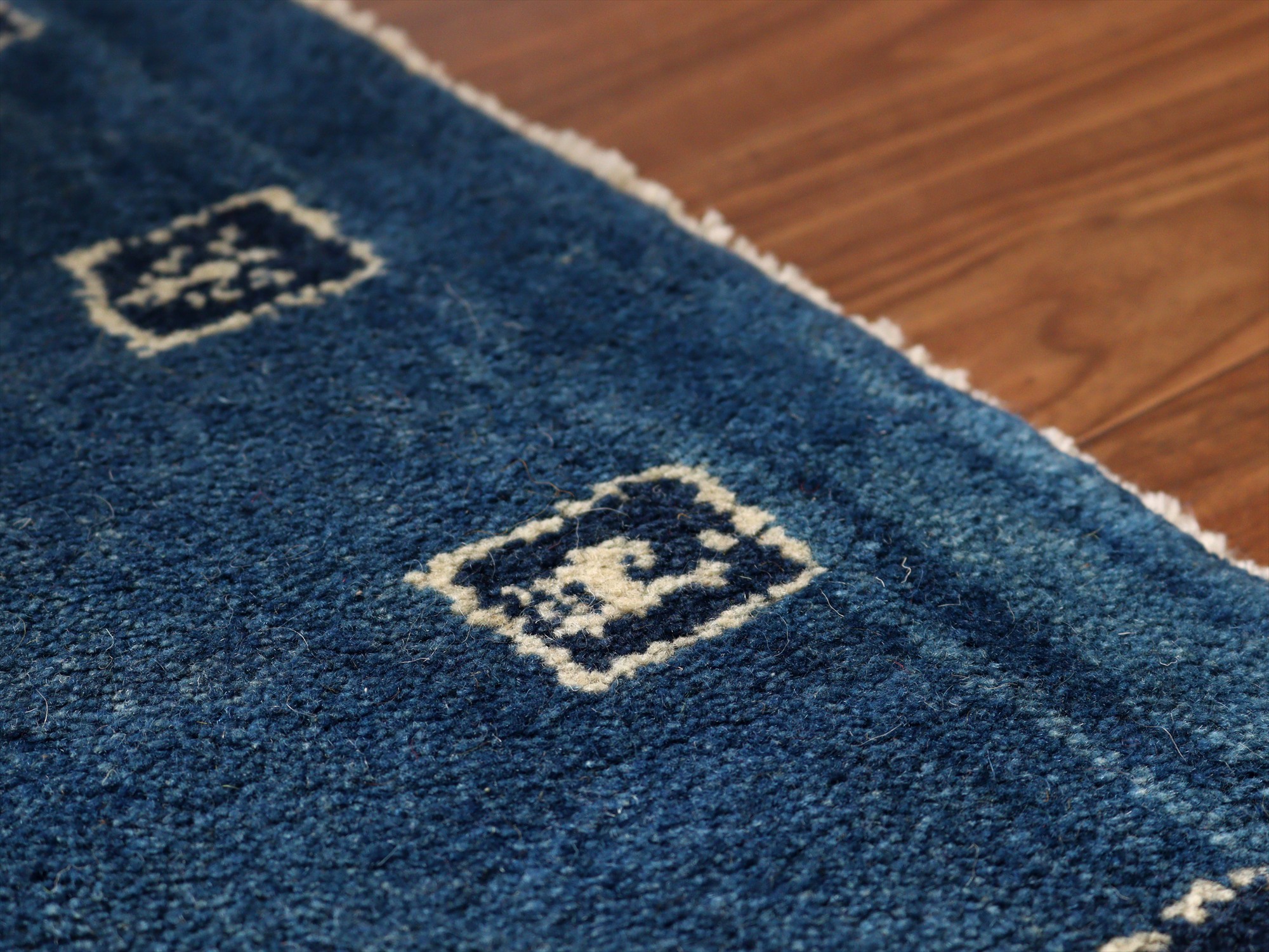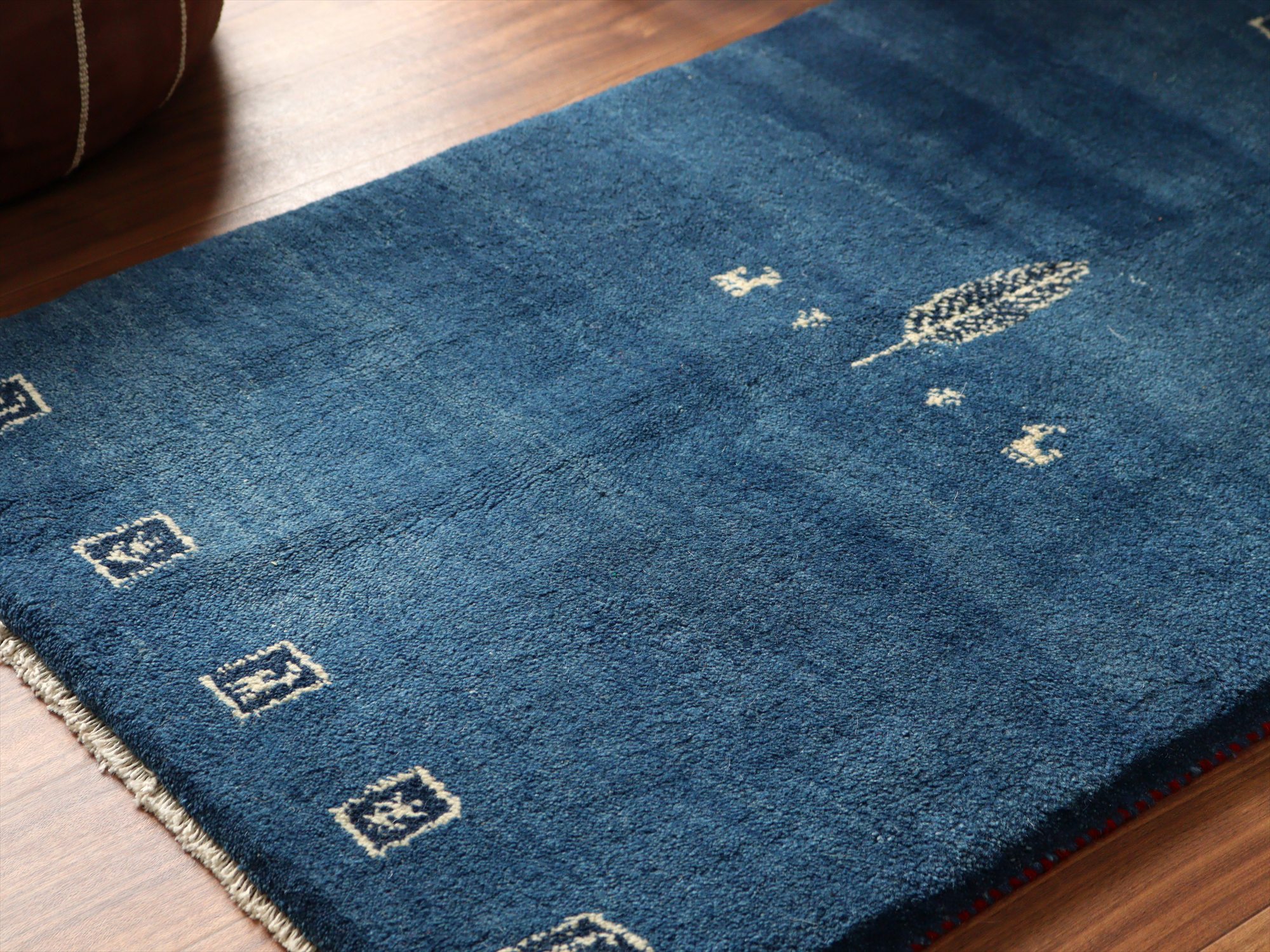 毛足が長く、パイルを含めたギャッベ全体の厚みは2.4-2.5cm程度。ボリューム感たっぷりのふかふかギャッベです。