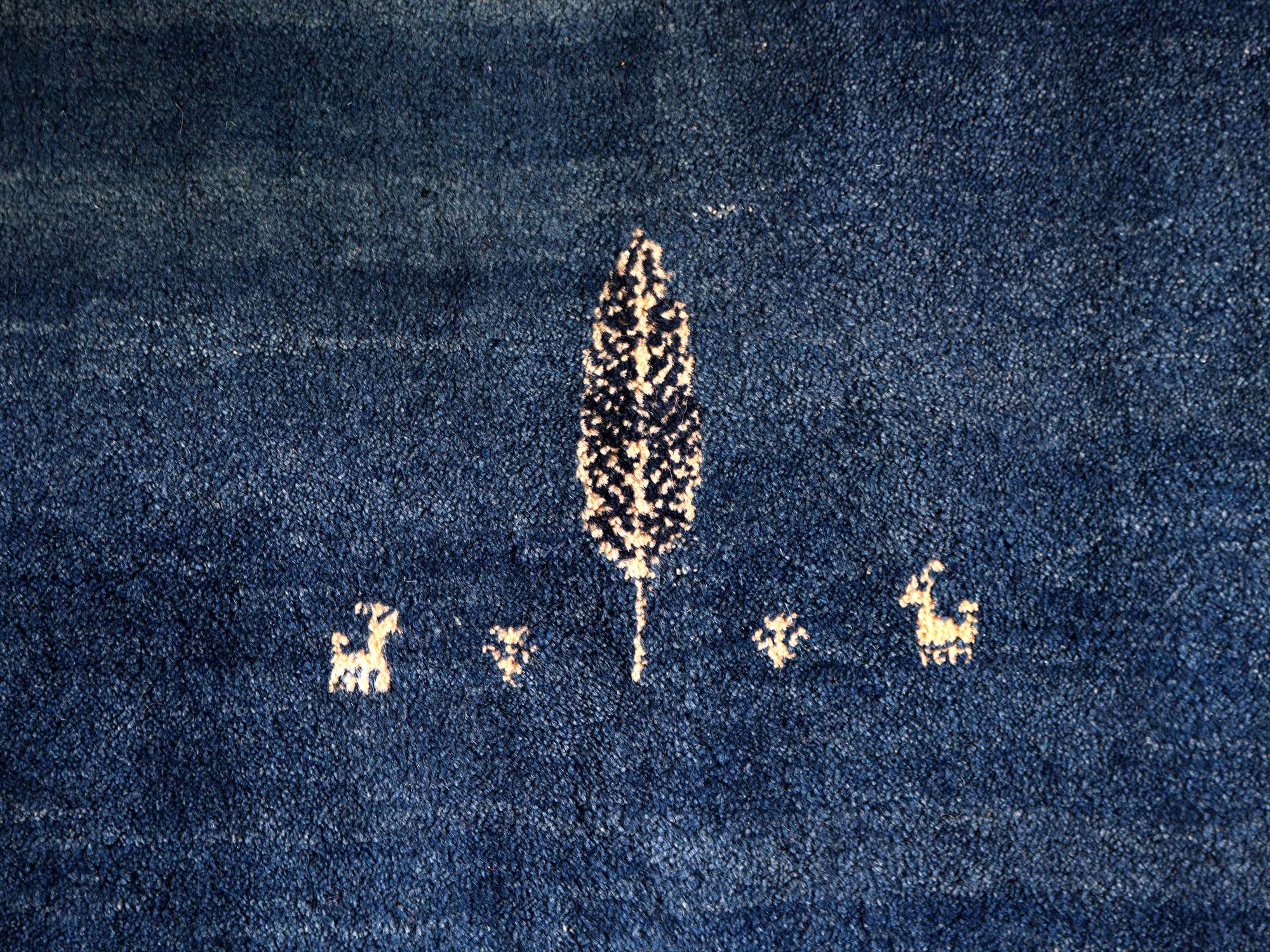 イランの手織りラグ ギャッベ 118x80cm 動物と植物 ブルー