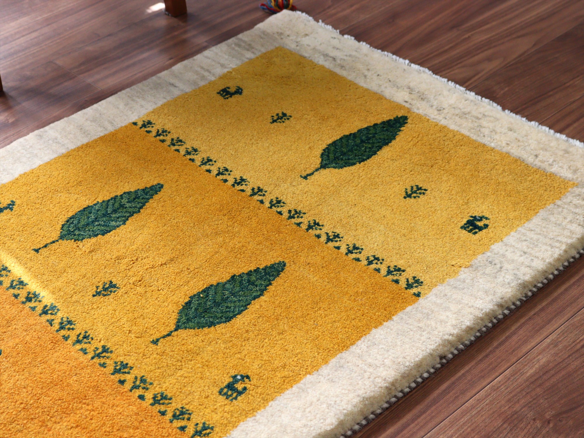 ギャッベ イランの手織りラグ 123x82cm 糸杉の樹 イエロー&アイボリー