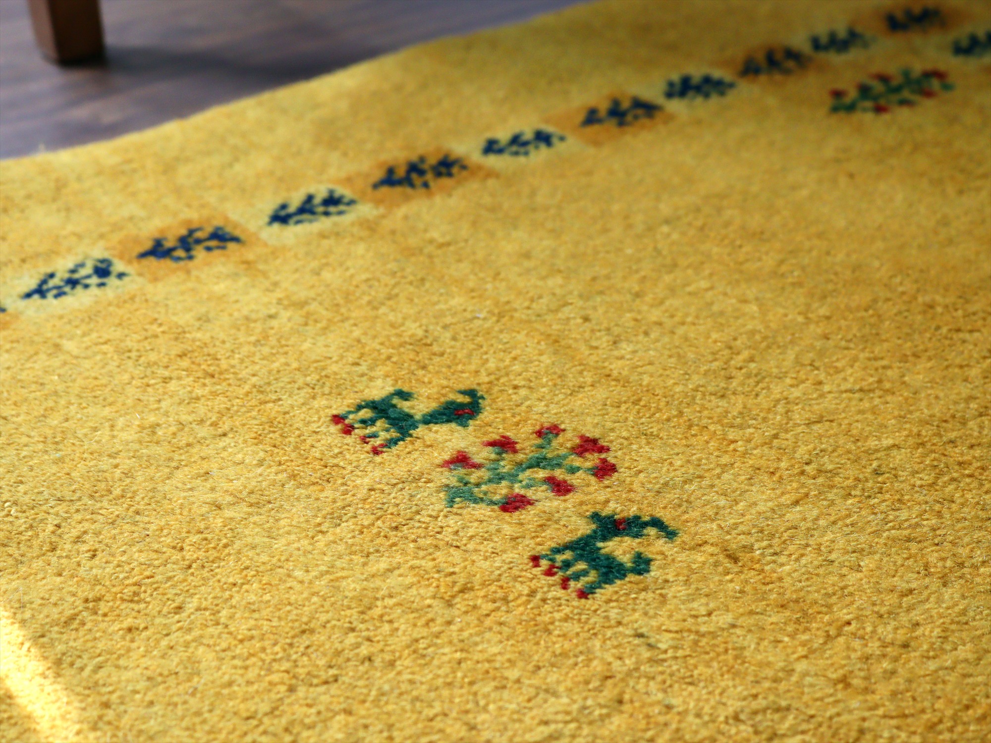 Key:ギャベ, ラグ, 手織り絨毯, 部族絨毯, 草木染, カシュカイ族, ウール製,センターラグ, イエロー, 黄色, 東京,中野区, ガラタバザール, Gabbeh, Tribal Rug, Hand knotted, wool, Natural dye, Shiraz, Fars, Quashkai