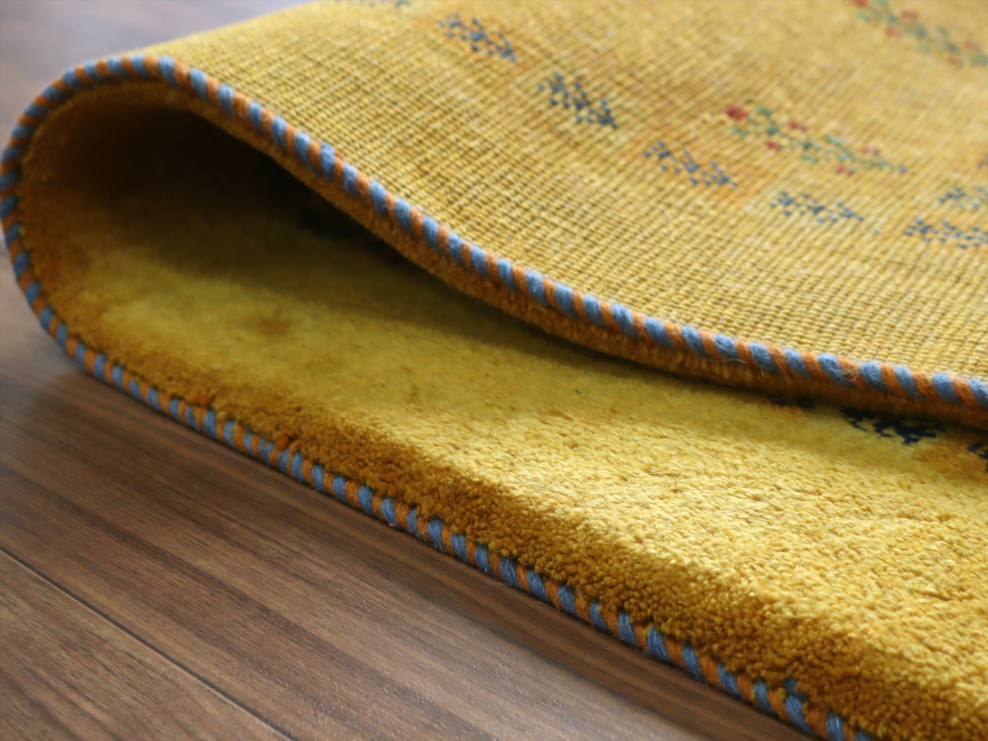 - イランの手織りラグ ギャッベ 118x79cm イエロー 生命の樹と動物