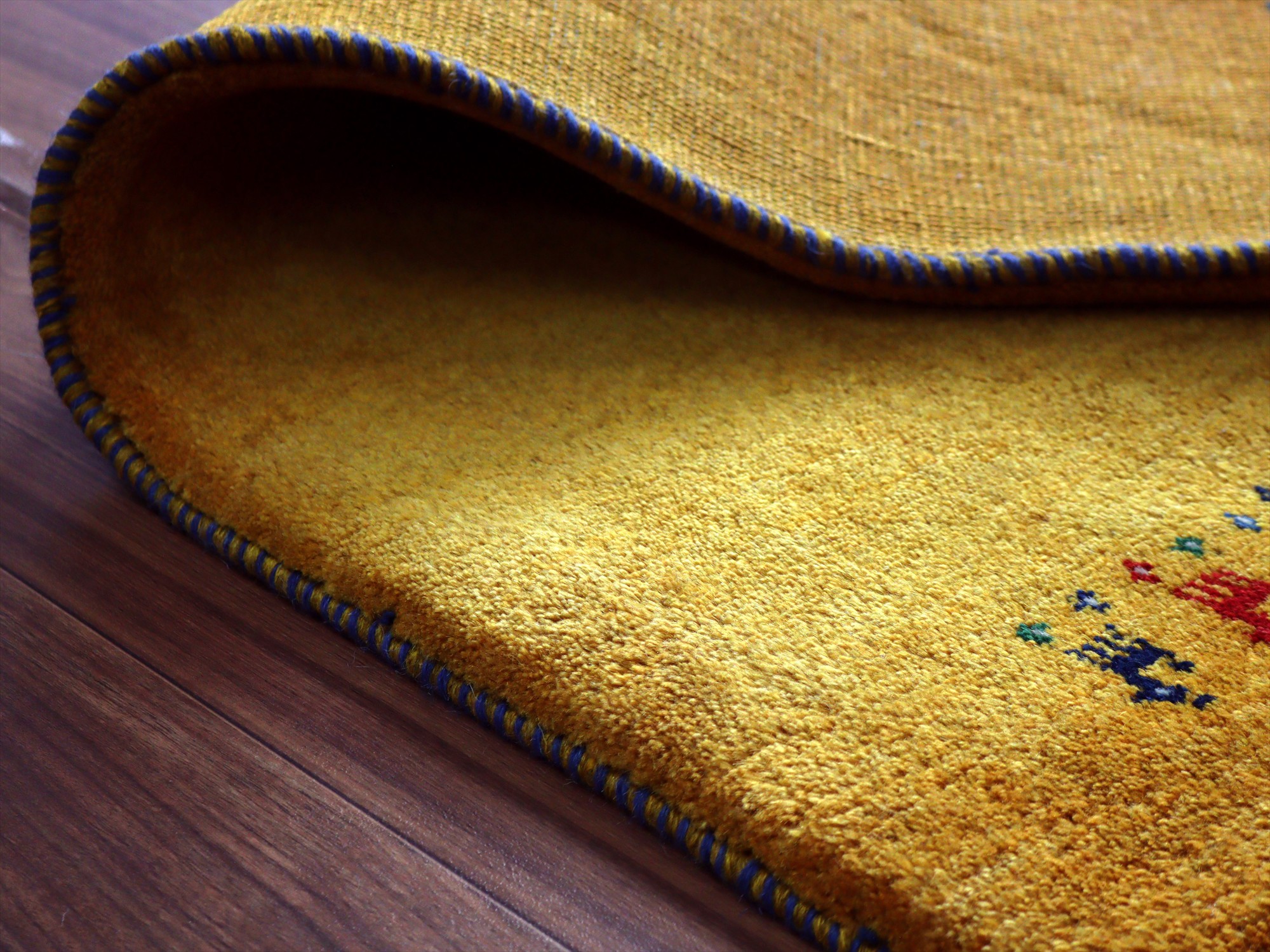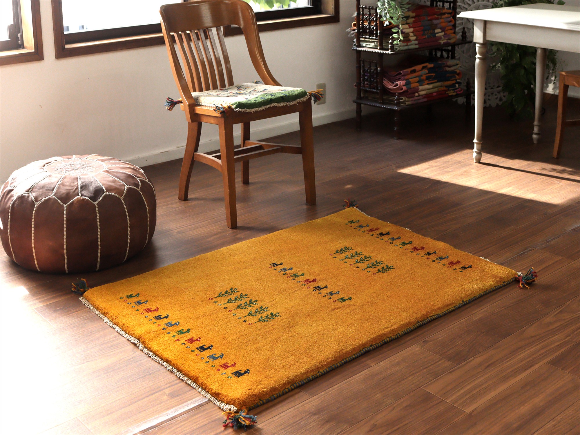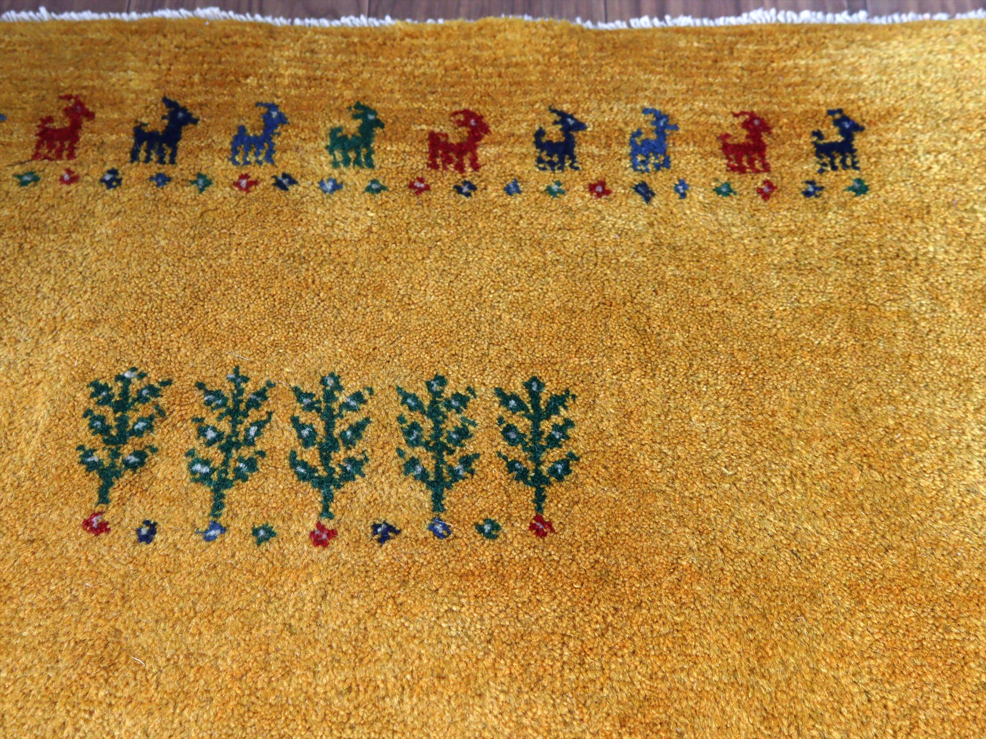 ギャッベ イランの手織りラグ 116x84cm 動物と生命の樹 イエロー