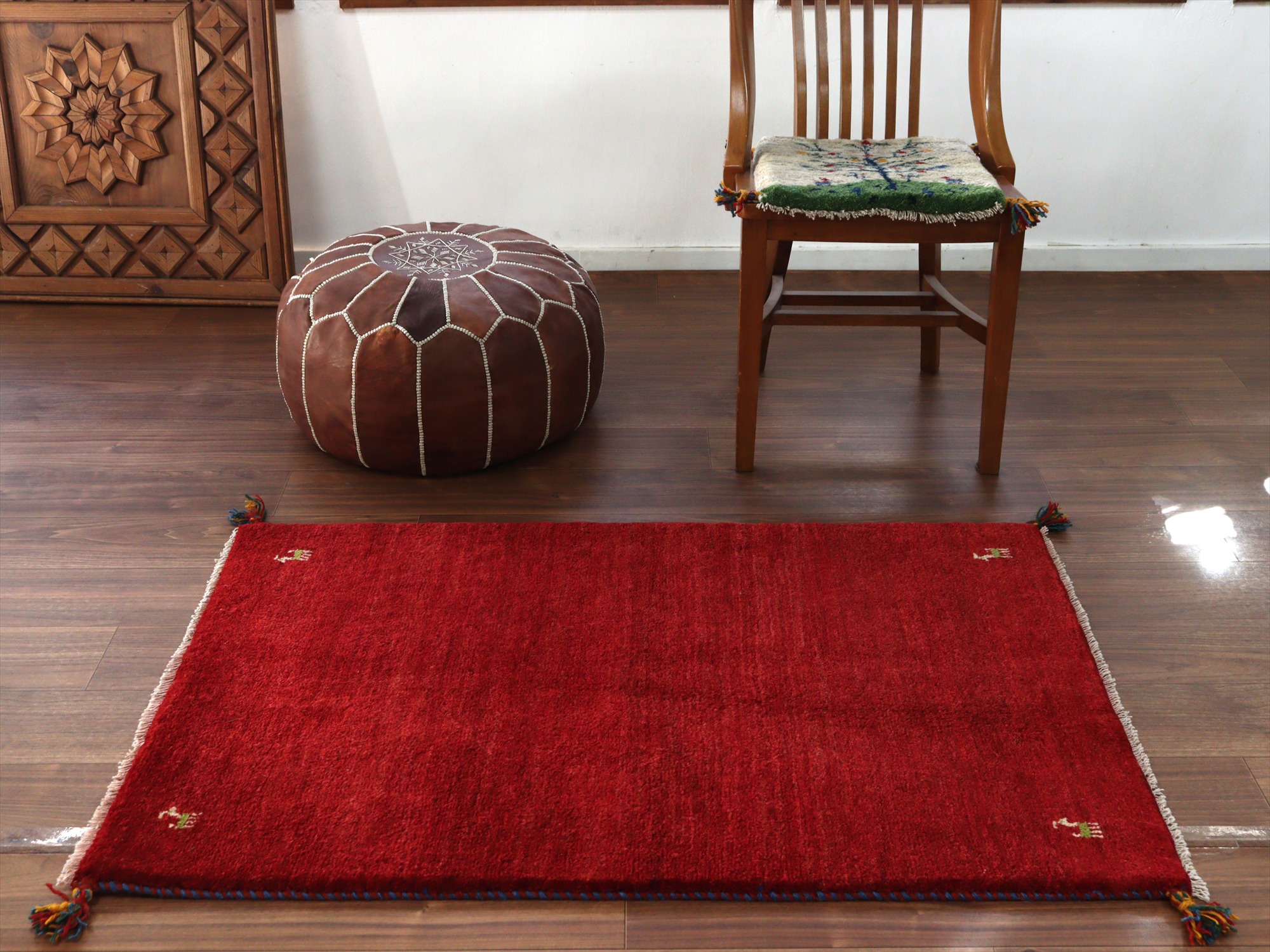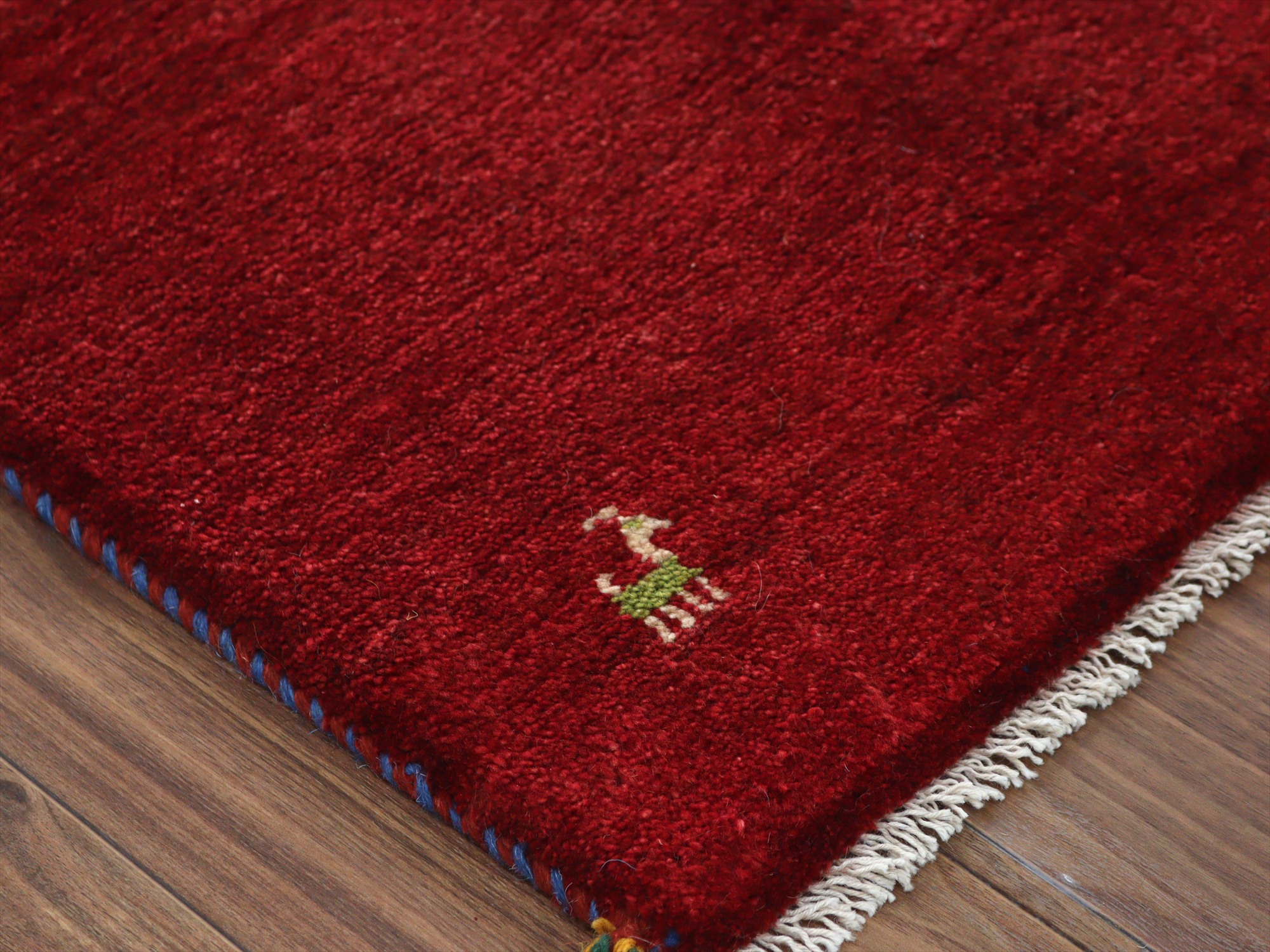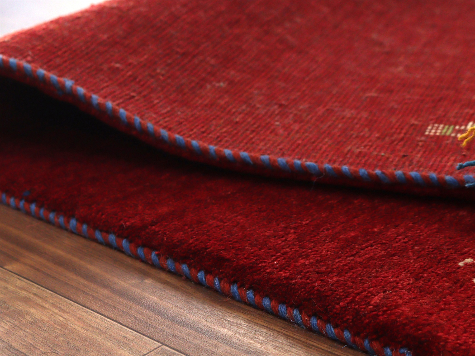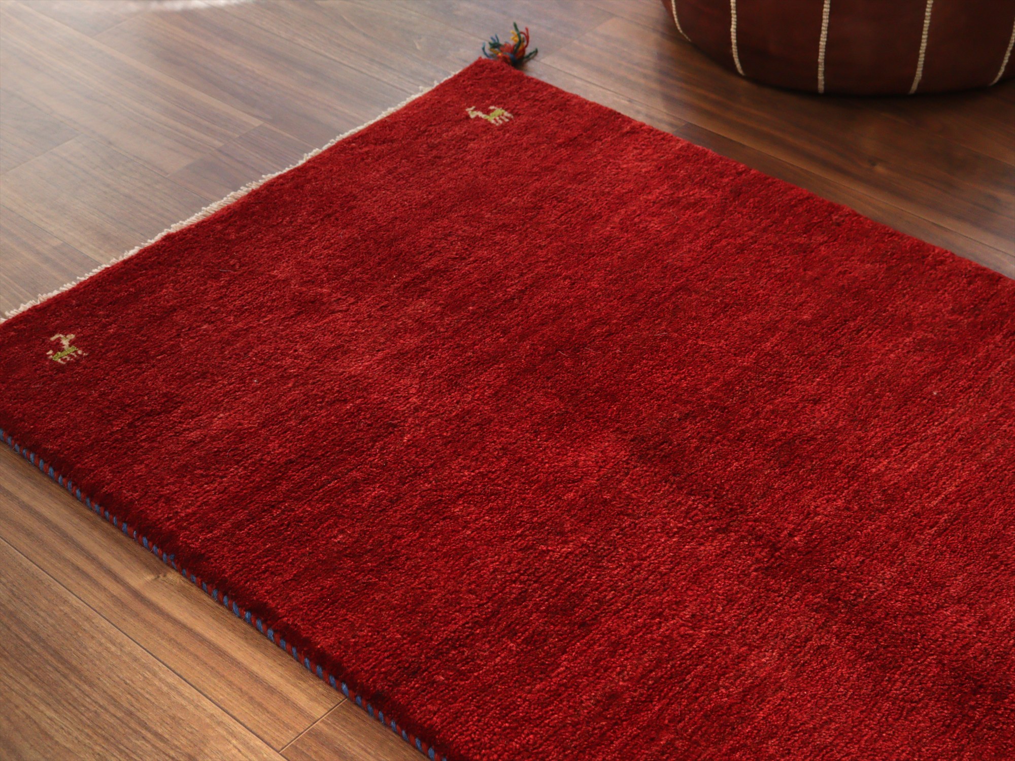 ギャッベ イランの手織りラグ 122x80cm シンプルモチーフ レッド