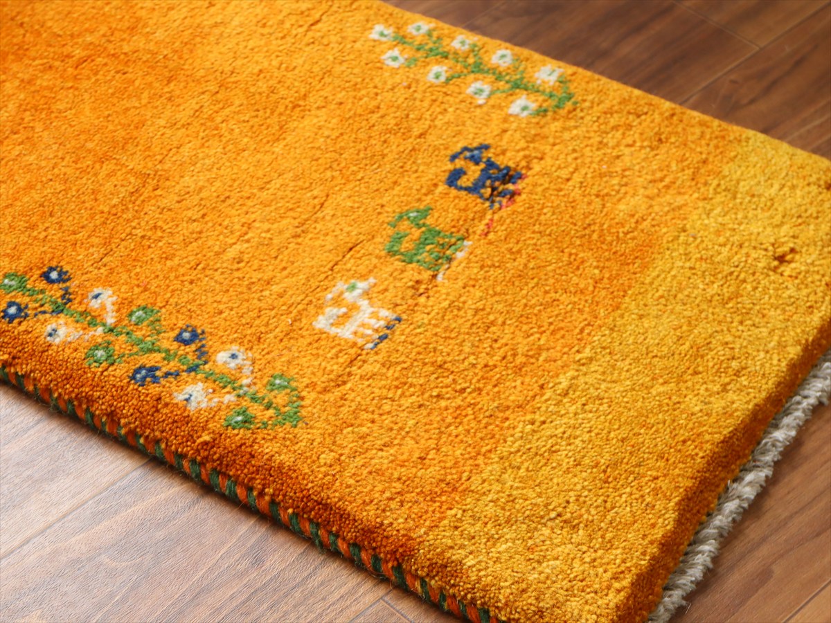 Key:ギャッベ,ギャベ,一点もの 現品販売 ラグ,ウール製,イラン,手織り,じゅうたん,絨毯,座布団, イエロー オレンジ 黄色 草木染, ガラタバザール Gabbeh, Handmade, Hand knotted, Tribal rug, Iran carpet, Wool, Natural Dye,