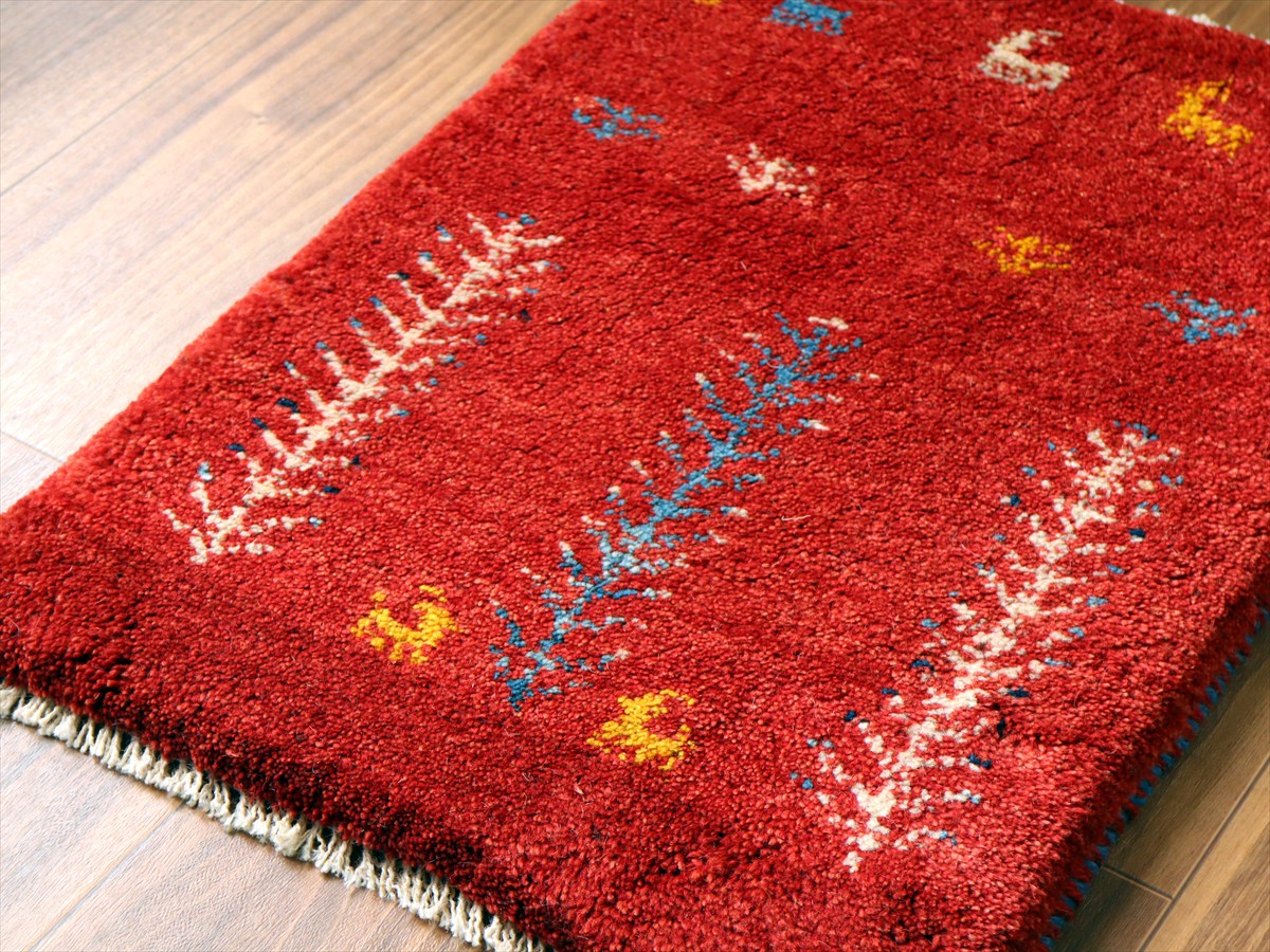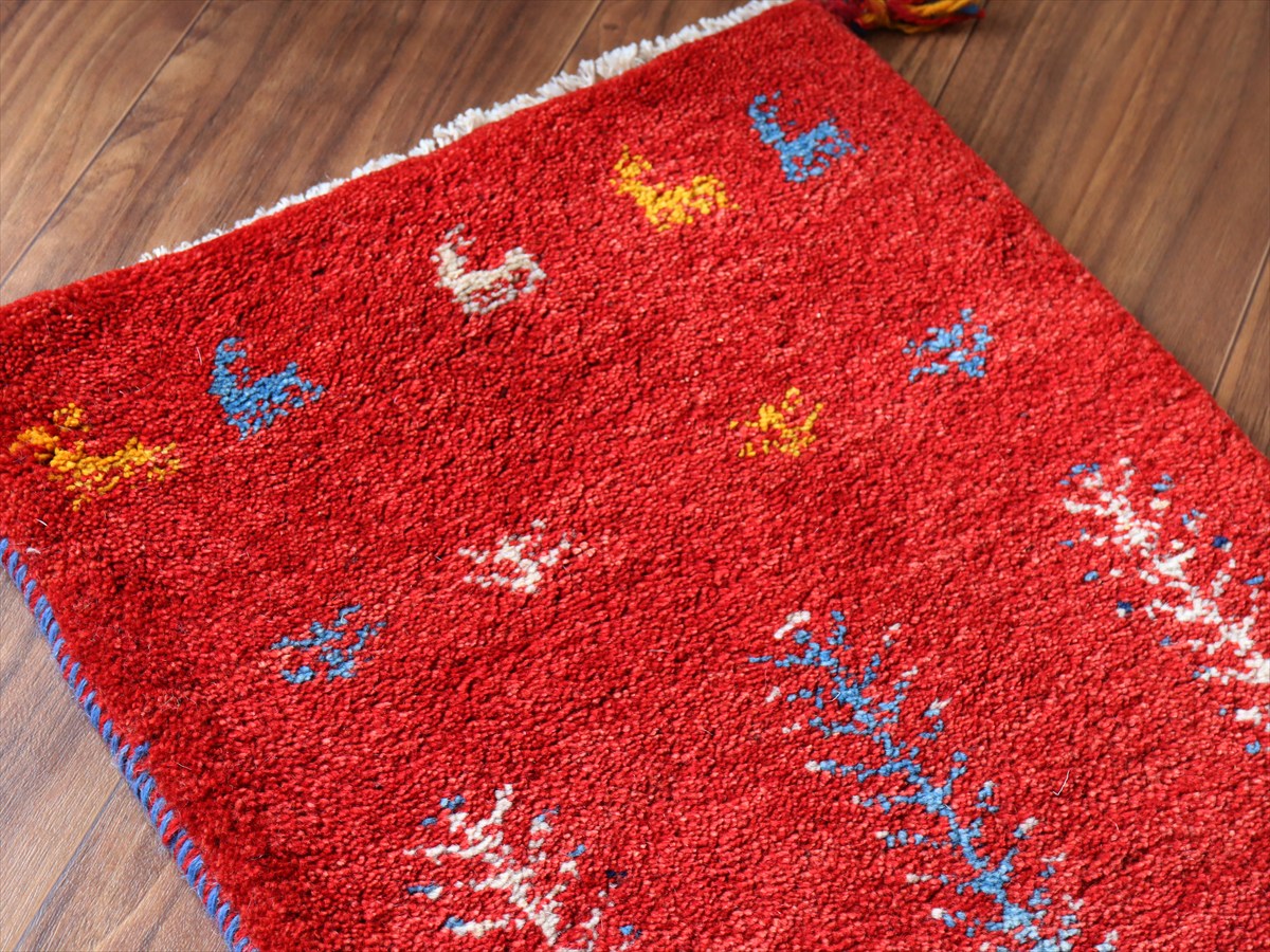 ギャッベ ミニギャベ イラン手織り 57×43cm レッド 連なる生命の樹と動物