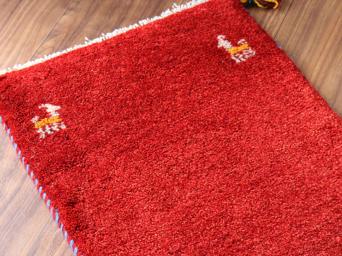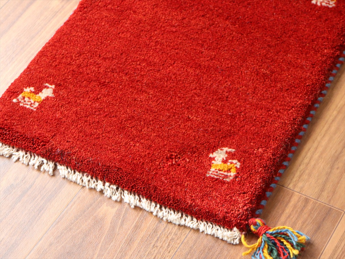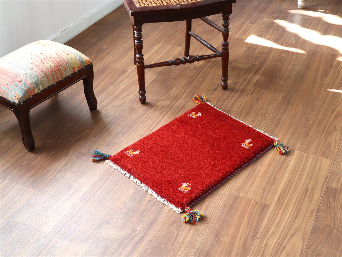 ギャッベ ミニギャベ イラン手織り 53×40cm レッド 四隅に動物